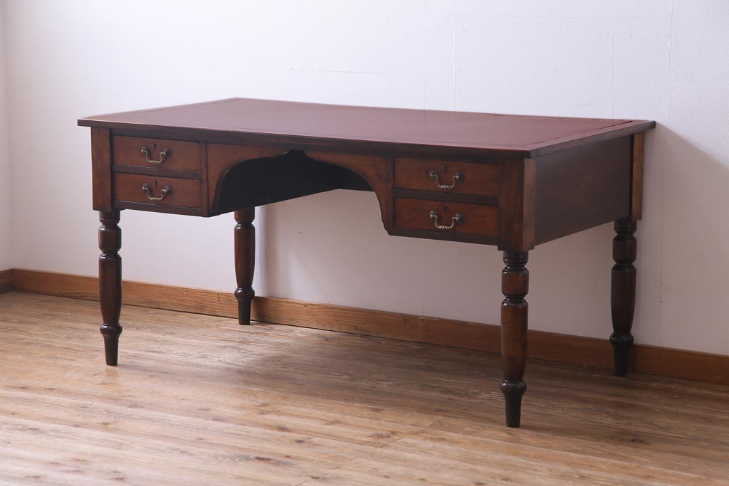 アンティーク家具 イギリスアンティーク ウォールナット材 クラシカルな佇まいが魅力的な両袖デスク(机、在宅ワーク、在宅用作業台)
