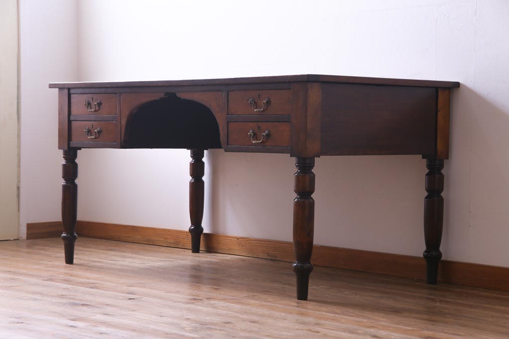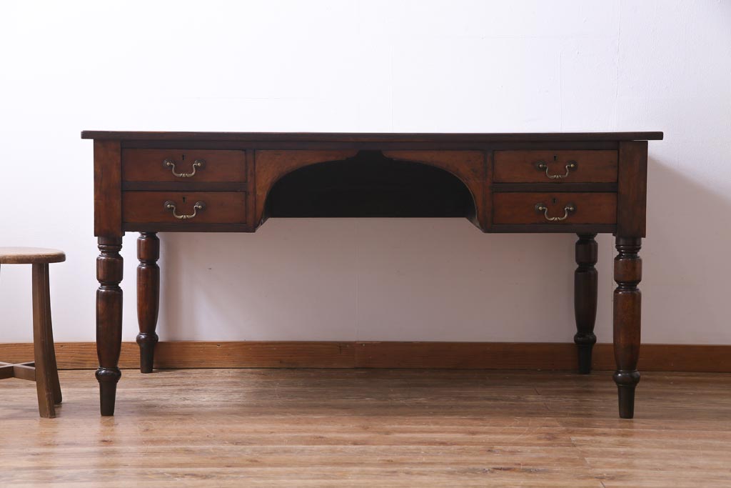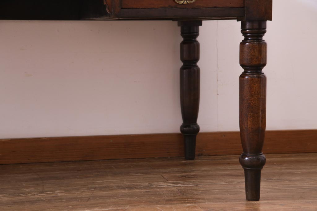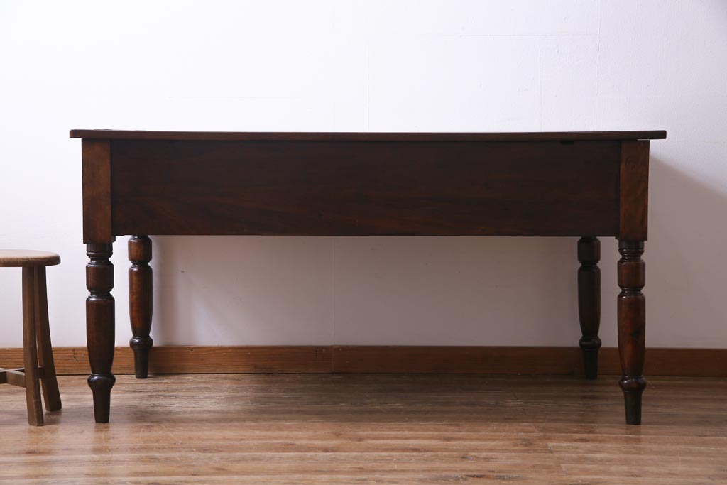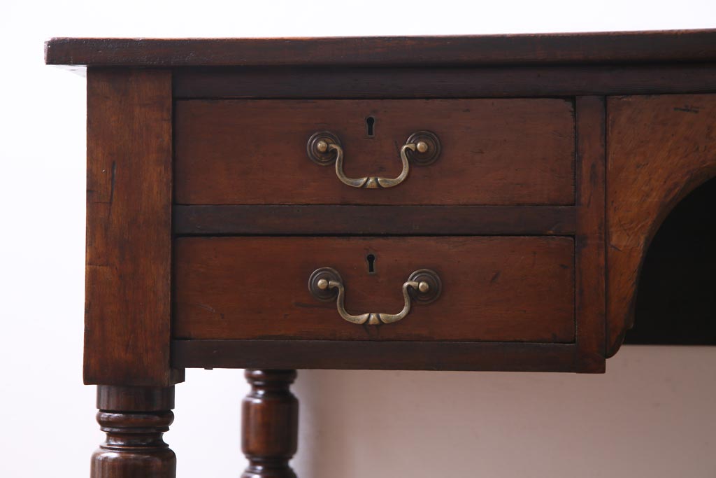 ラフジュ工房> デスク> ワークデスク > アンティーク家具 イギリスアンティーク ウォールナット材 クラシカルな佇まいが魅力的な両袖デスク(机、在宅ワーク、在宅用作業台)