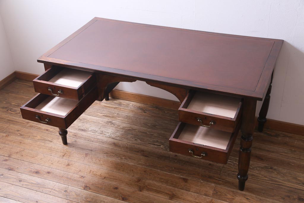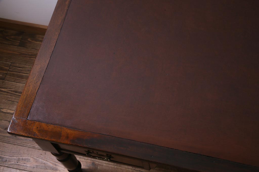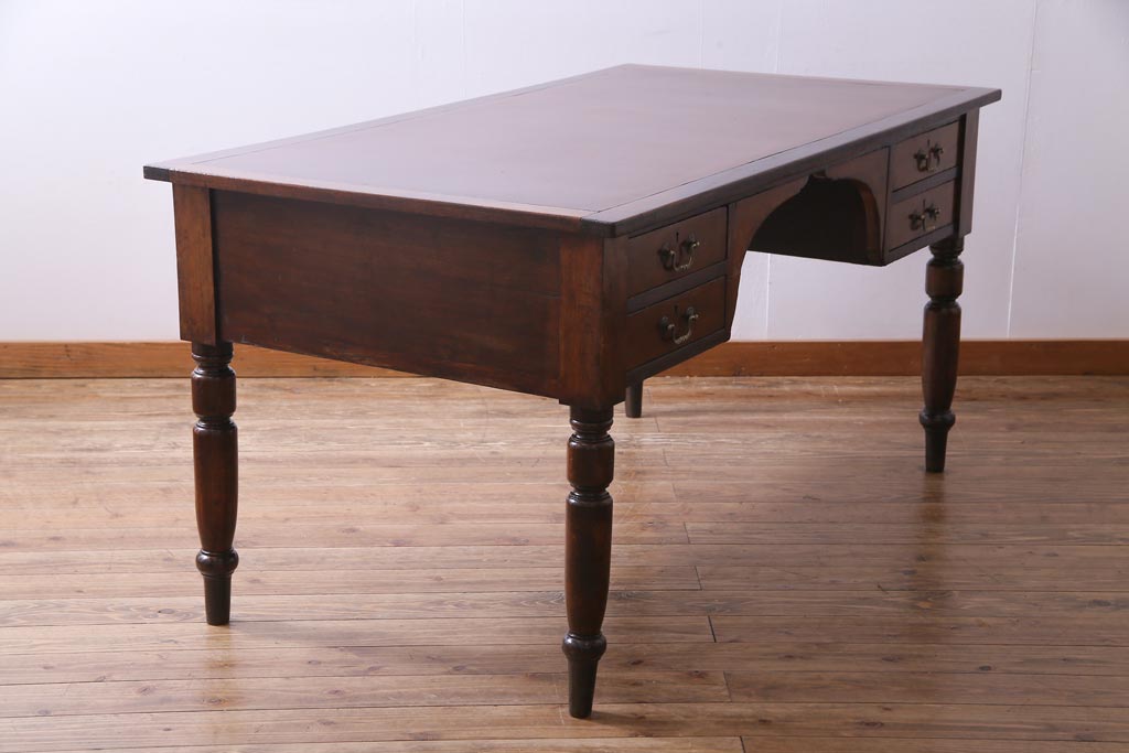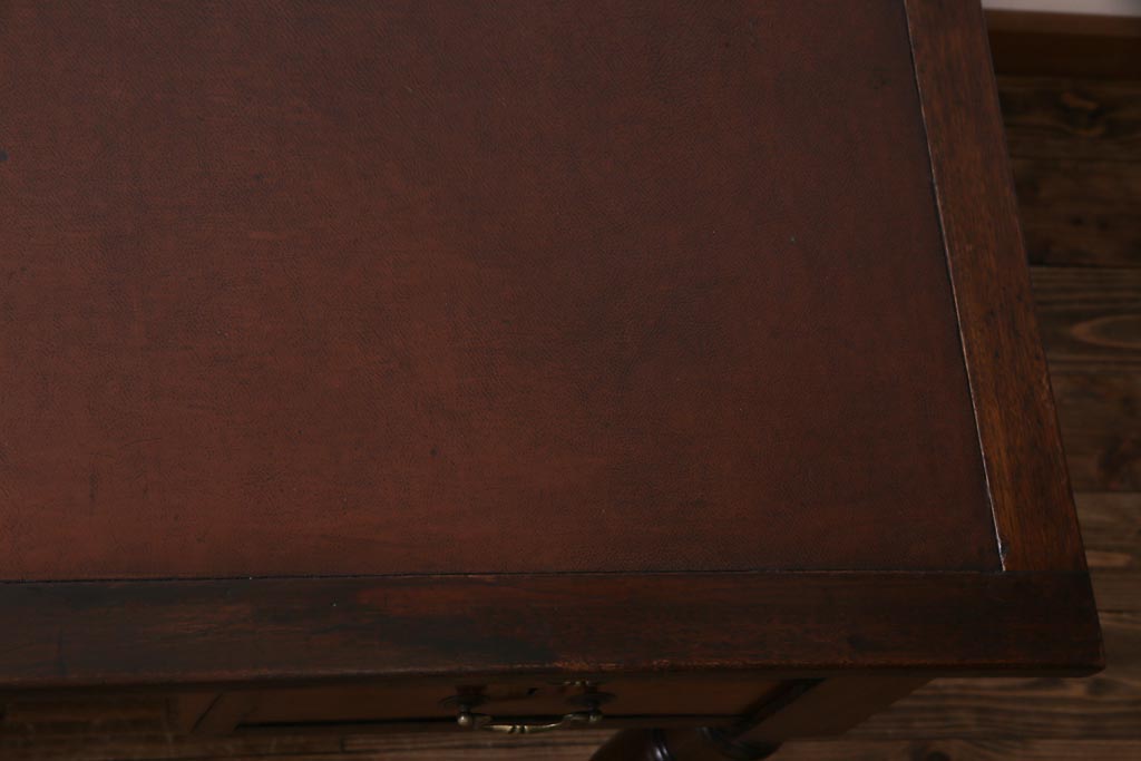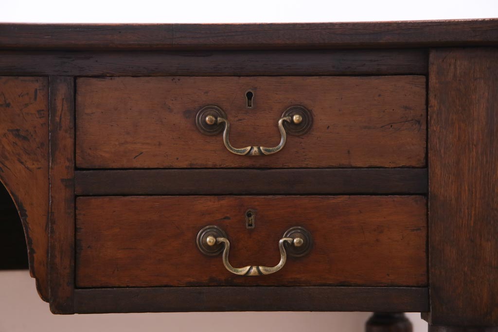 ラフジュ工房> デスク> 片袖机・両袖机 > アンティーク家具 イギリスアンティーク ウォールナット材 クラシカルな佇まいが魅力的な両袖デスク(机、在宅ワーク、在宅用作業台)