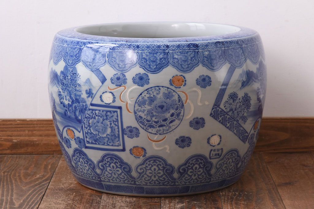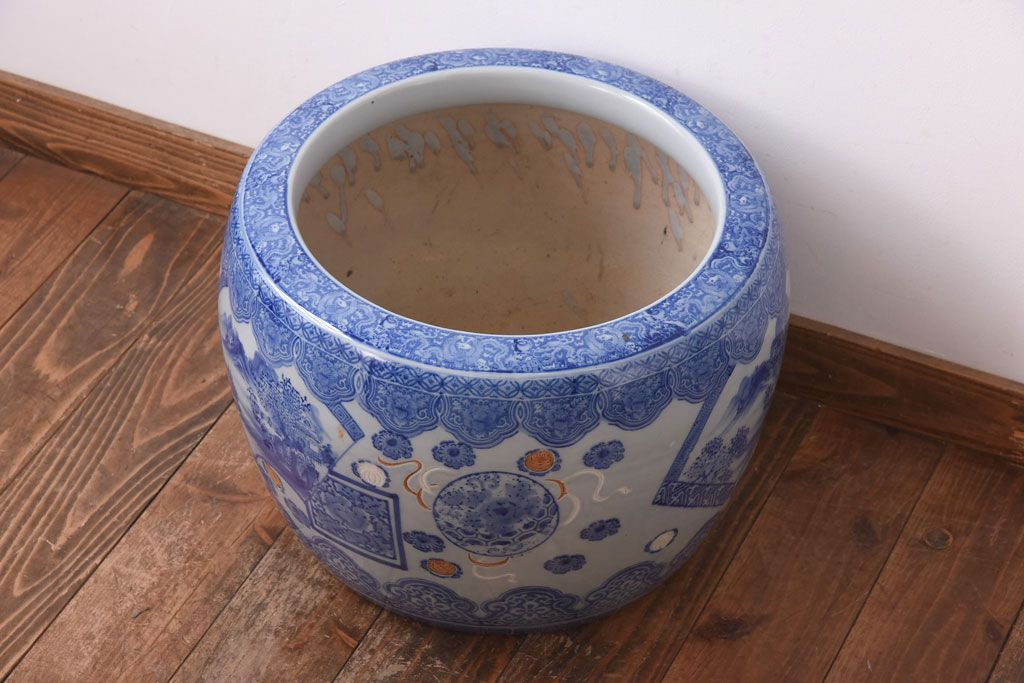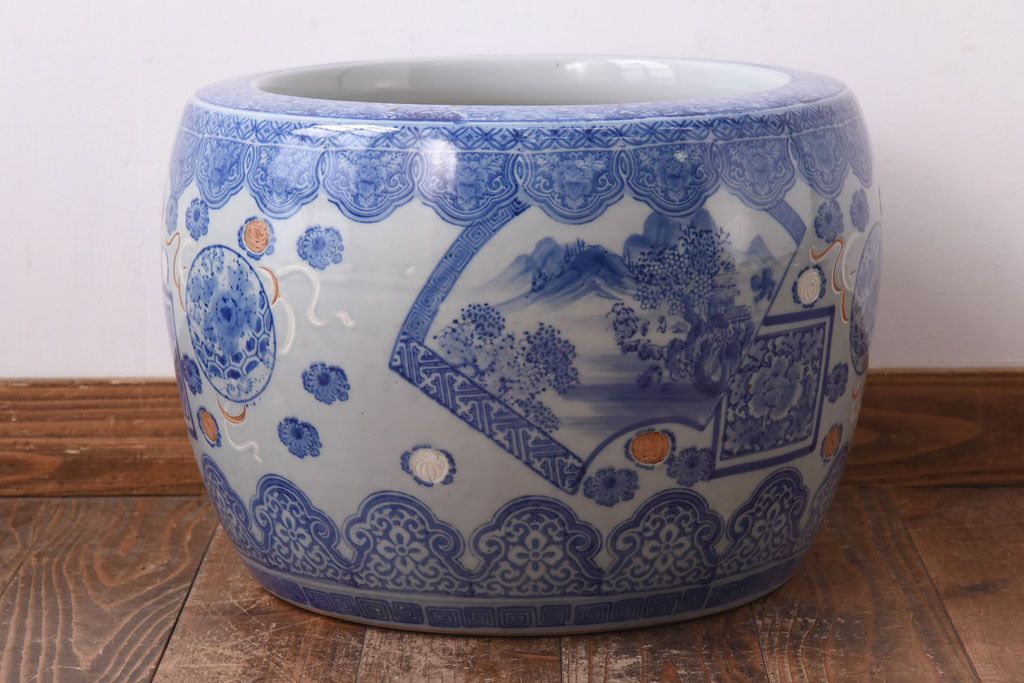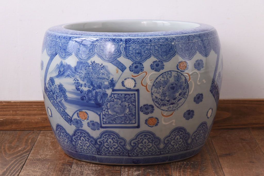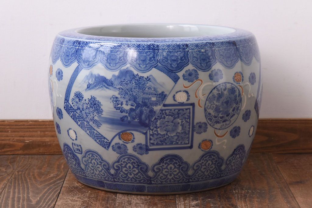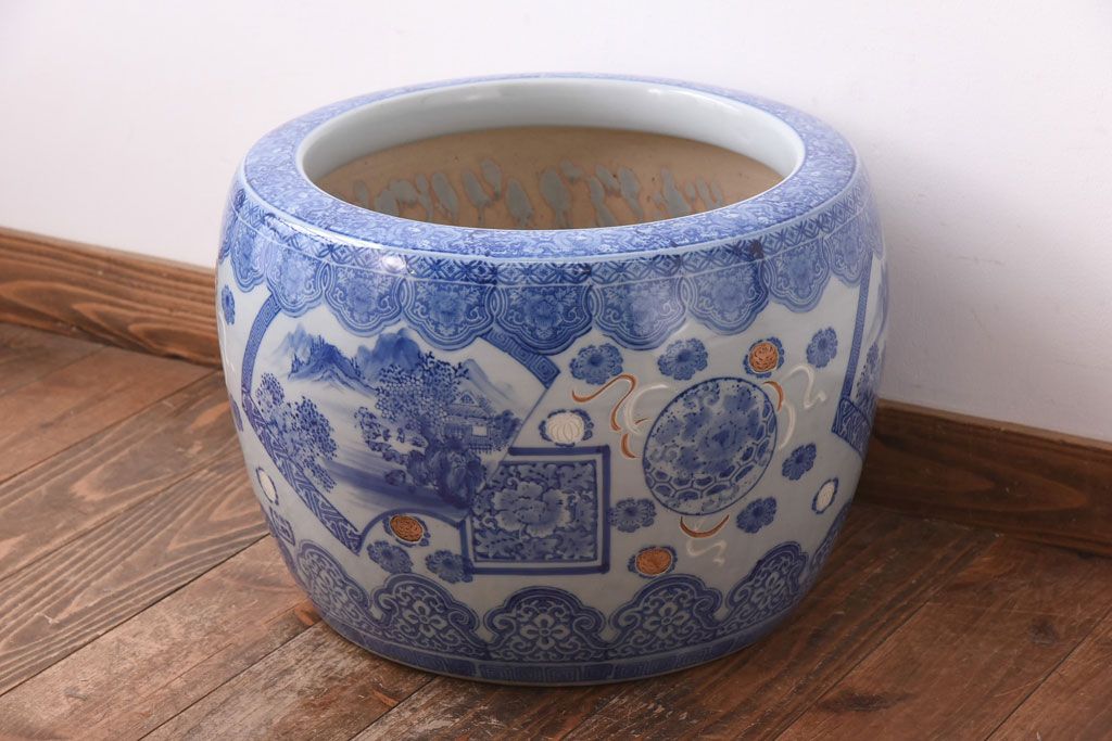 アンティーク雑貨 和製アンティーク 山水図 上品な雰囲気漂う瀬戸火鉢(鉢カバー)