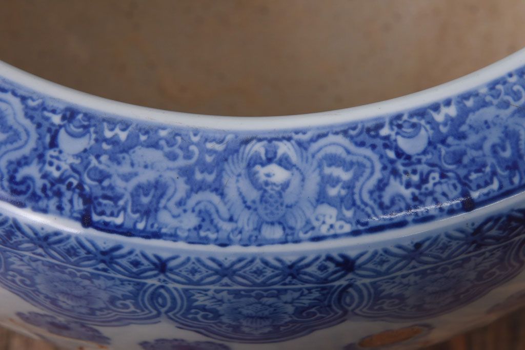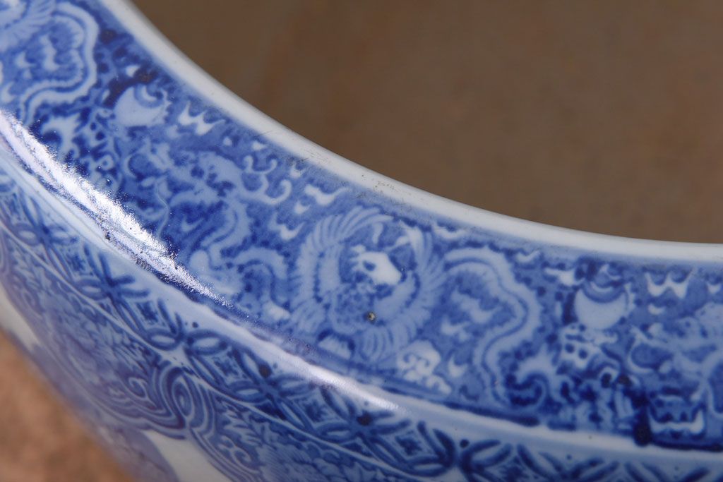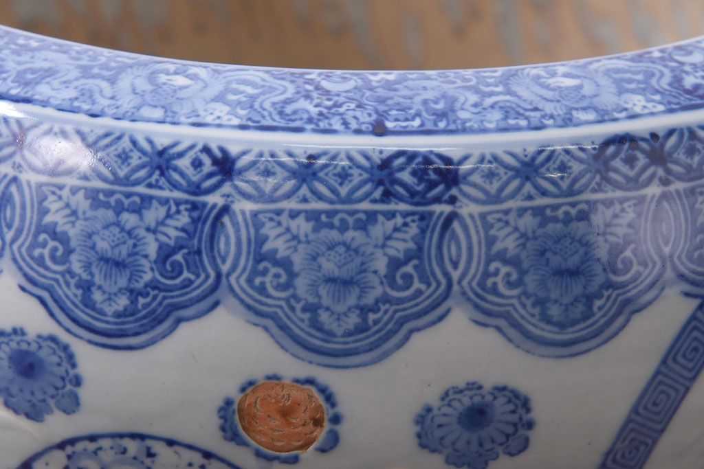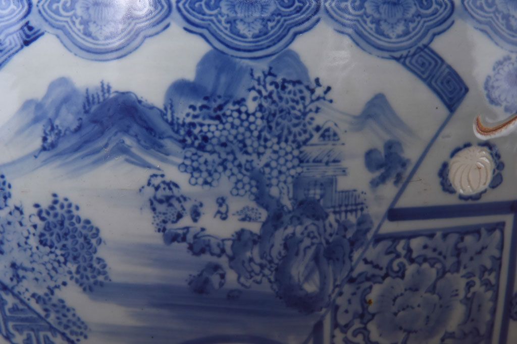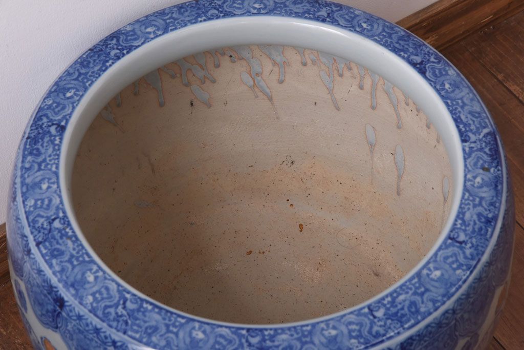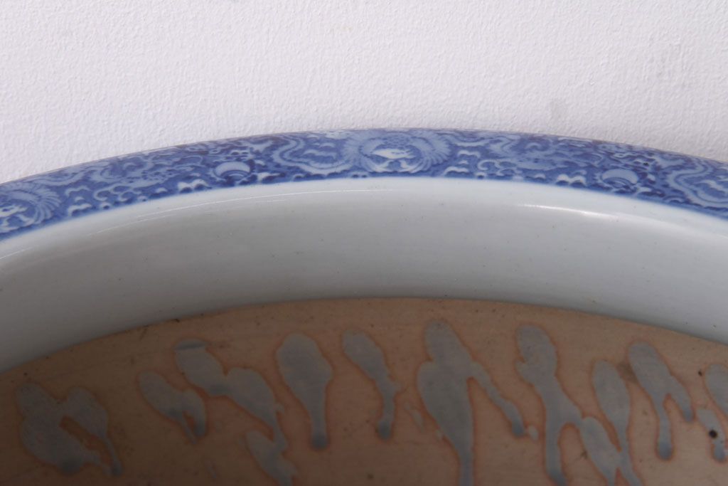 アンティーク雑貨 和製アンティーク 山水図 上品な雰囲気漂う瀬戸火鉢(鉢カバー)