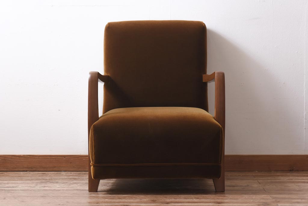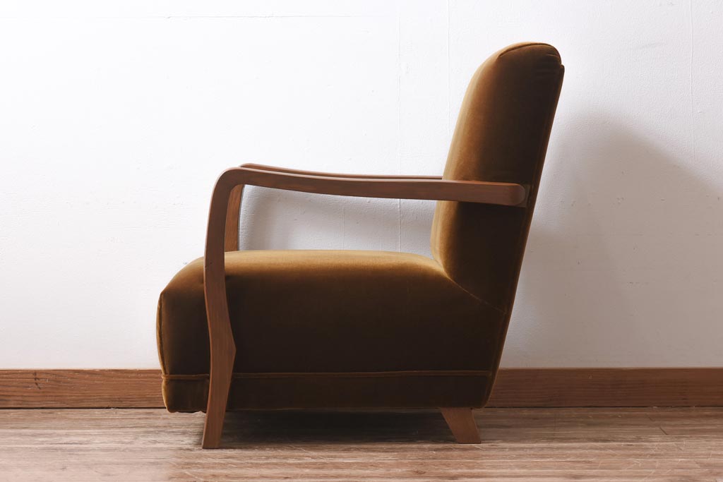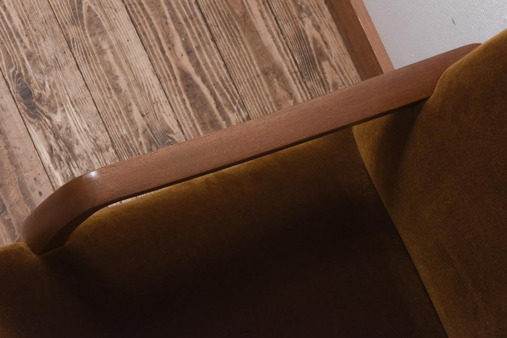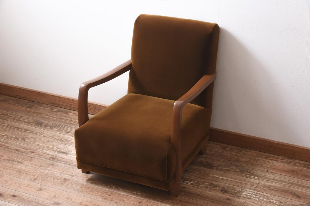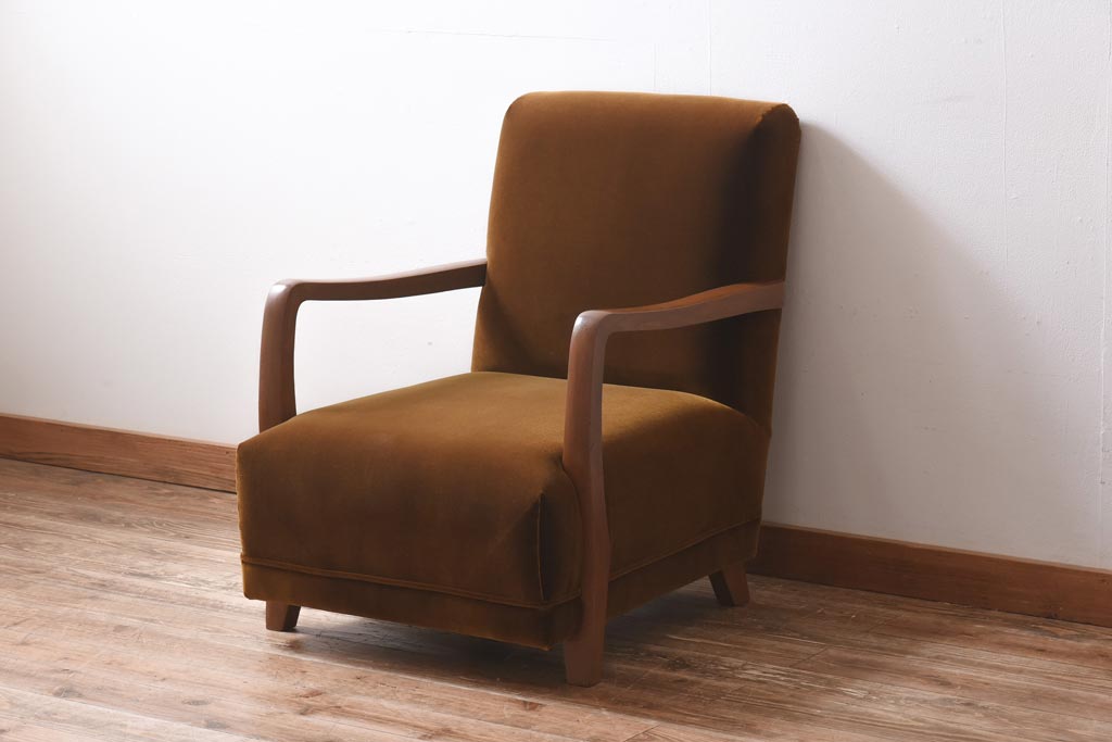 アンティーク家具 和製アンティーク 低めの高さが心地いいベルベット素材の1人掛けソファ(1)