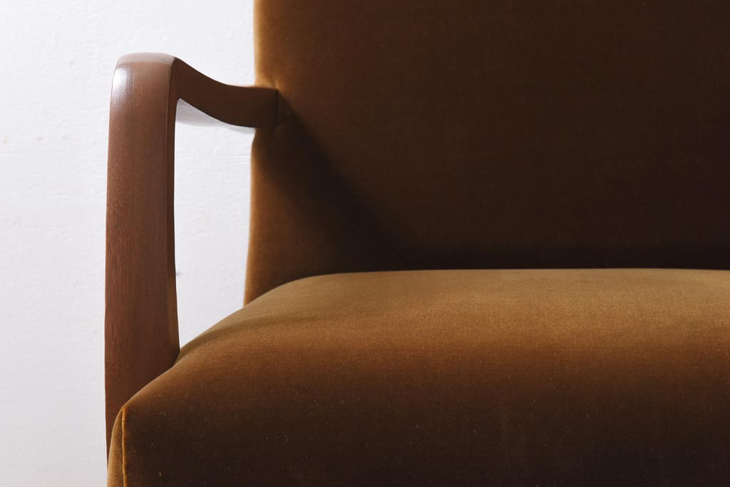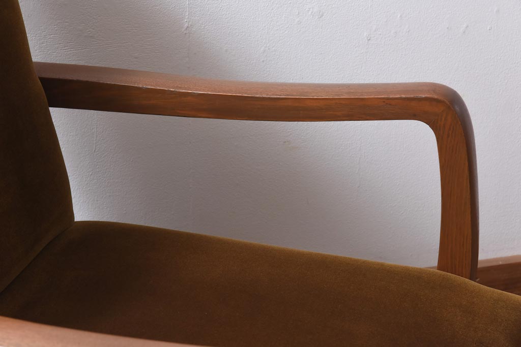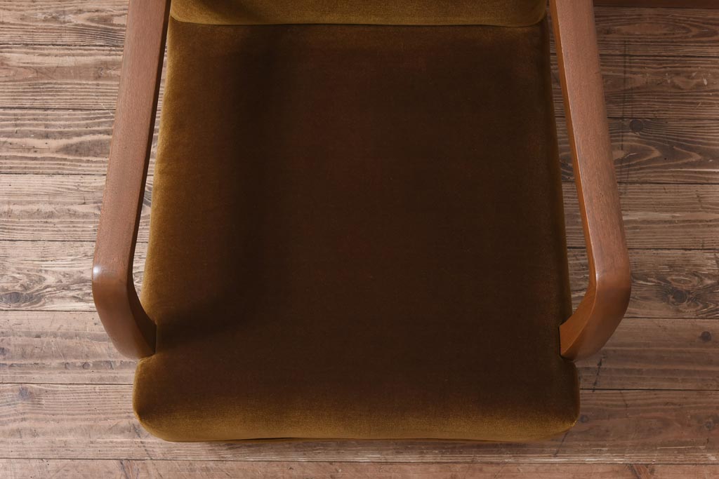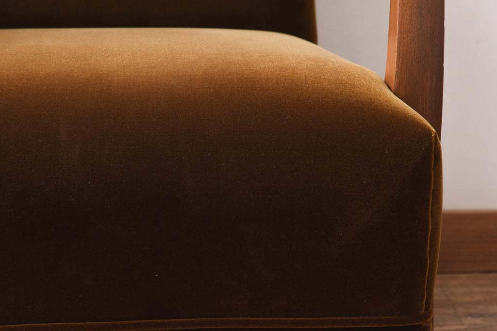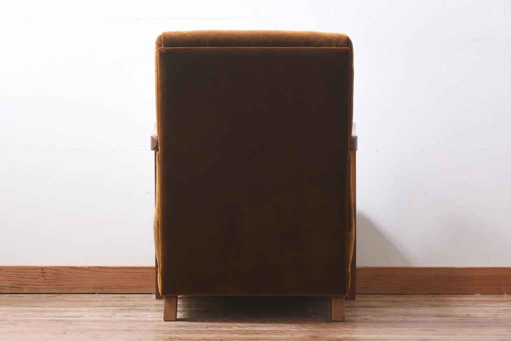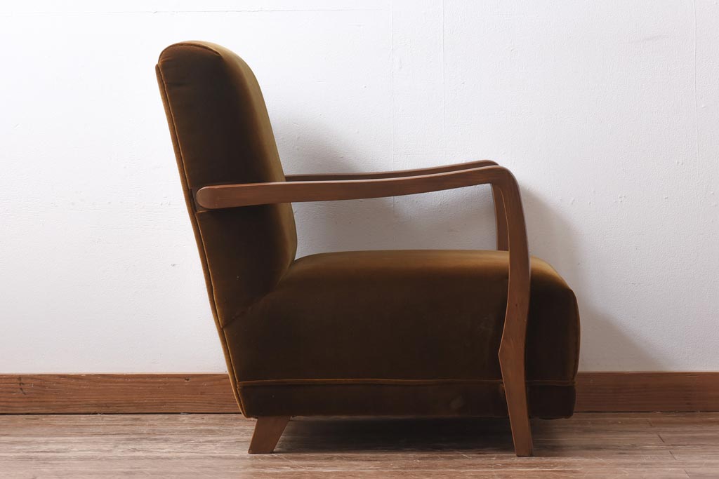 アンティーク家具 和製アンティーク 低めの高さが心地いいベルベット素材の1人掛けソファ(1)