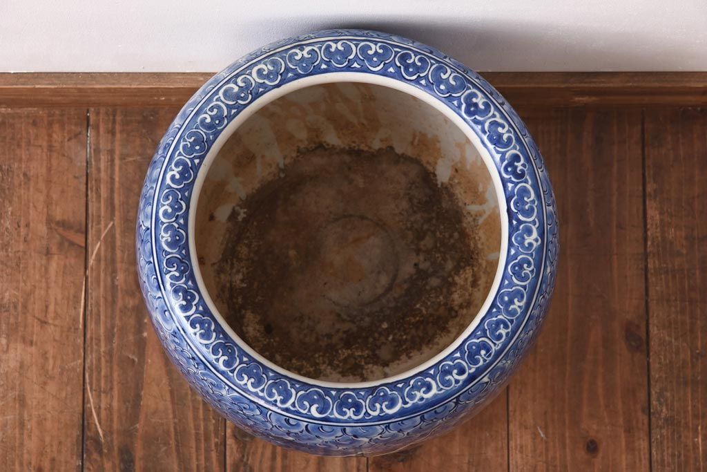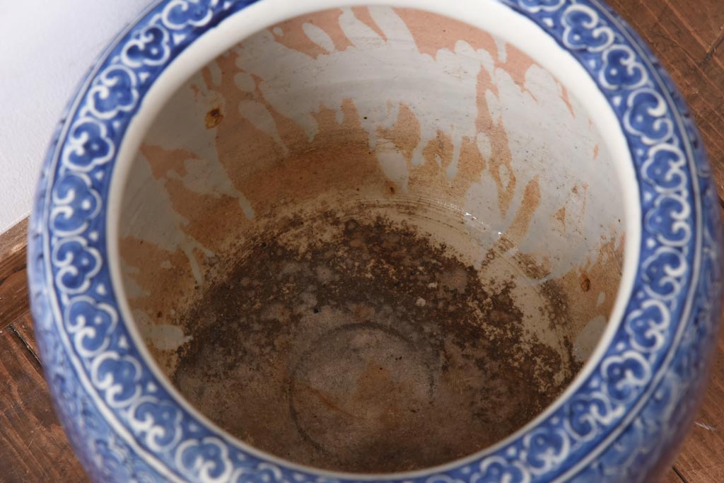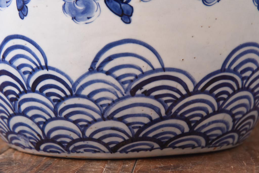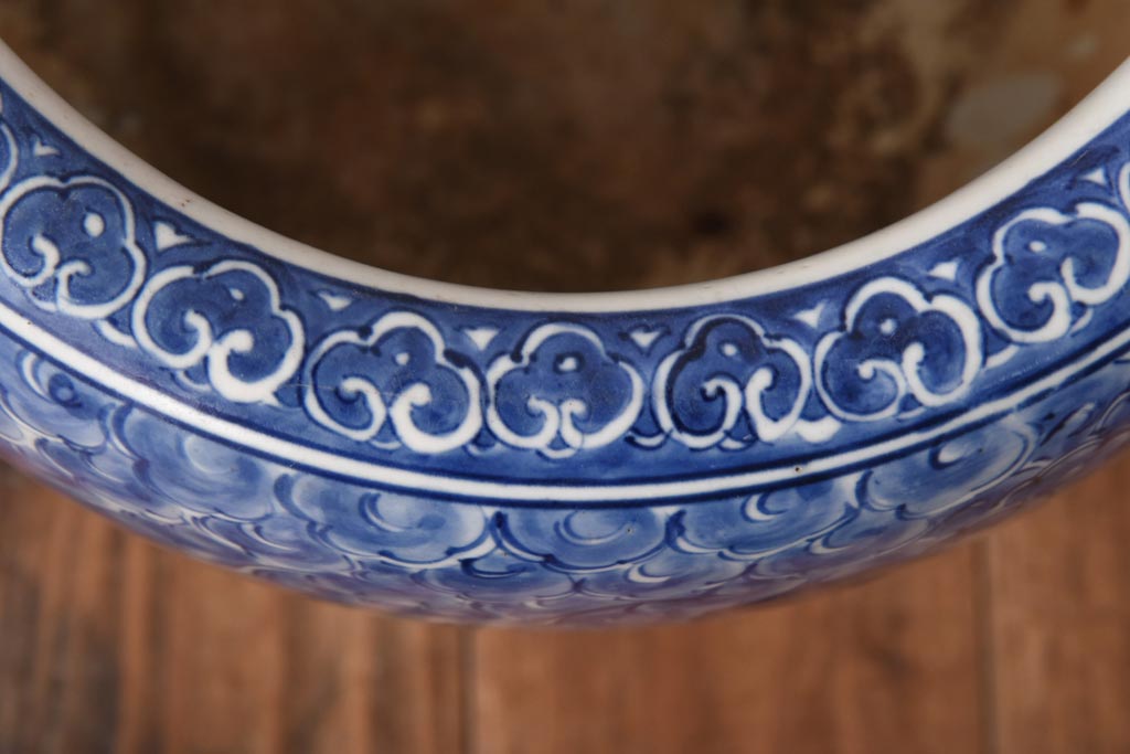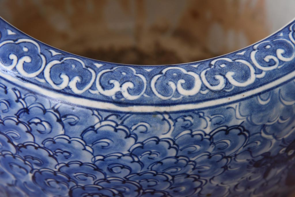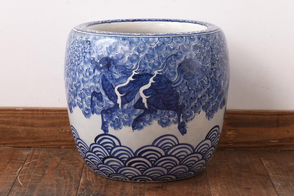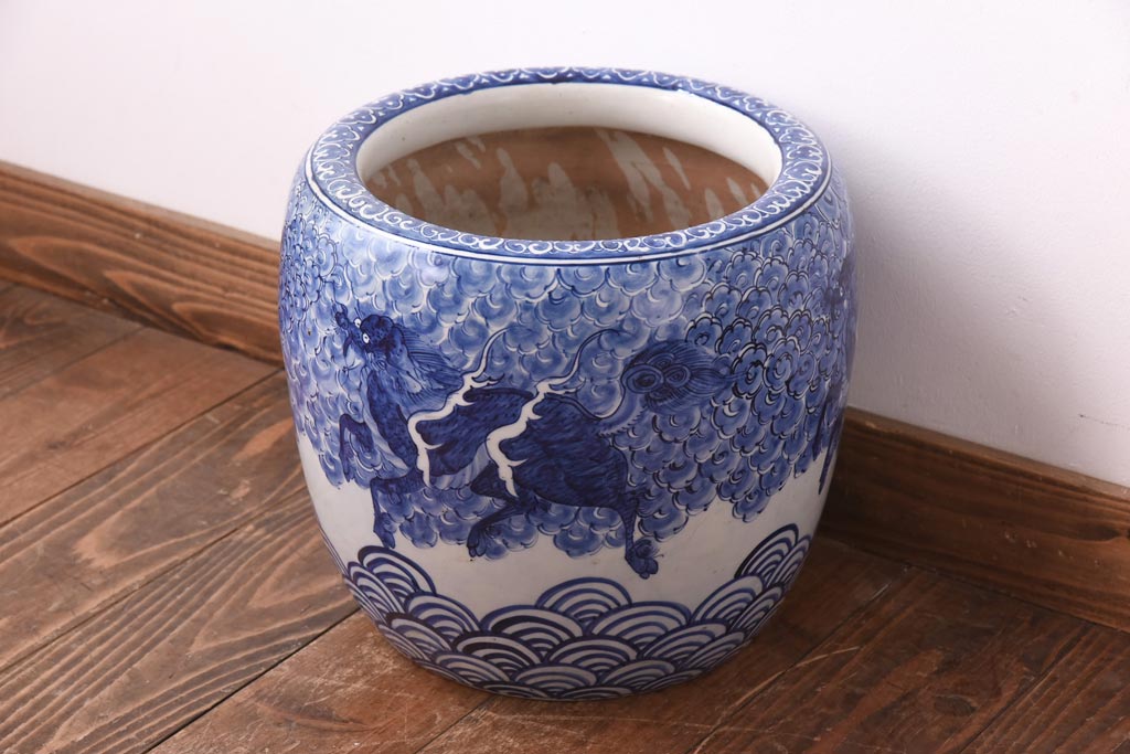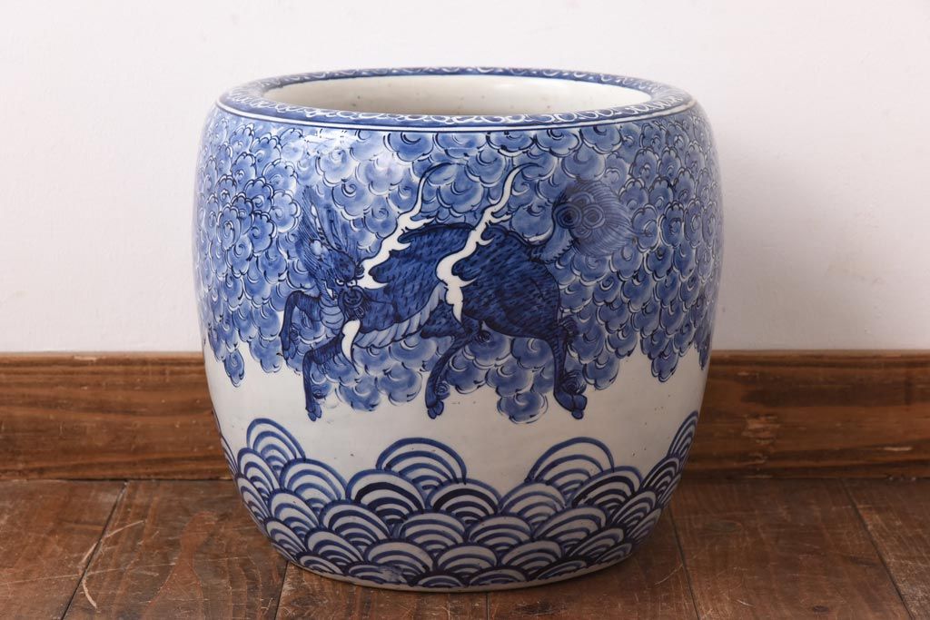 火鉢> 瀬戸火鉢 > アンティーク雑貨 和製アンティーク 麒麟の図 和の空間を引き立てる瀬戸火鉢(鉢カバー)
