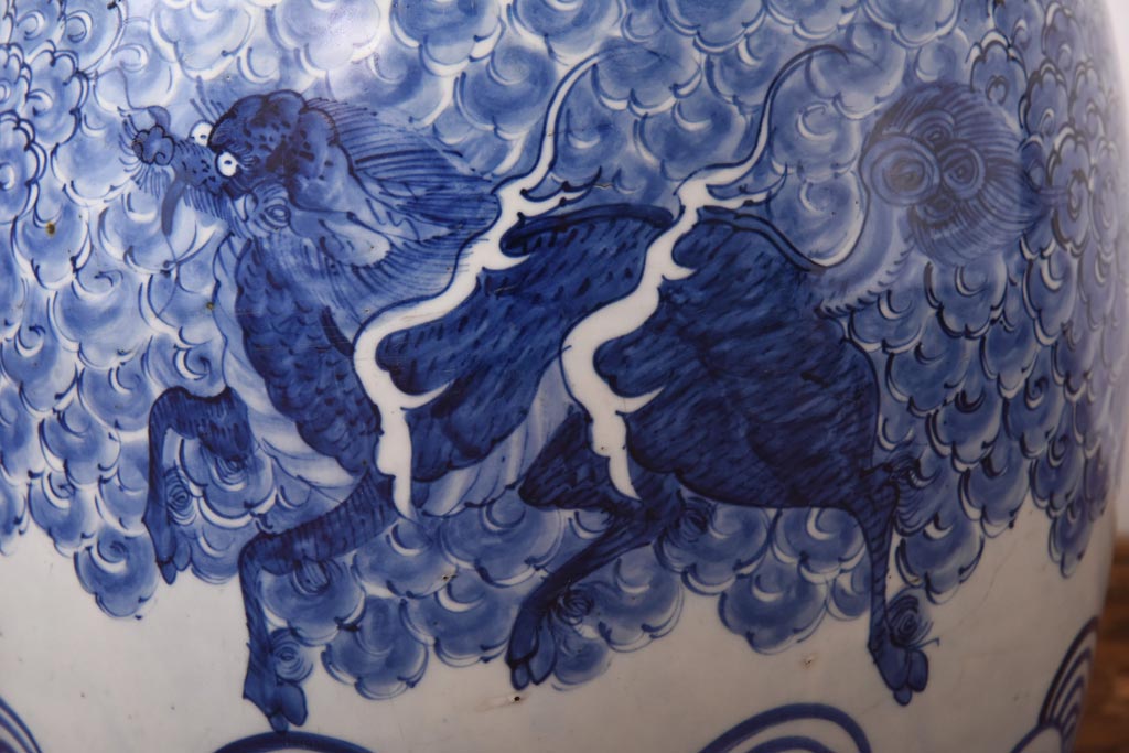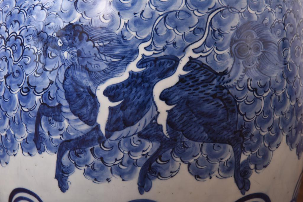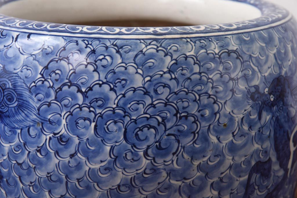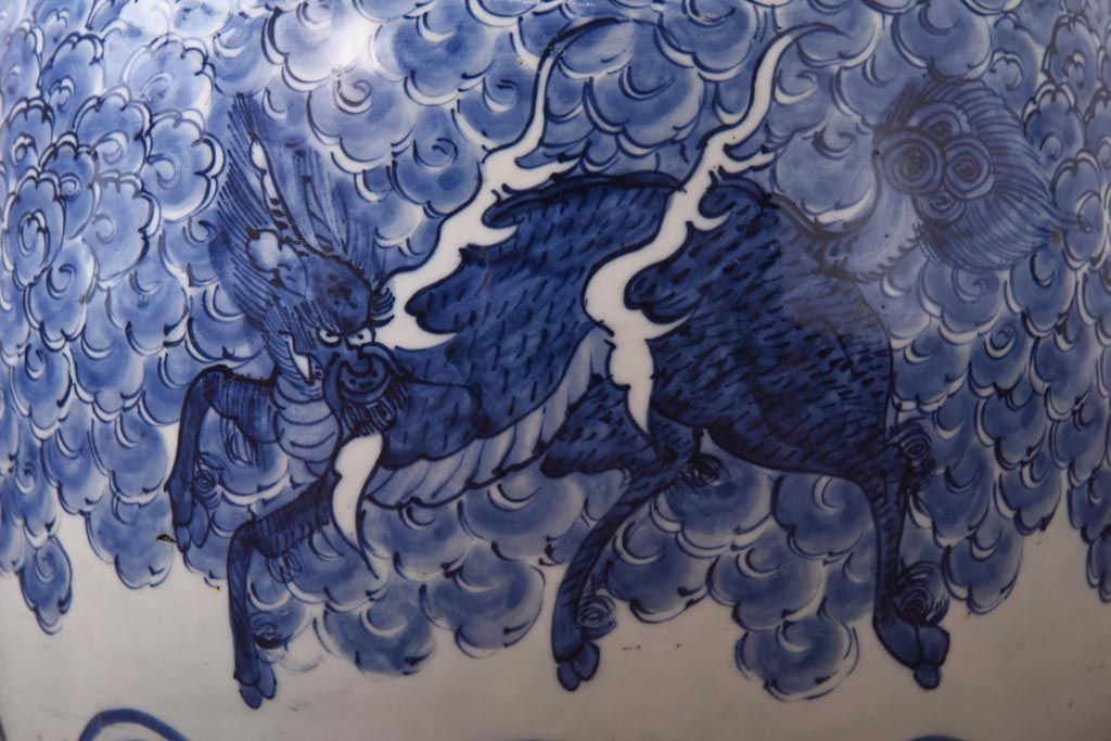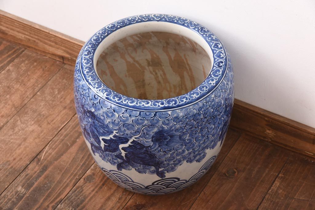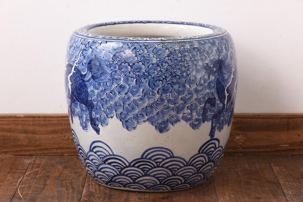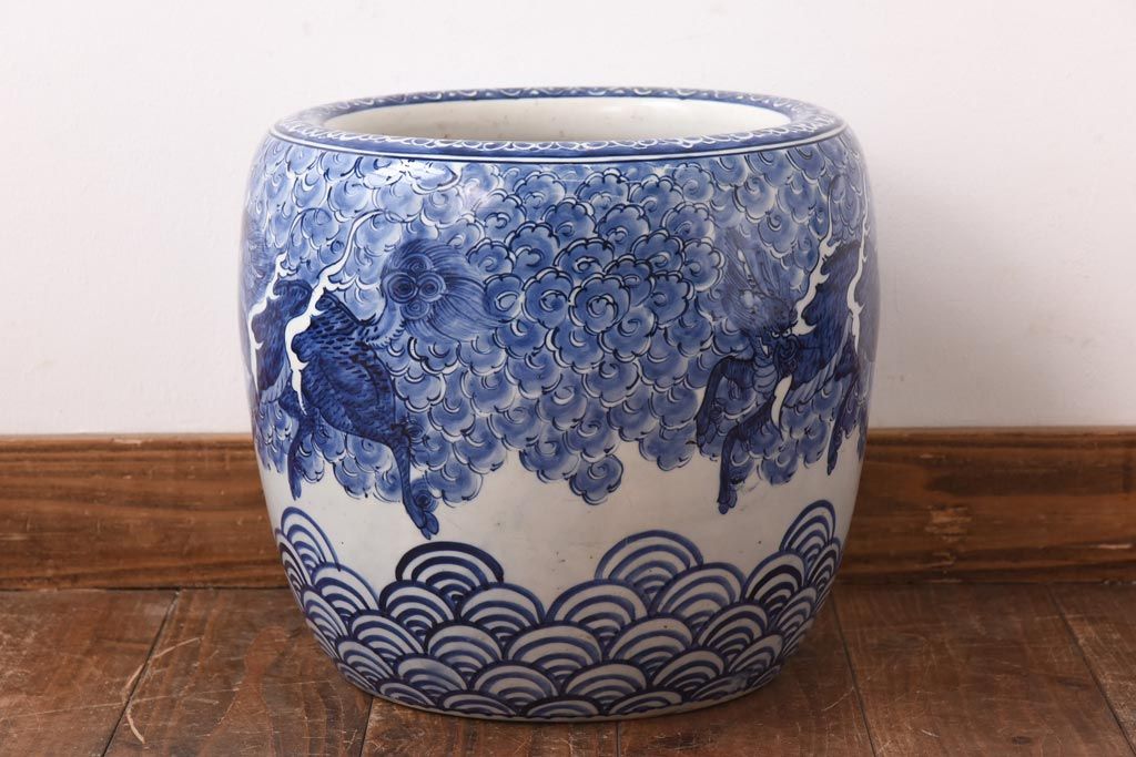 アンティーク雑貨 和製アンティーク 麒麟の図 和の空間を引き立てる瀬戸火鉢(鉢カバー)