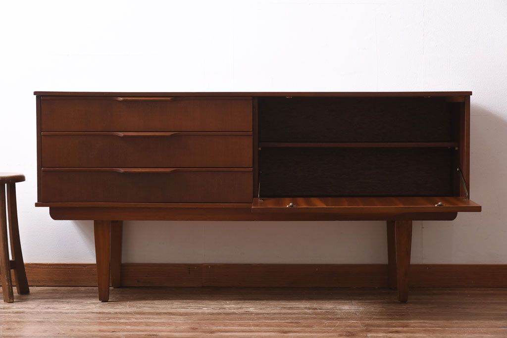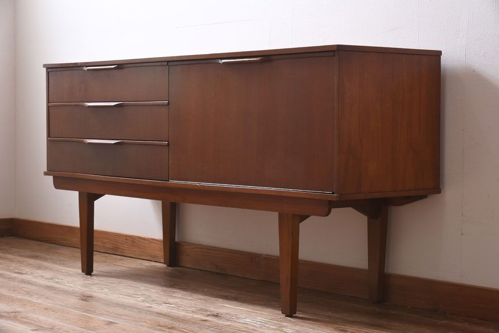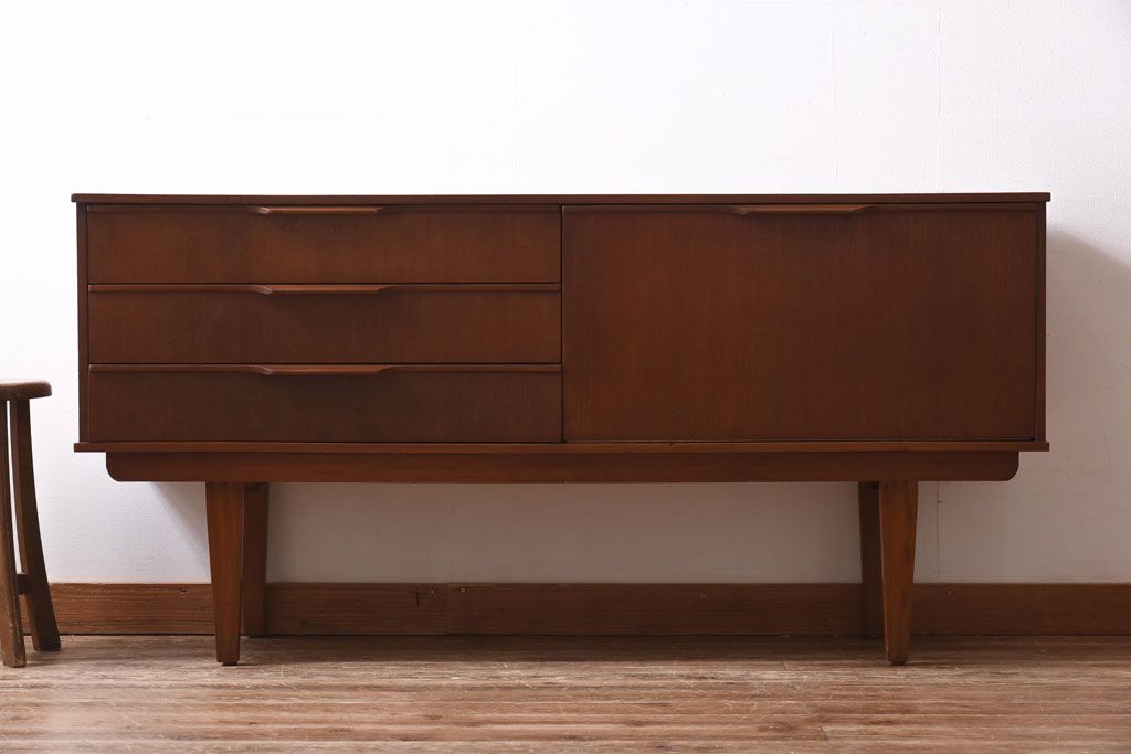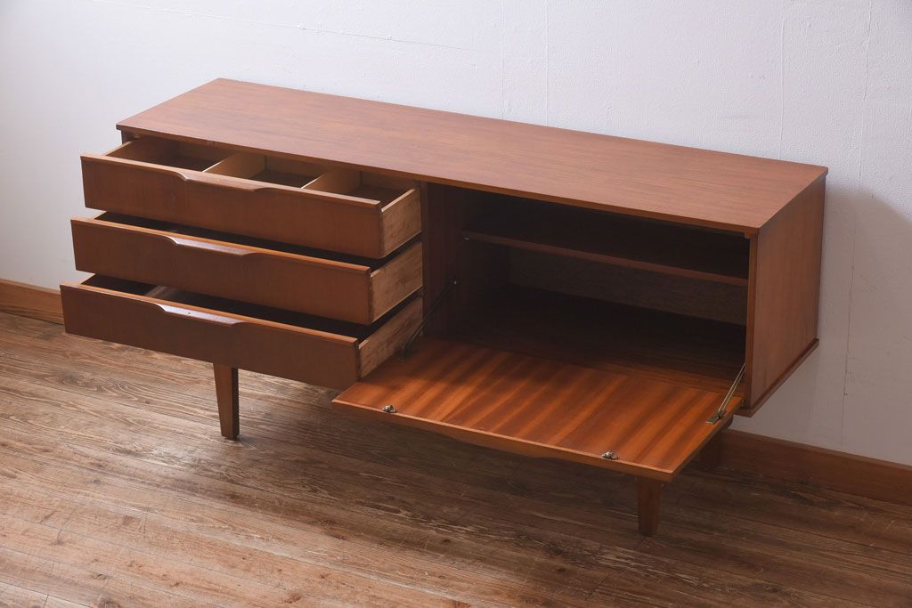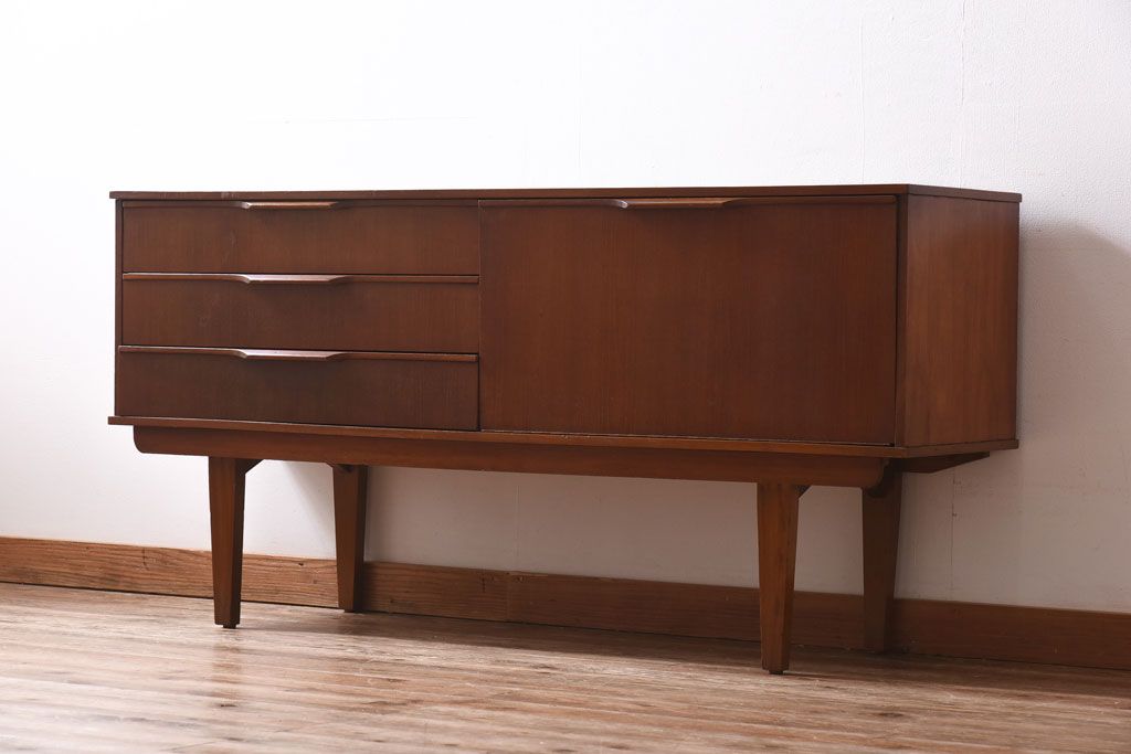 ヴィンテージ家具 北欧ビンテージ デンマーク チーク材 すっきりとしたデザインが魅力のサイドボード(リビングボード)