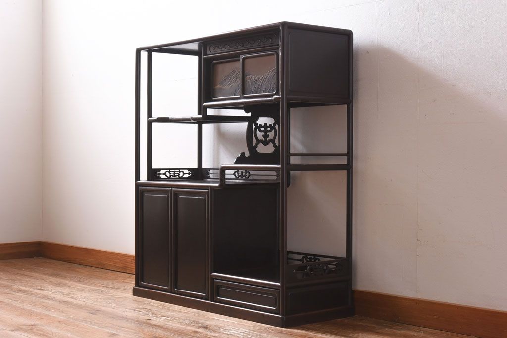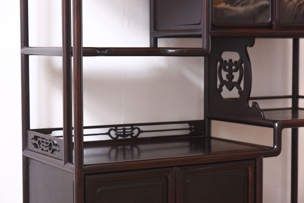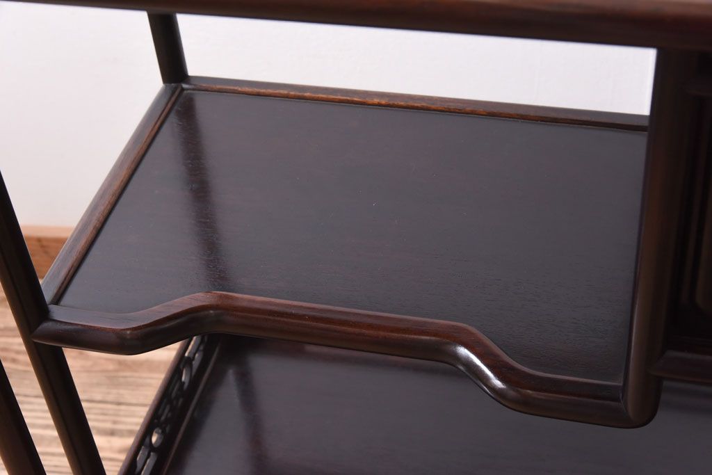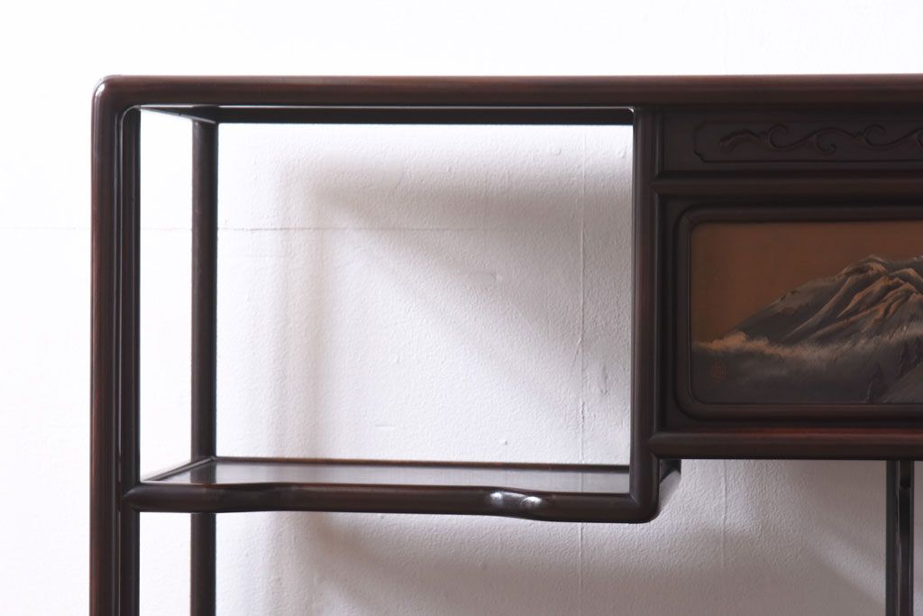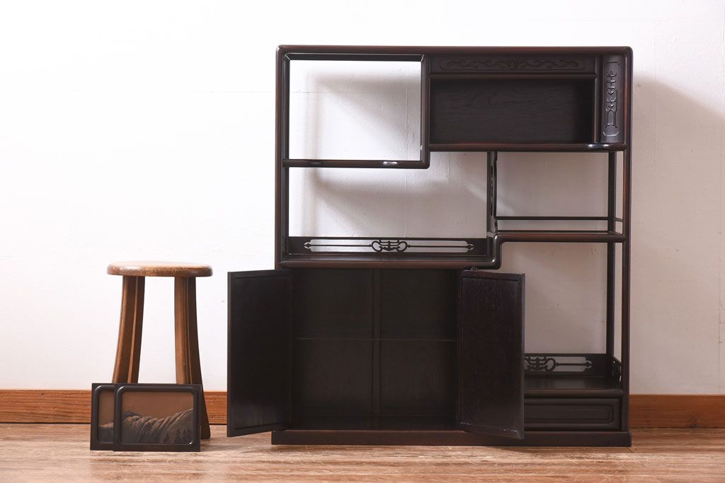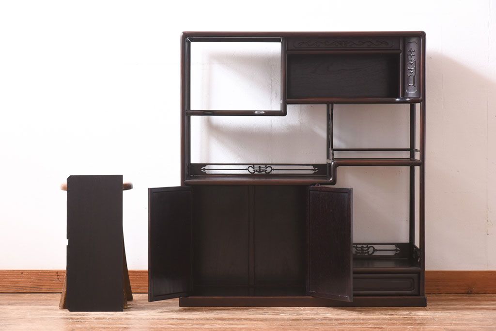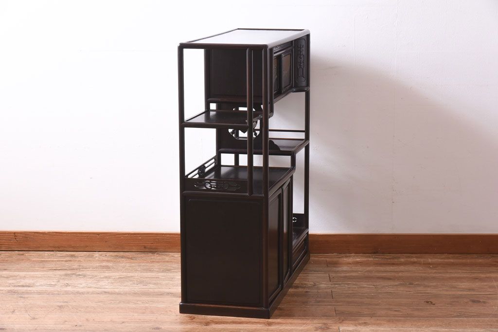 ラフジュ工房> オープンラック・シェルフ> ディスプレイラック > アンティーク家具 和製アンティーク 紫檀と漆の組み合わせが高級感醸し出す茶棚(収納棚、飾り棚)