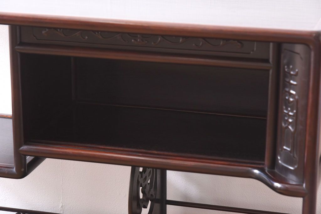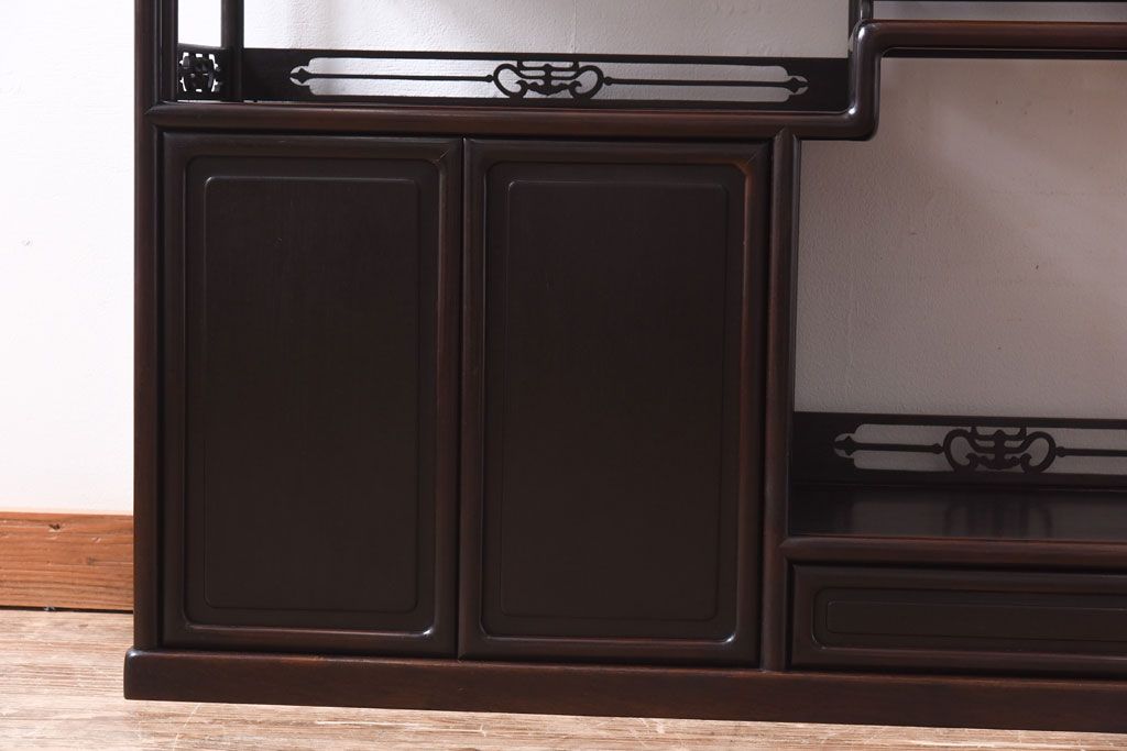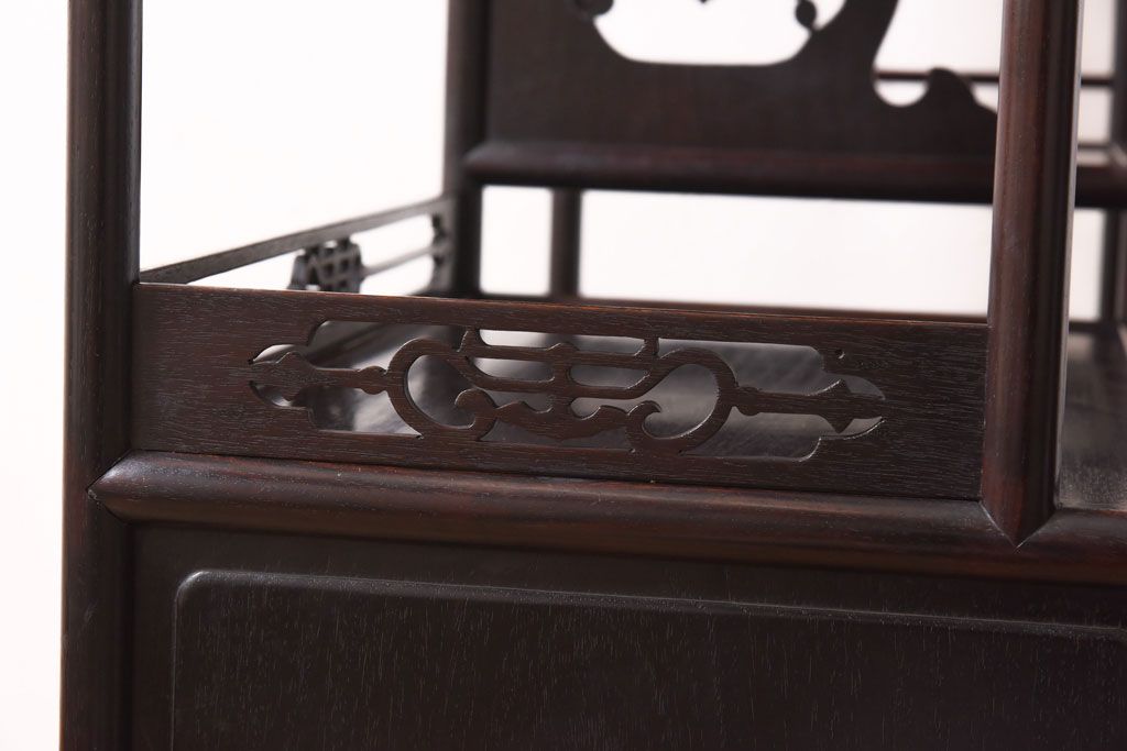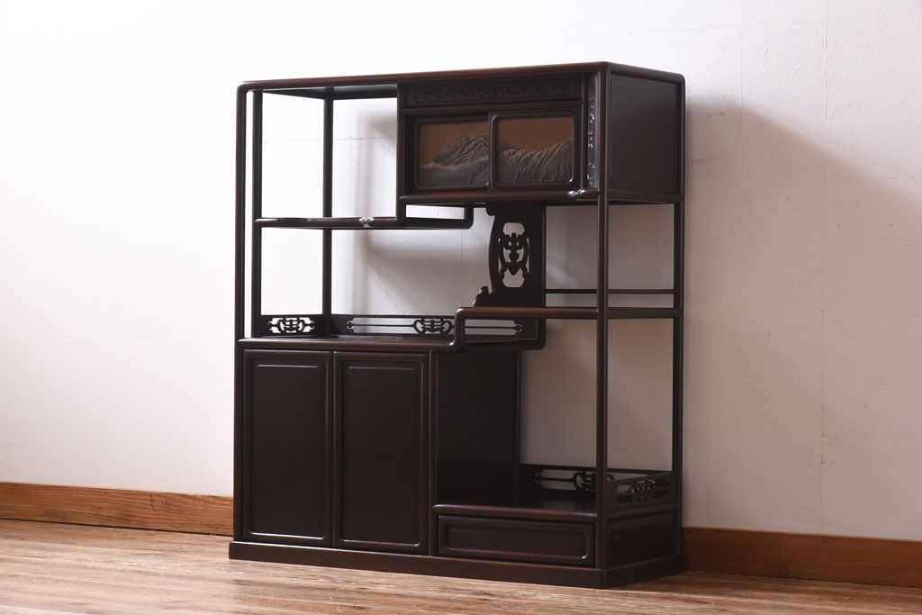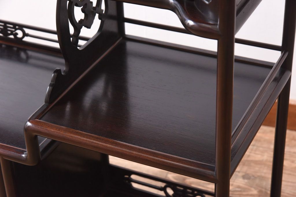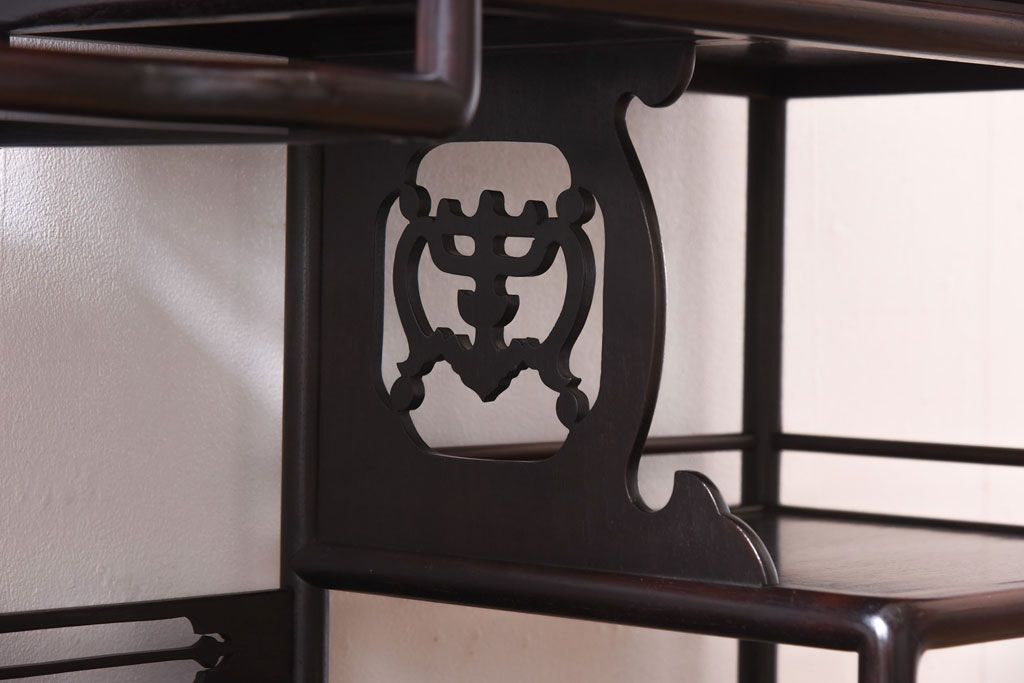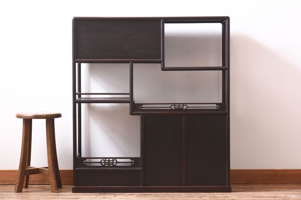 ラフジュ工房> オープンラック・シェルフ> ディスプレイラック > アンティーク家具 和製アンティーク 紫檀と漆の組み合わせが高級感醸し出す茶棚(収納棚、飾り棚)