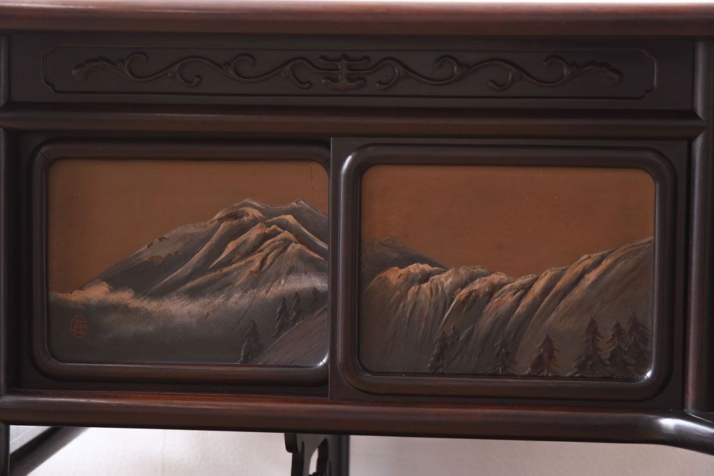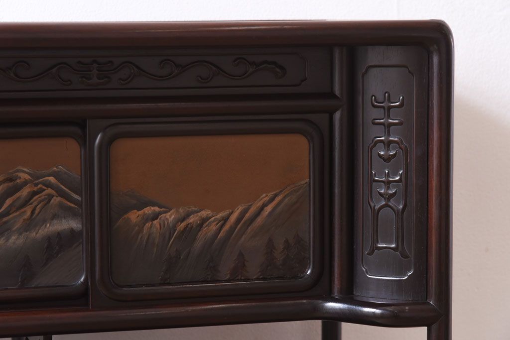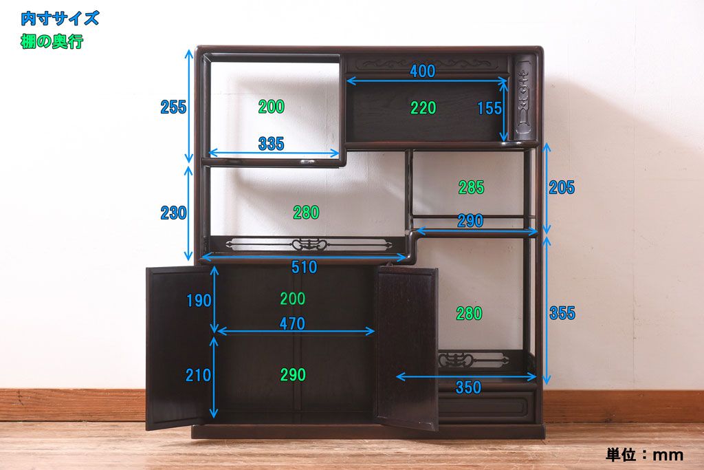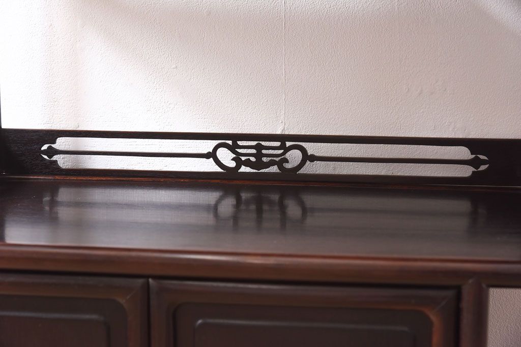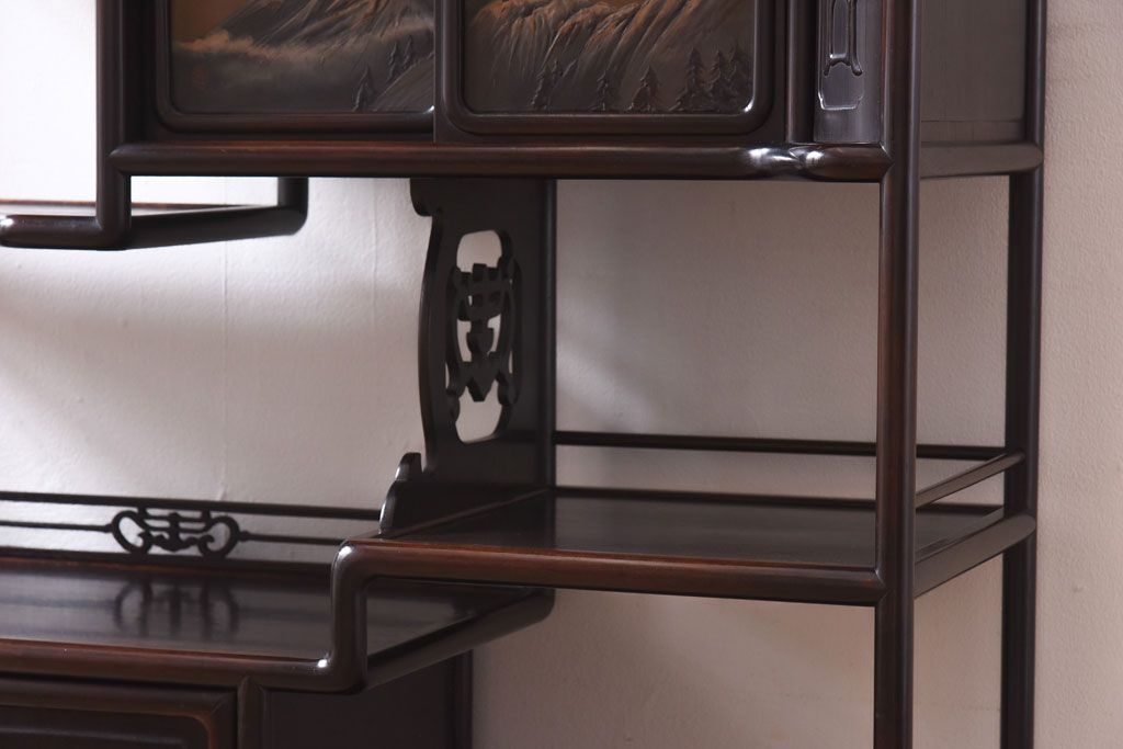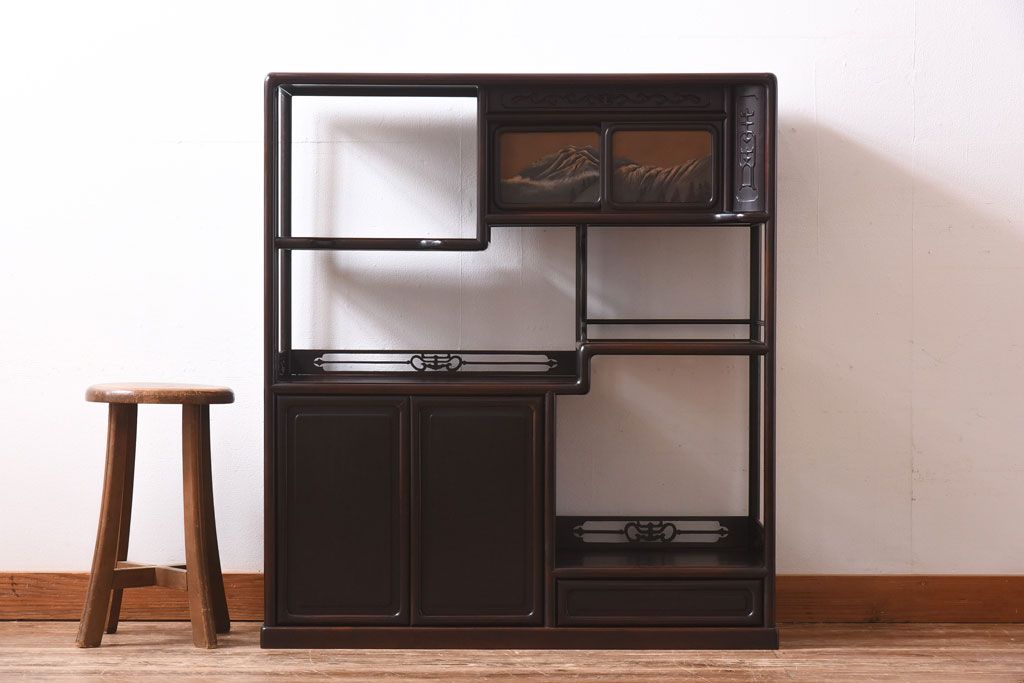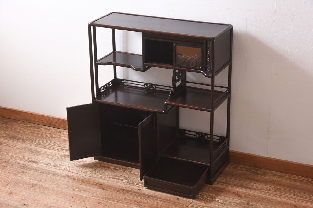 ラフジュ工房> 和箪笥> 茶箪笥・茶棚 > アンティーク家具 和製アンティーク 紫檀と漆の組み合わせが高級感醸し出す茶棚(収納棚、飾り棚)