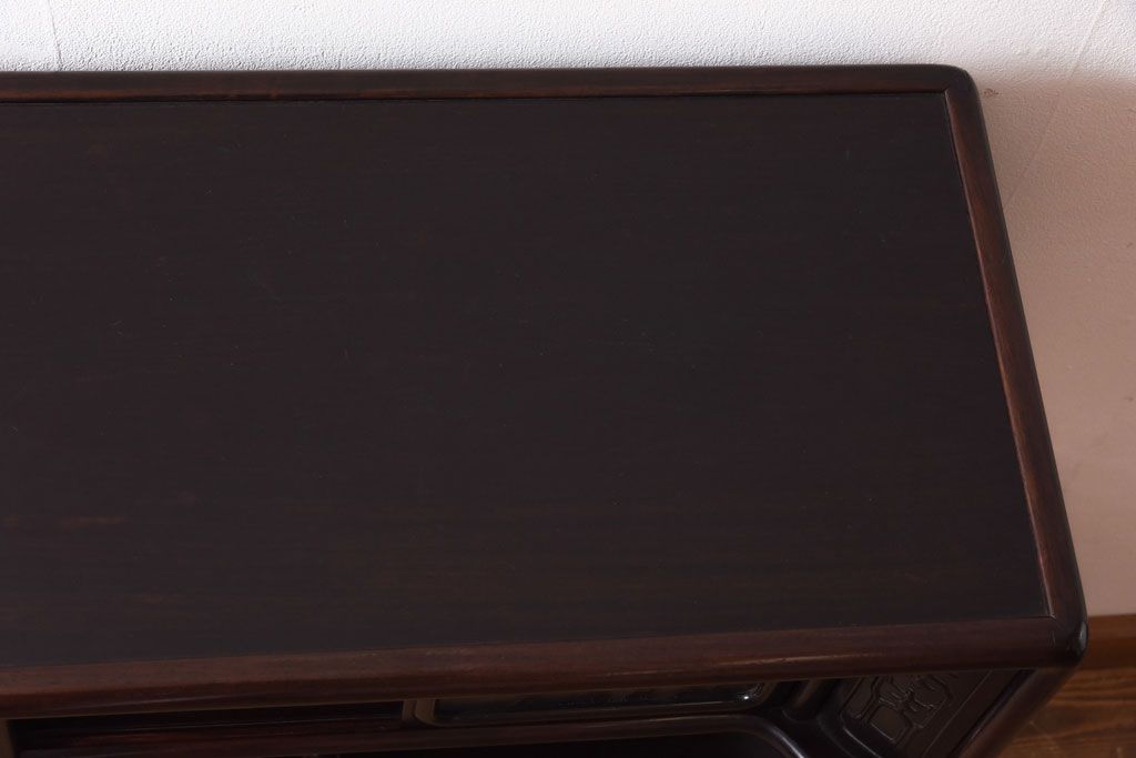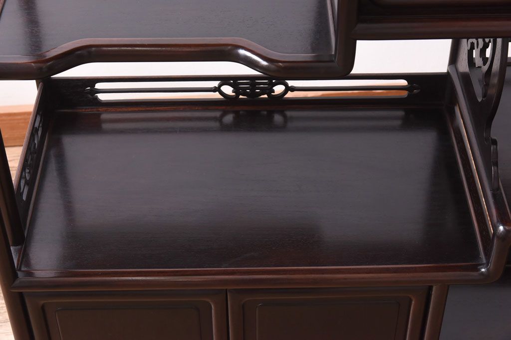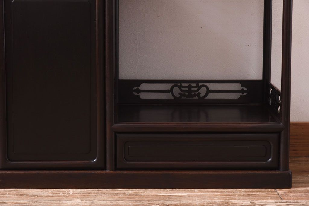 アンティーク家具 和製アンティーク 紫檀と漆の組み合わせが高級感醸し出す茶棚(収納棚、飾り棚)
