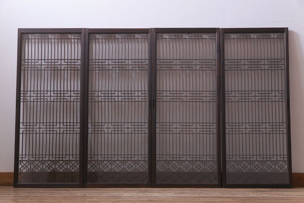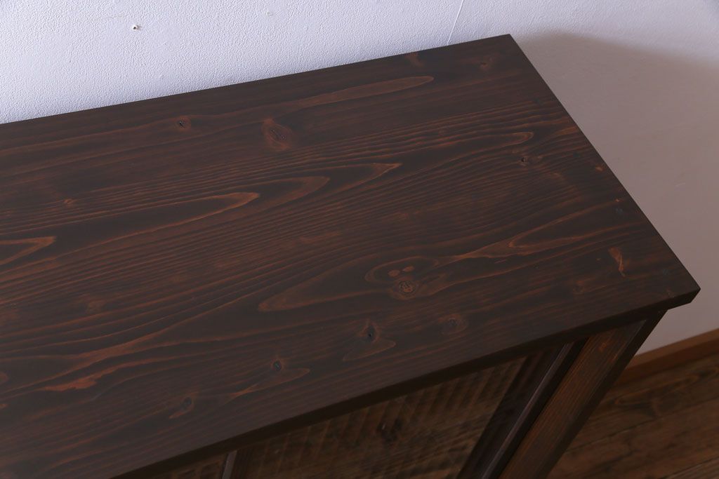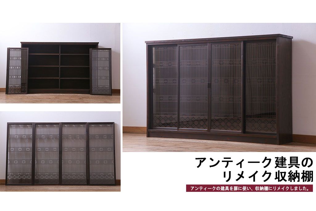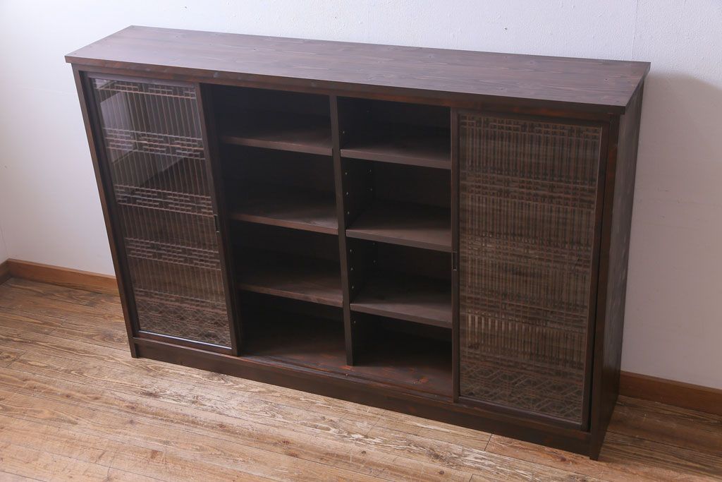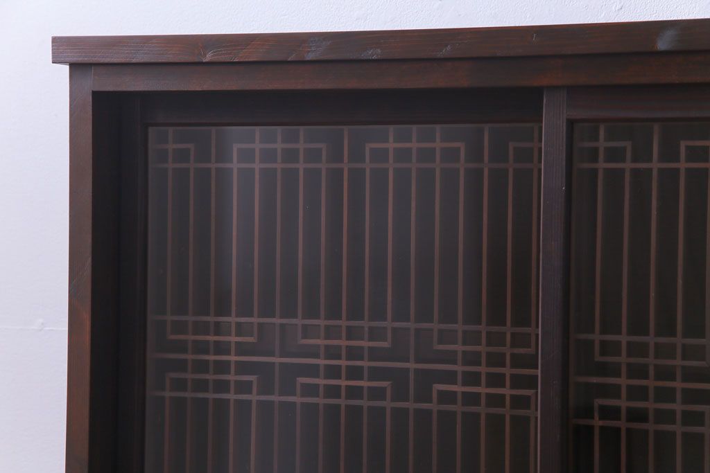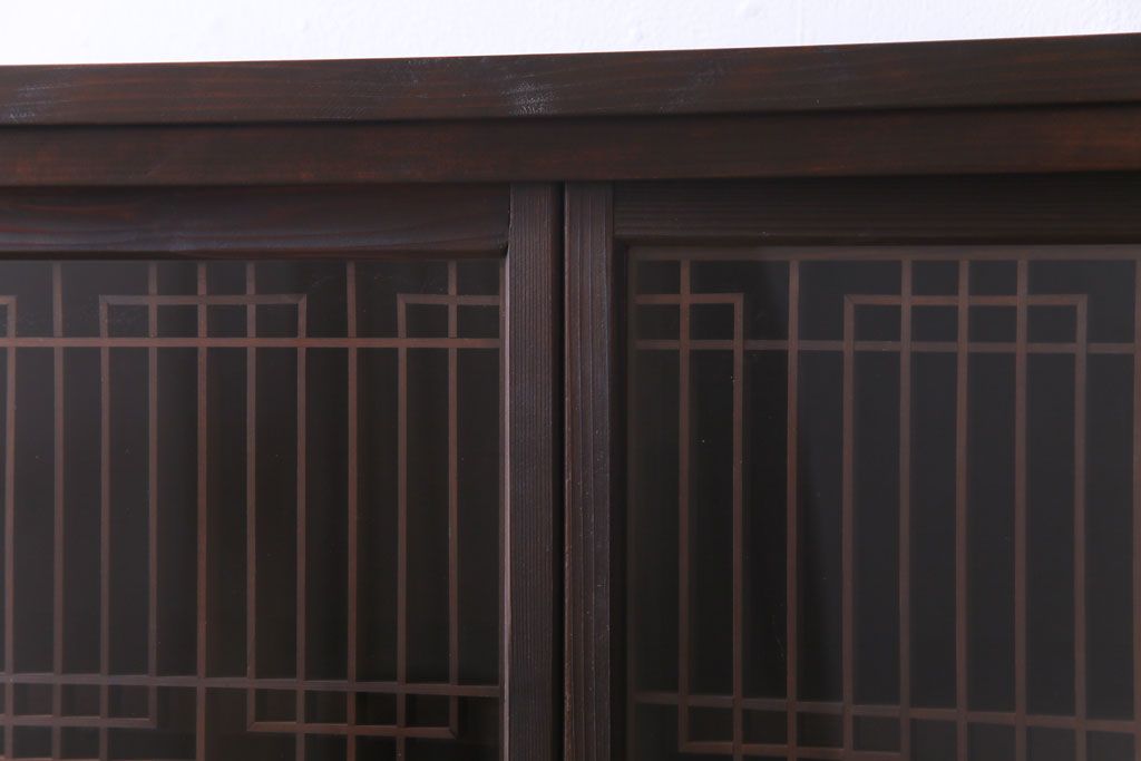 ラフジュ工房オリジナル 組子 書院戸をリメイクしたガラス戸棚(収納棚、サイドボード)