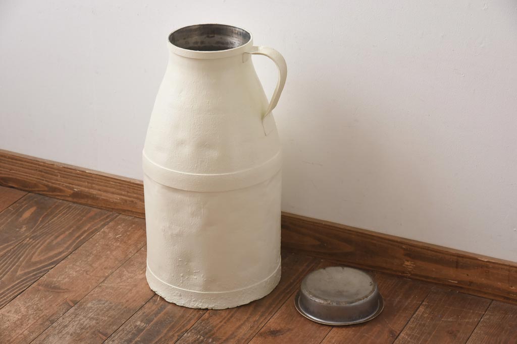 アンティーク雑貨 昭和レトロ アイボリーカラーが可愛らしいミルク缶(牛乳缶)(2)