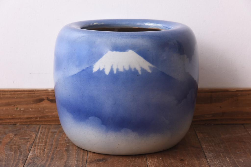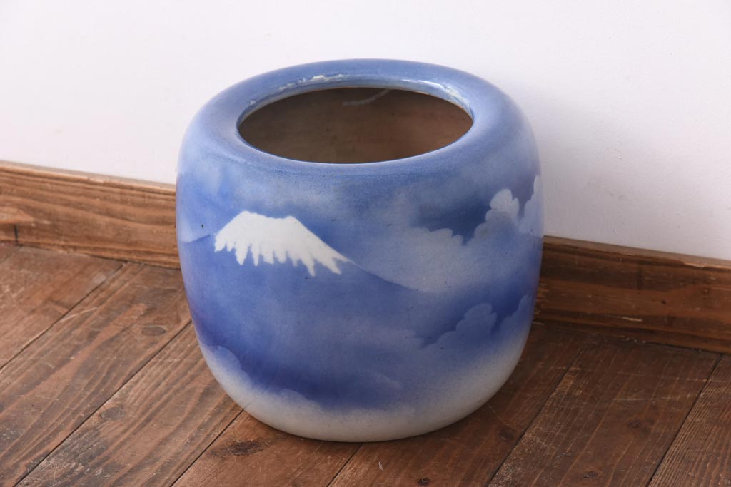 和製アンティーク 富士の図 優しげな雰囲気漂う瀬戸火鉢(手あぶり、鉢カバー)です。