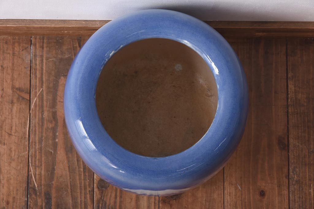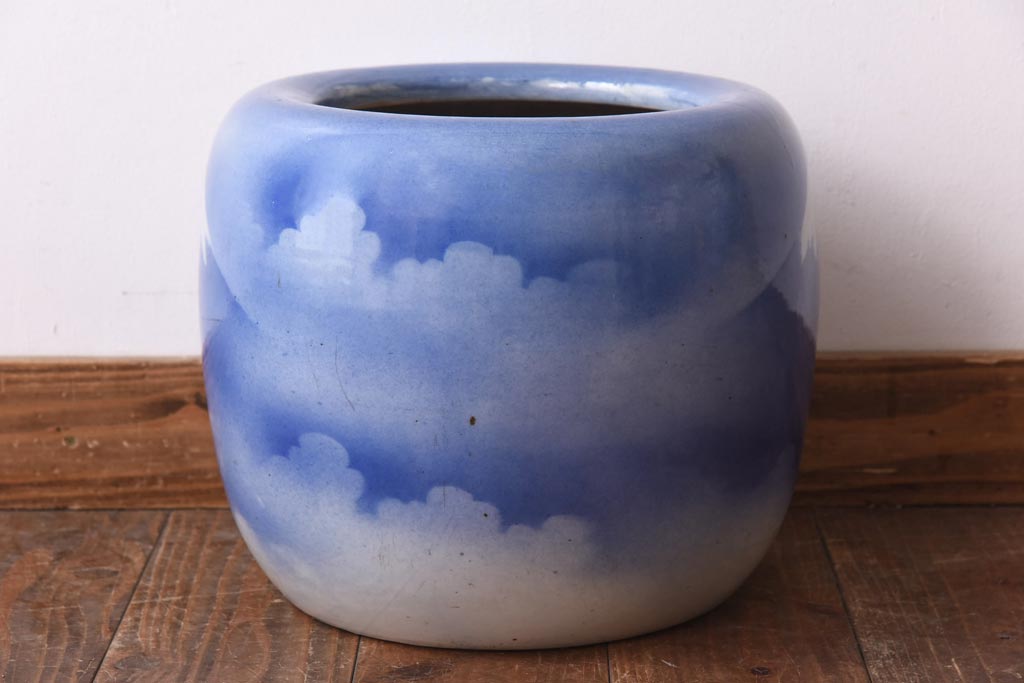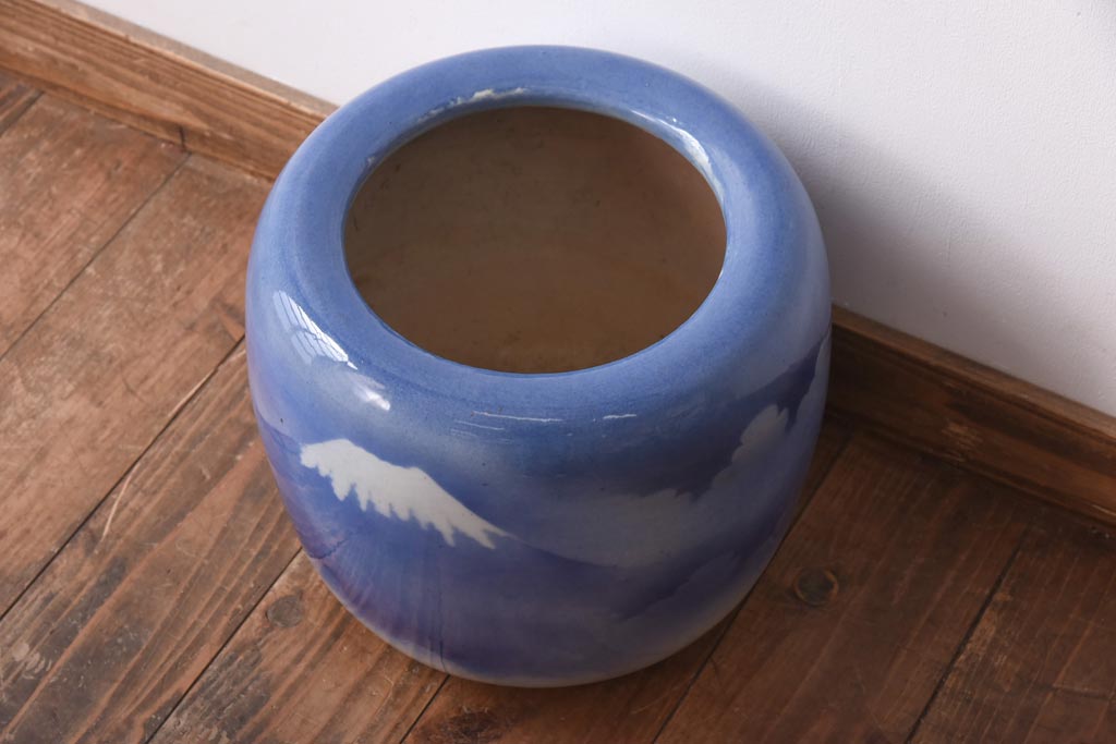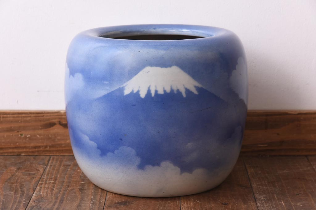 火鉢> 瀬戸火鉢 > アンティーク雑貨 和製アンティーク 富士の図 優しげな雰囲気漂う瀬戸火鉢(手あぶり、鉢カバー)