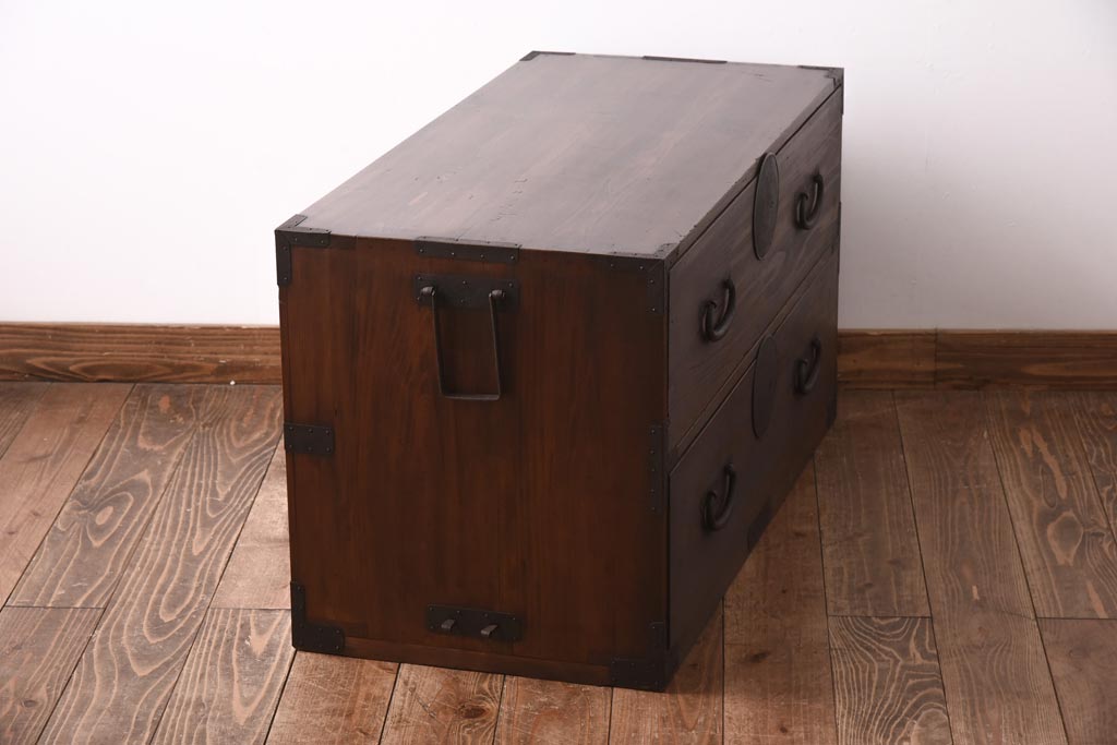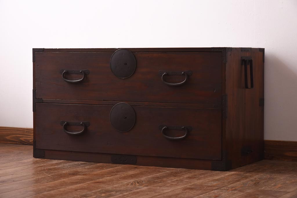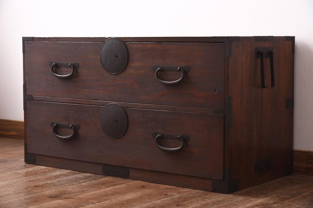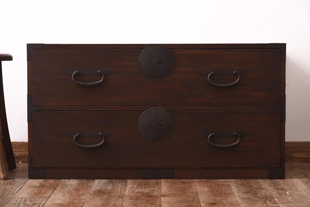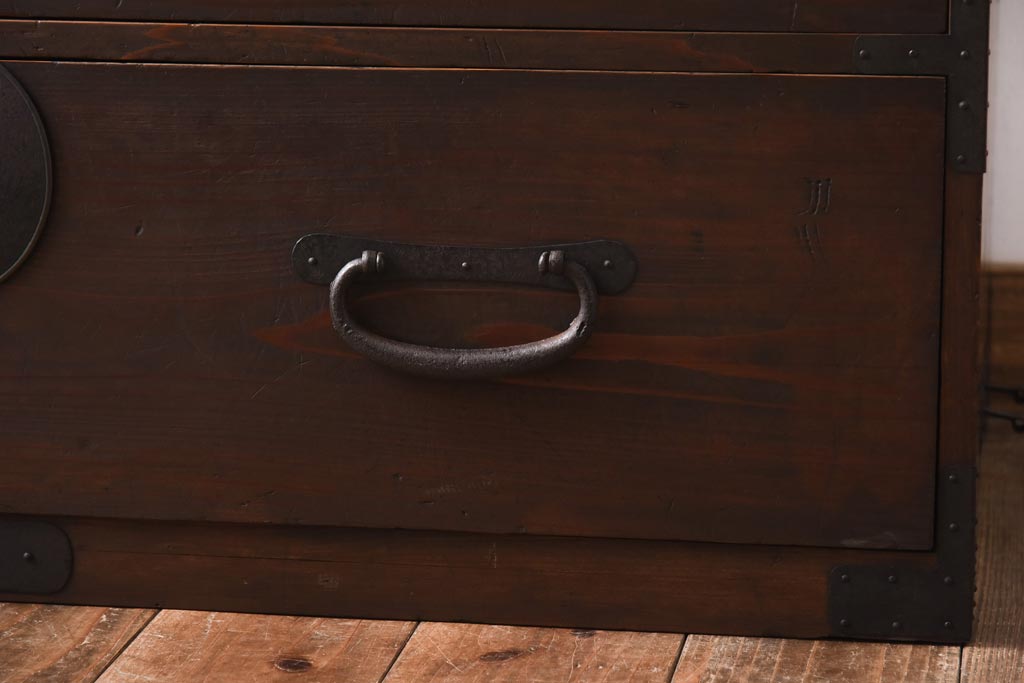 ラフジュ工房> 和箪笥 > アンティーク家具 和製アンティーク すっきりとしたデザインの箪笥ローボード(ローチェスト)