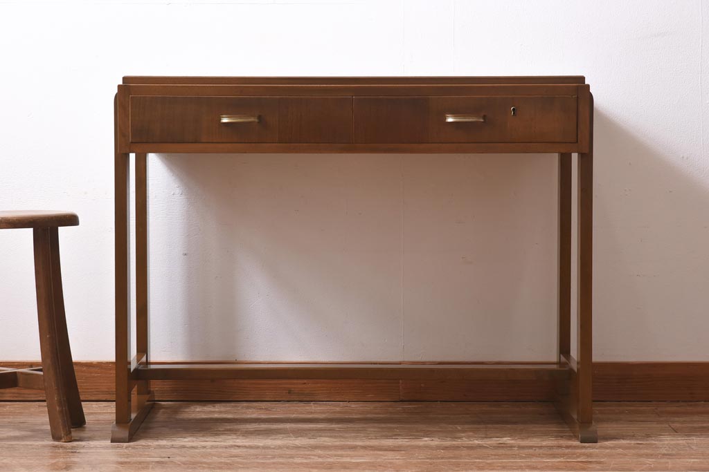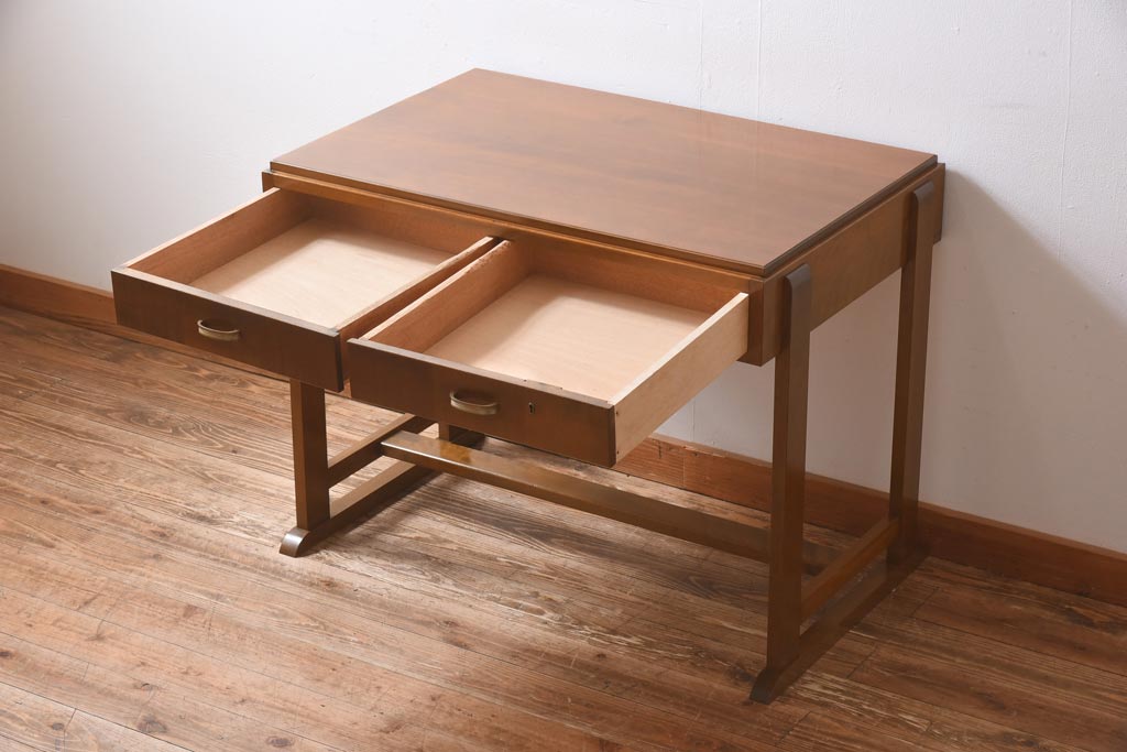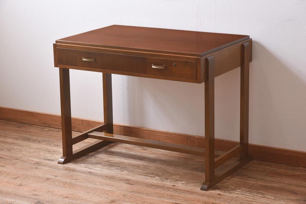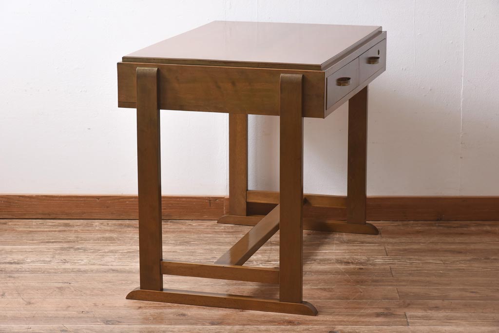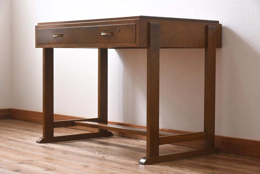 レトロ家具 昭和レトロ 樺材 たっぷりの奥行が魅力の温もり溢れる平机(デスク、在宅ワーク、在宅用作業台)