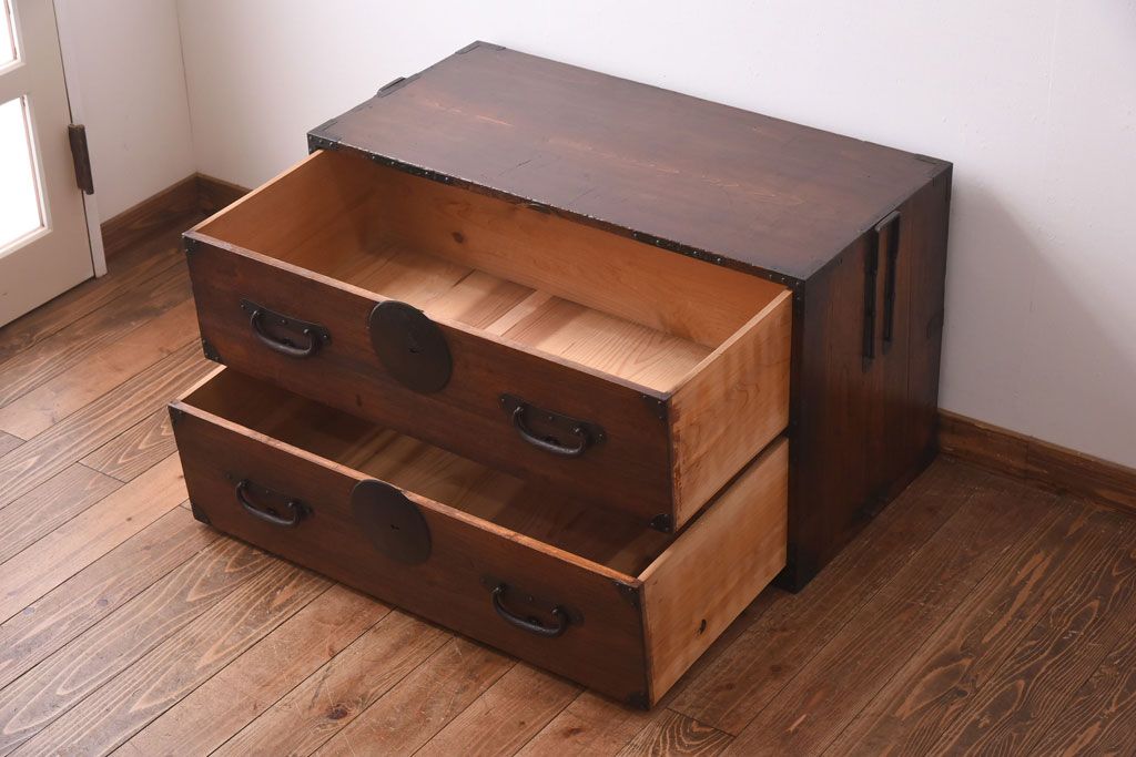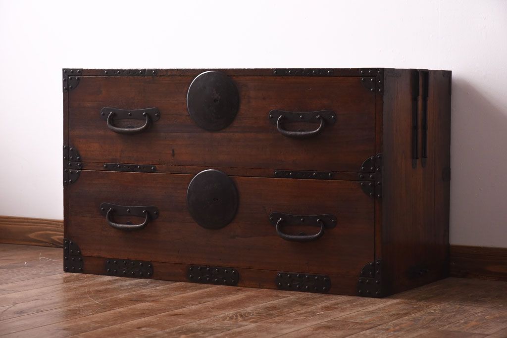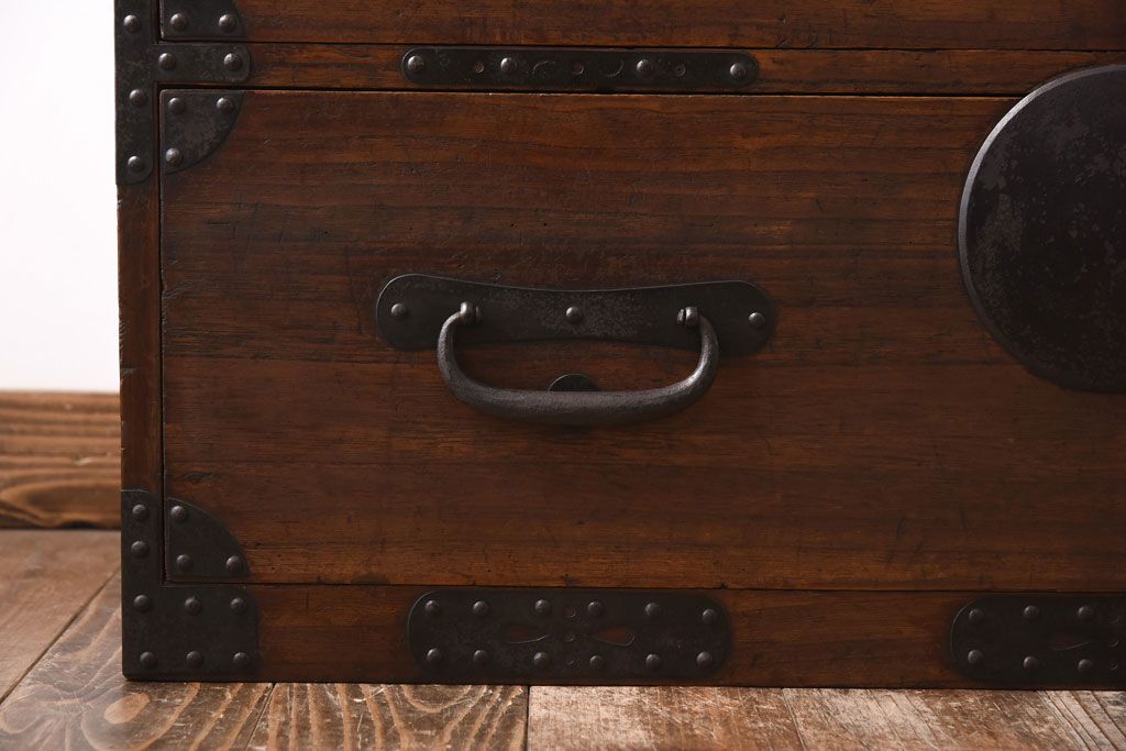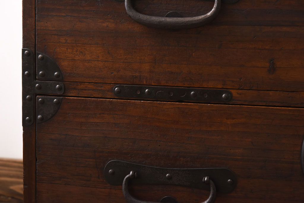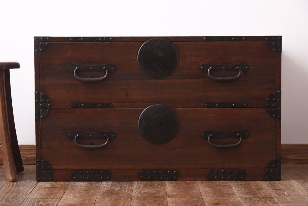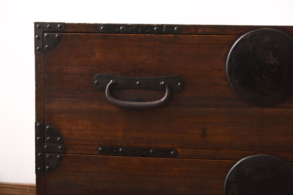 ラフジュ工房> 和箪笥 > アンティーク家具 和製アンティーク 丸金具 鋲が目を惹く時代箪笥ローボード(テレビボード、ローチェスト)