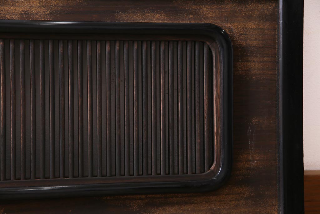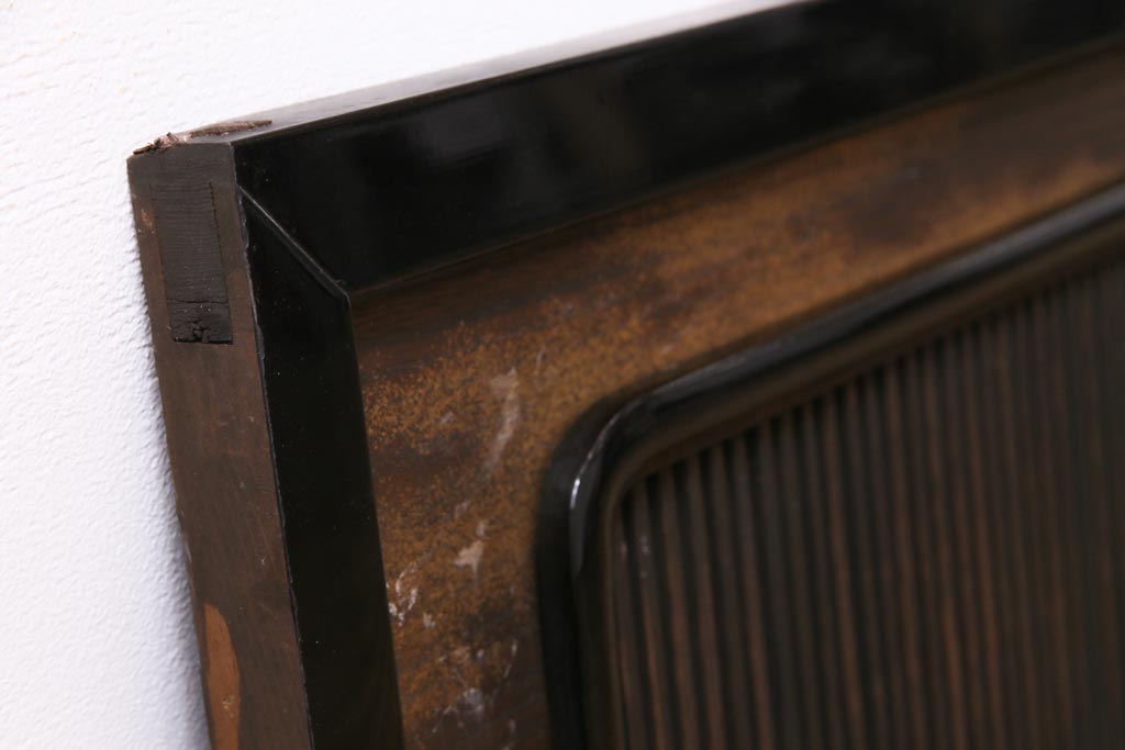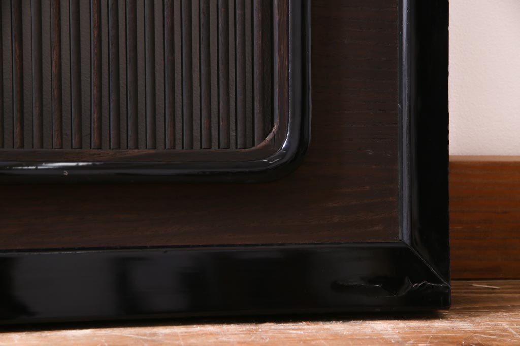 縁は漆塗りで艶やかに、枠内は格子と金箔塗りで仕上げた
