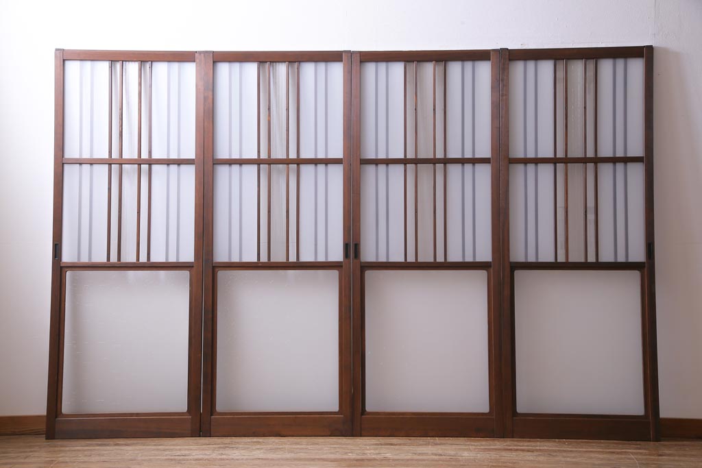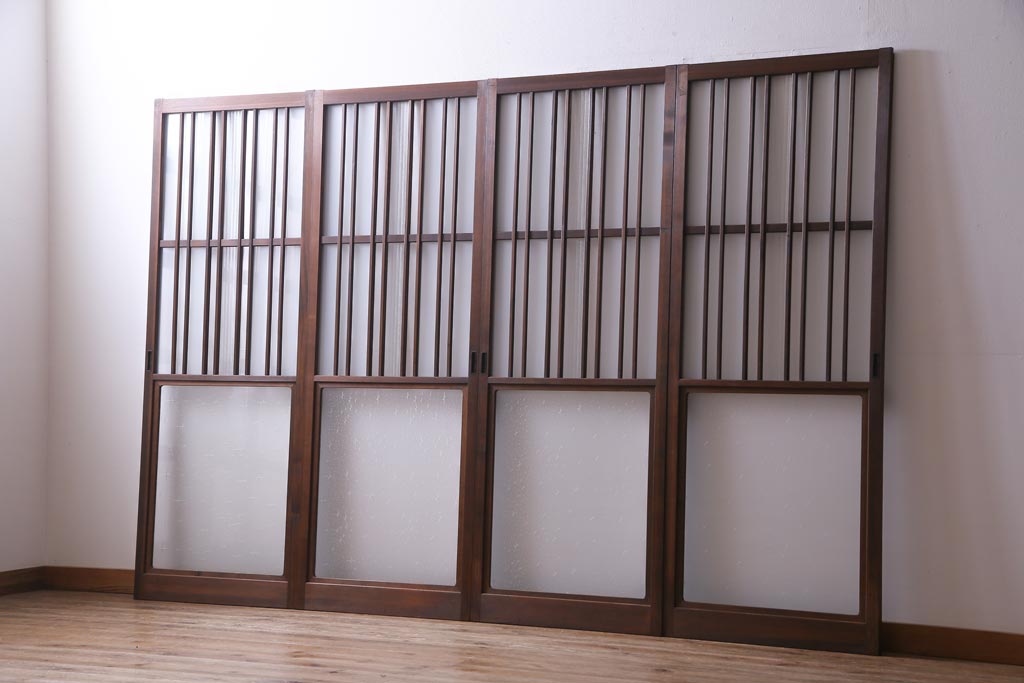 和製アンティーク レトロガラスの魅力がたっぷり詰まったガラス戸(引き戸、建具)4枚組