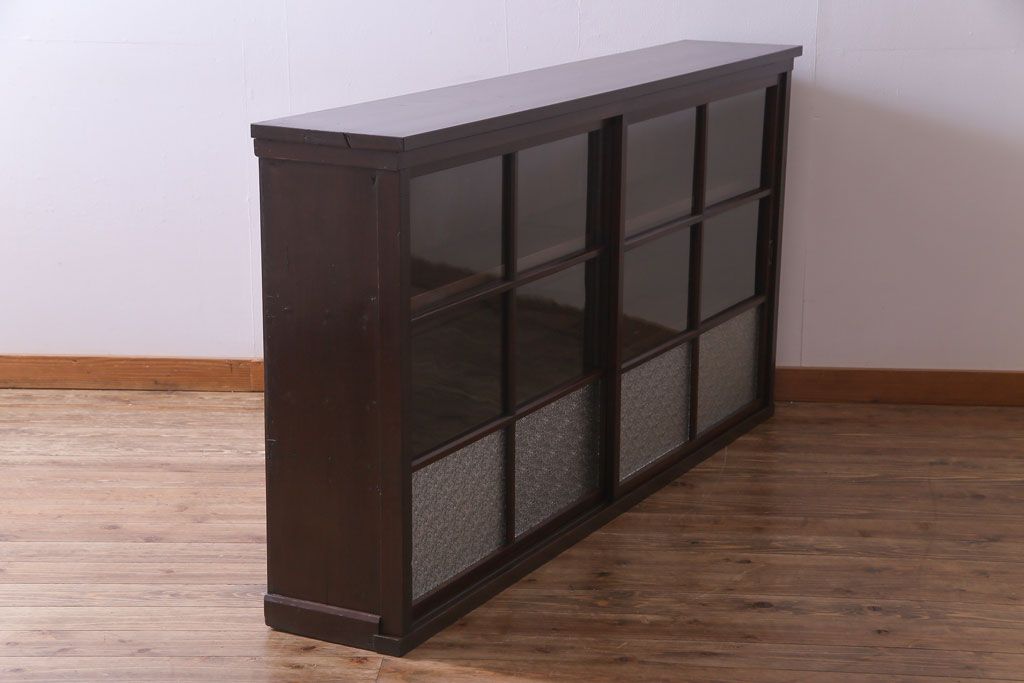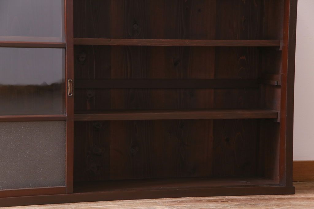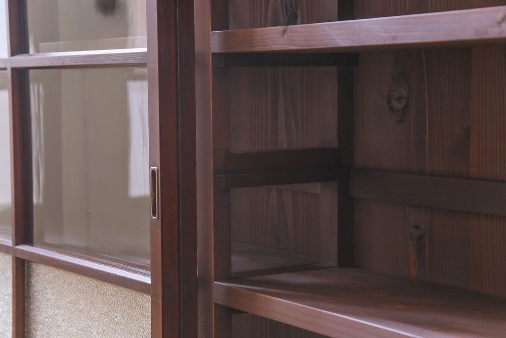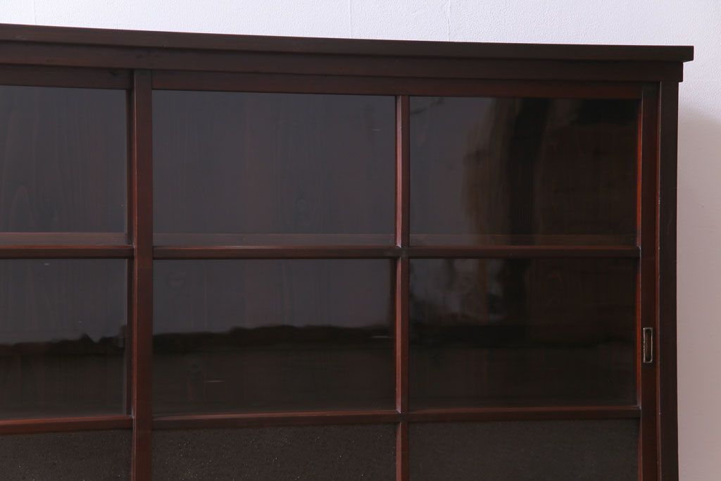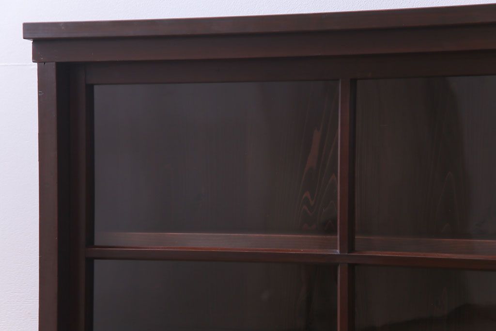 レトロ家具 和製アンティーク 大正昭和初期 ダイヤガラス レトロな佇まいが味わい深いガラス戸棚(収納棚、飾り棚、陳列棚)