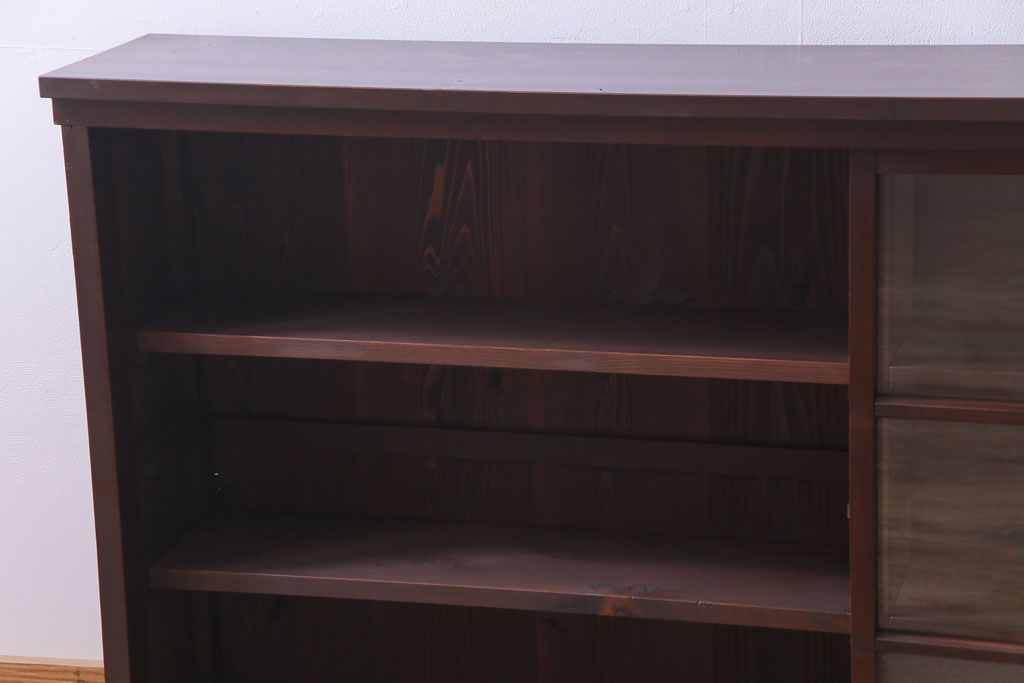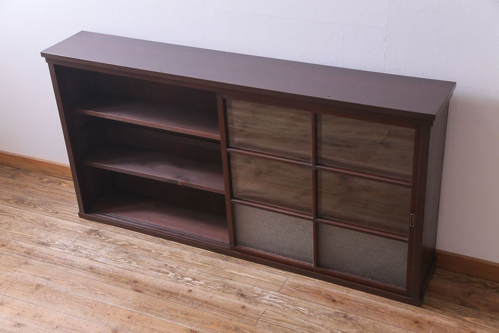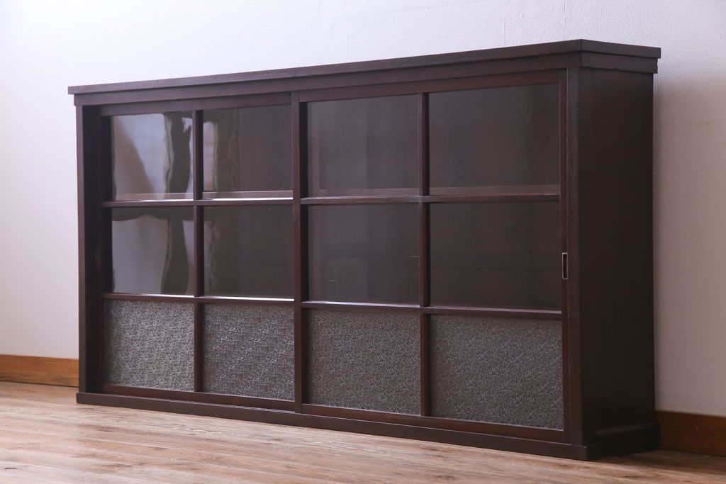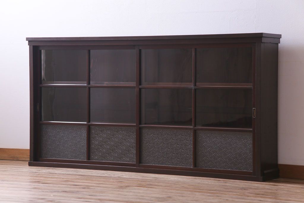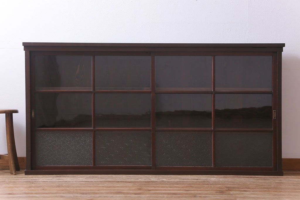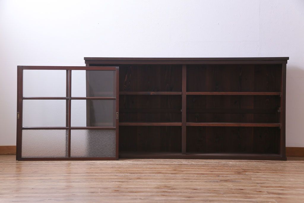 レトロ家具 和製アンティーク 大正昭和初期 ダイヤガラス レトロな佇まいが味わい深いガラス戸棚(収納棚、飾り棚、陳列棚)