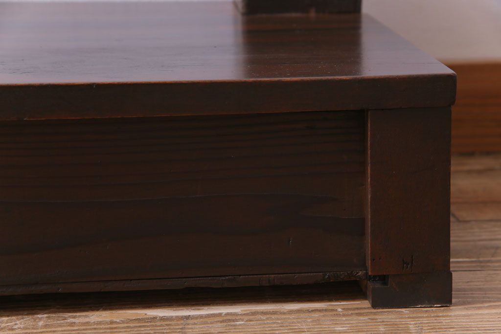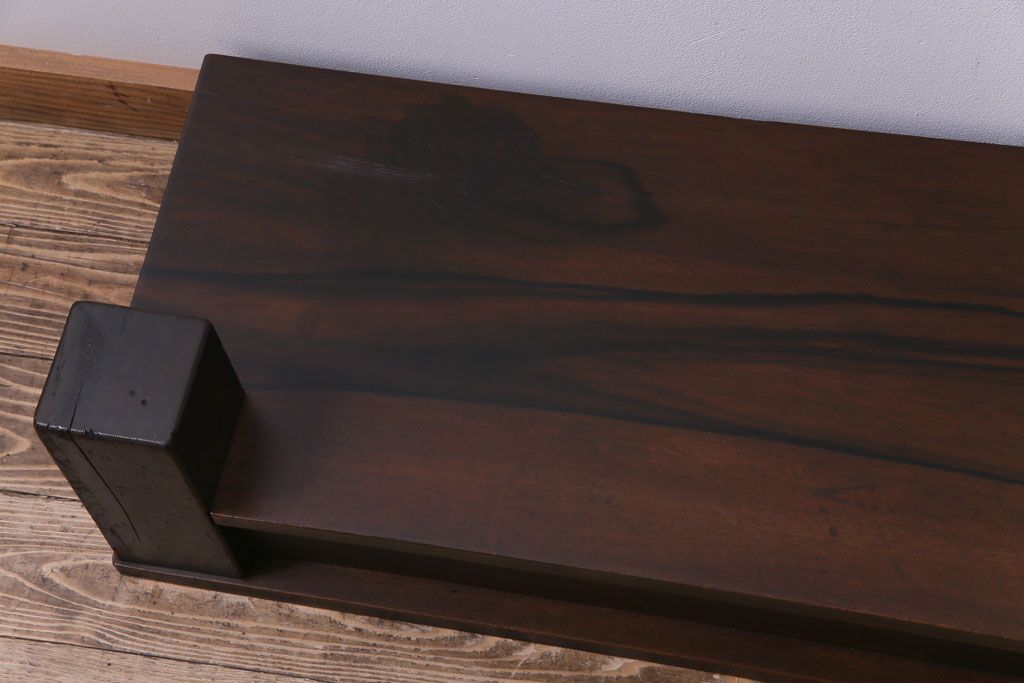 アンティーク雑貨 和製アンティーク 天板黒柿 墨を流したような特徴的な杢目が美しい大振りサイズの置き床(置床、ローボード、飾り台)