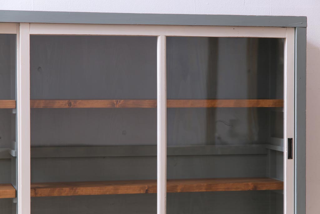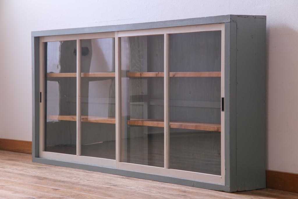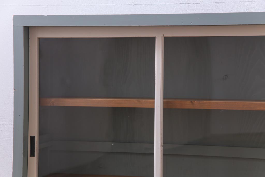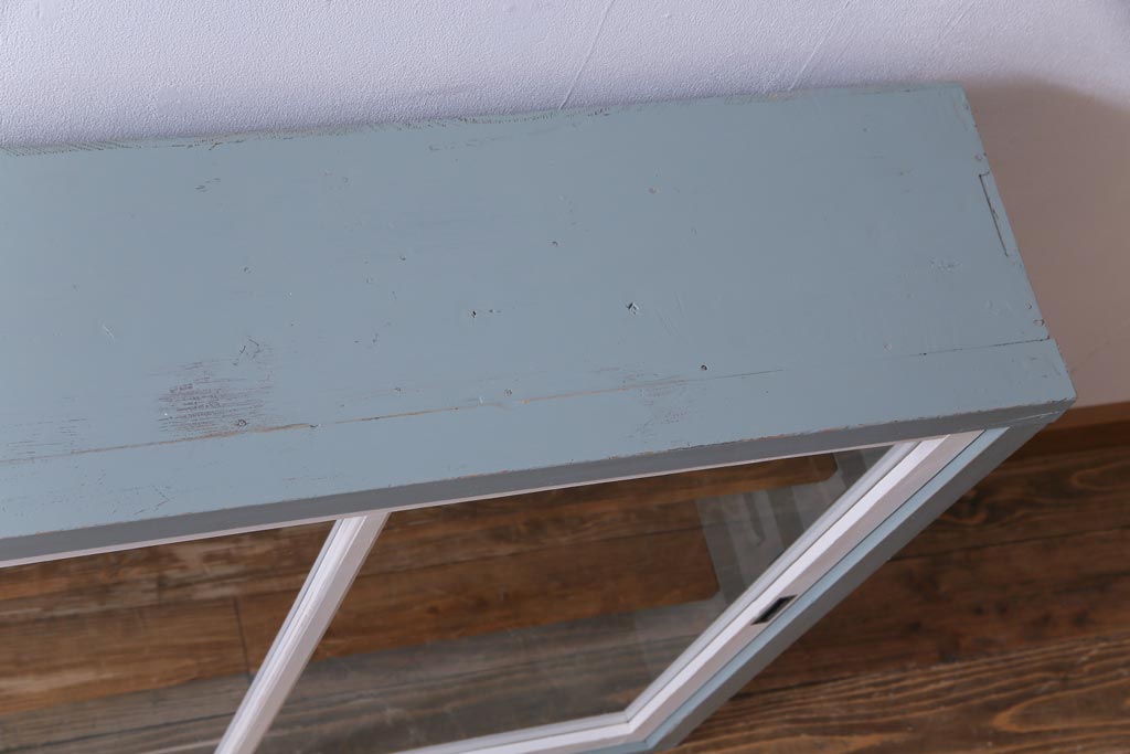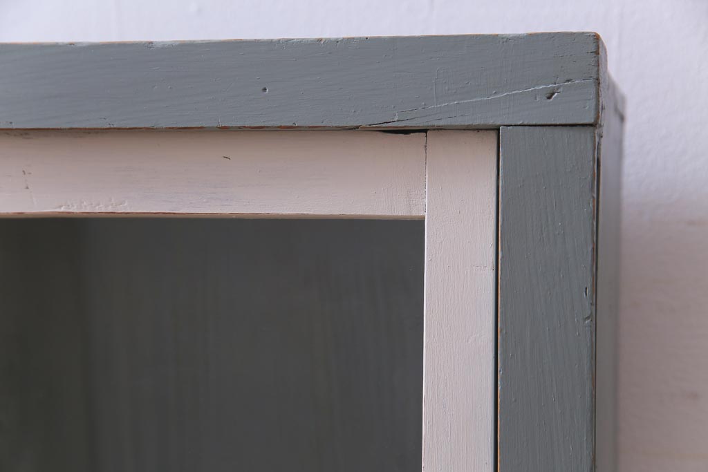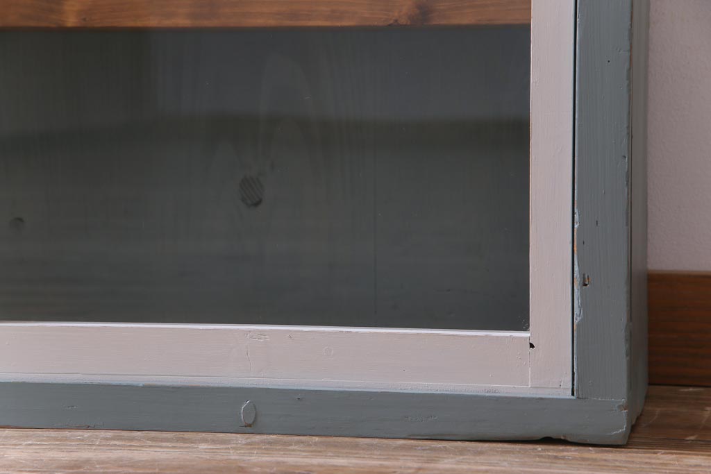 和製アンティーク ペイント家具 薄型 レトロシャビーな雰囲気がお洒落なガラス戸棚(収納棚、飾り棚)