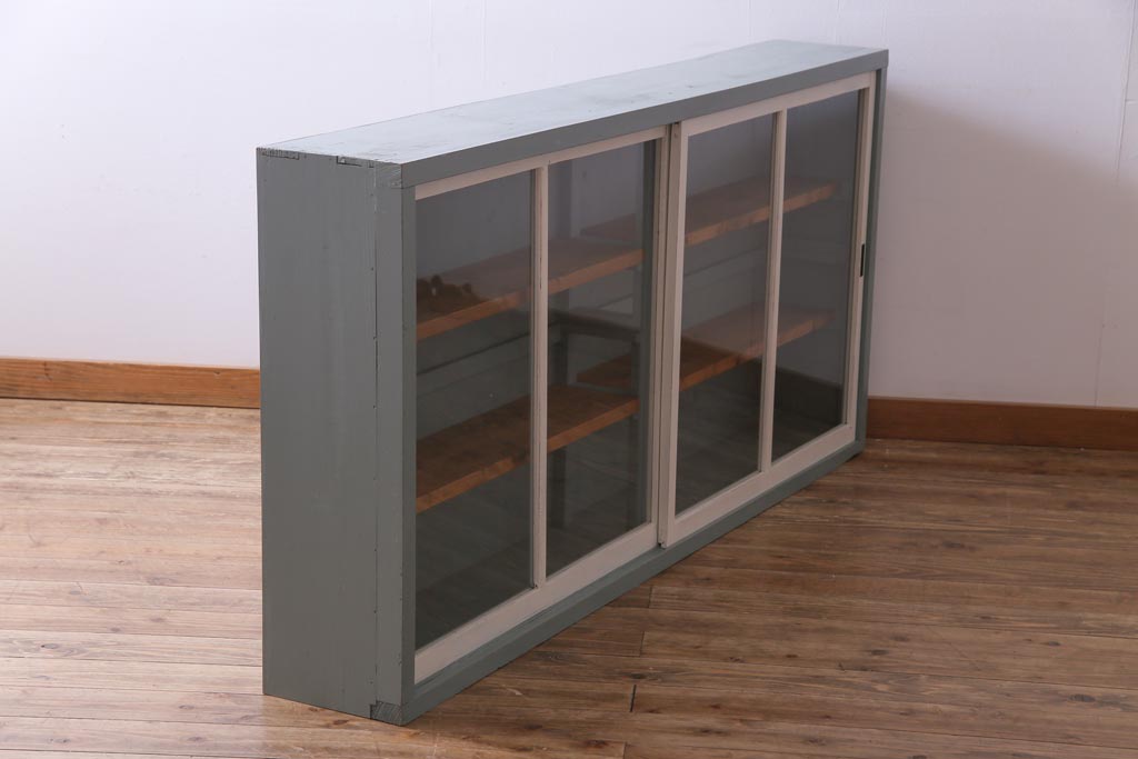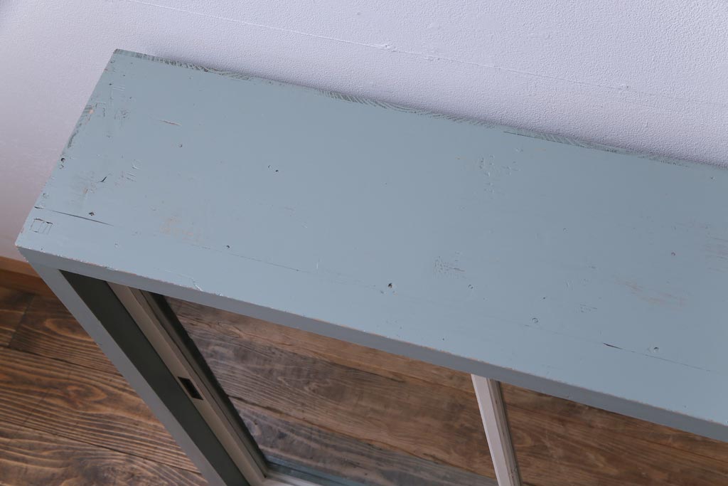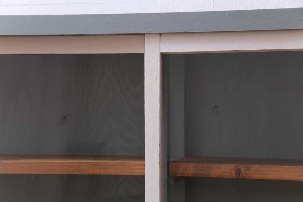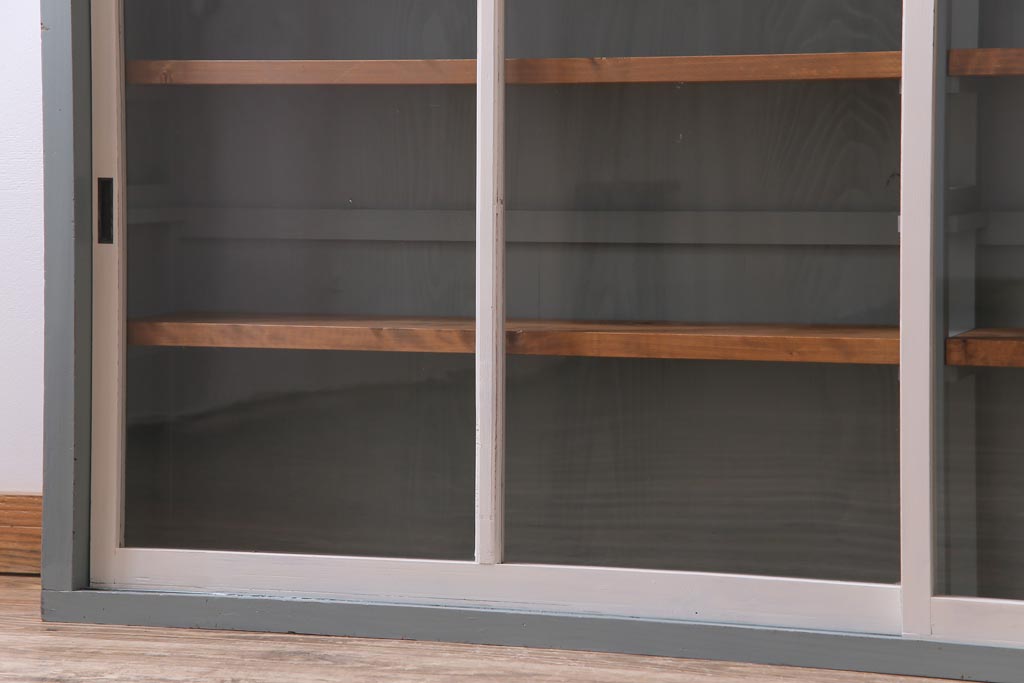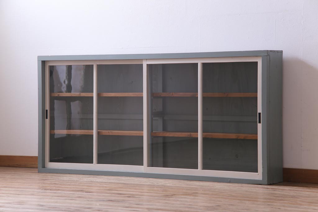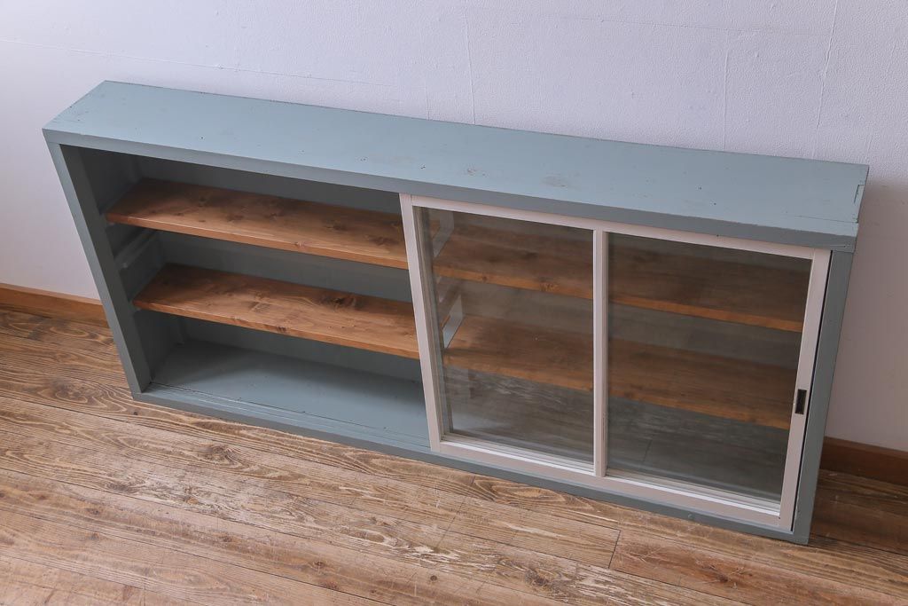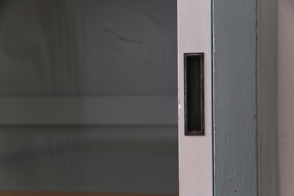 和製アンティーク ペイント家具 薄型 レトロシャビーな雰囲気がお洒落なガラス戸棚(収納棚、飾り棚)