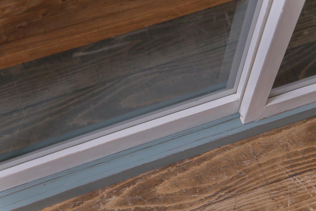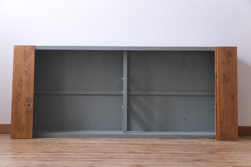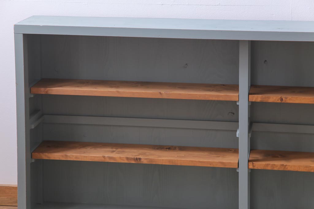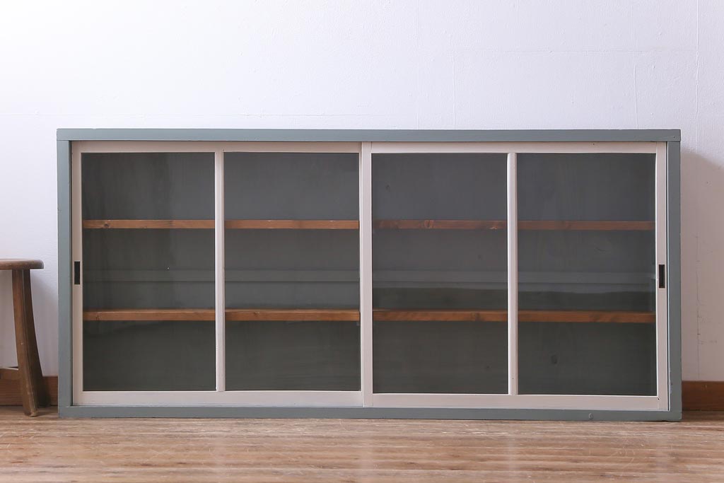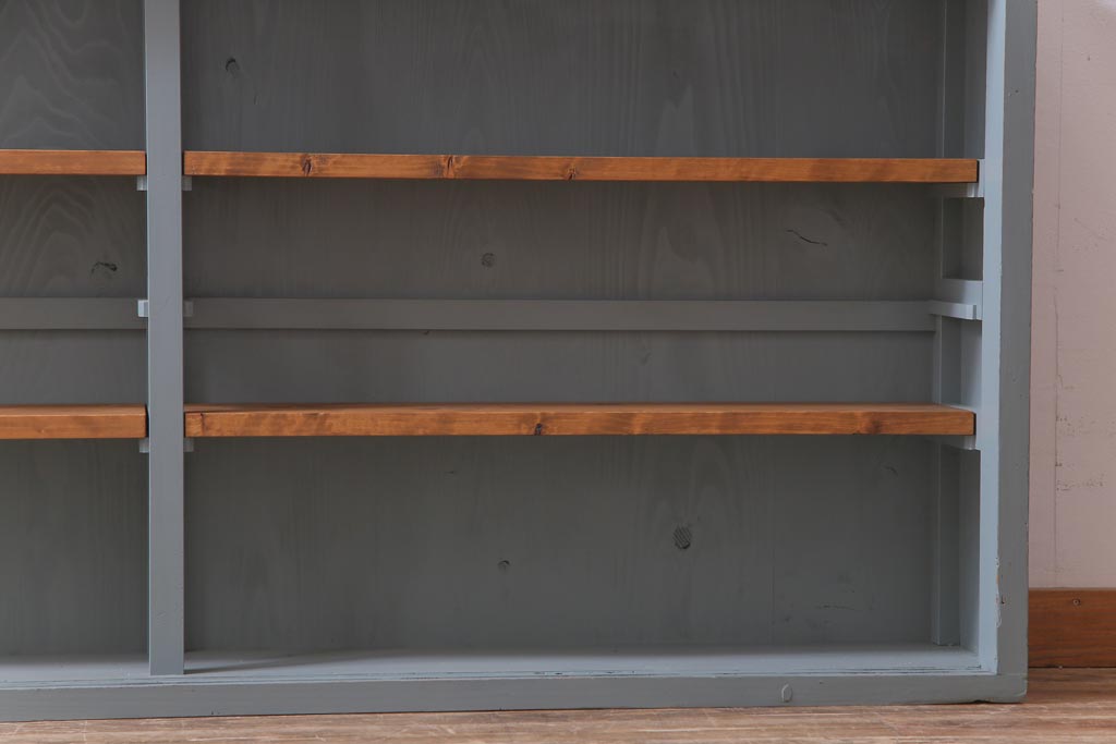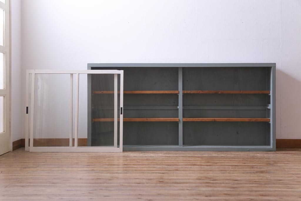 和製アンティーク ペイント家具 薄型 レトロシャビーな雰囲気がお洒落なガラス戸棚(収納棚、飾り棚)