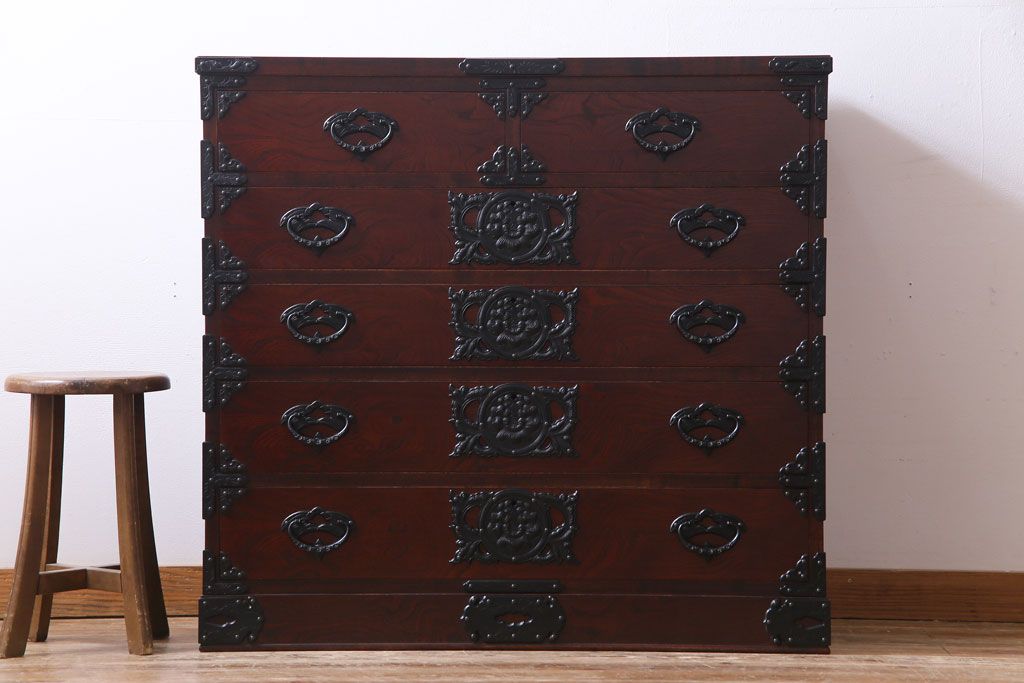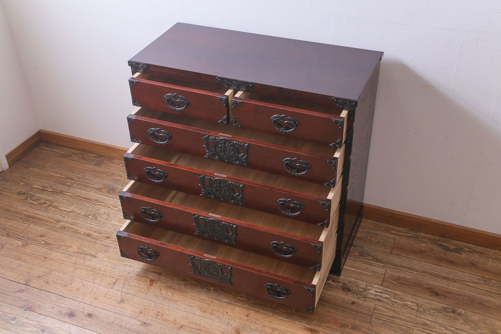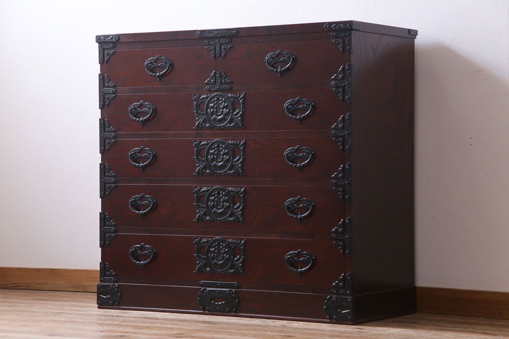 和箪笥 > 中古 岩谷堂箪笥 桜木家具店 野郎タンス5段100 重厚な雰囲気漂う衣装箪笥(整理箪笥、引き出し)(定価約45万円)