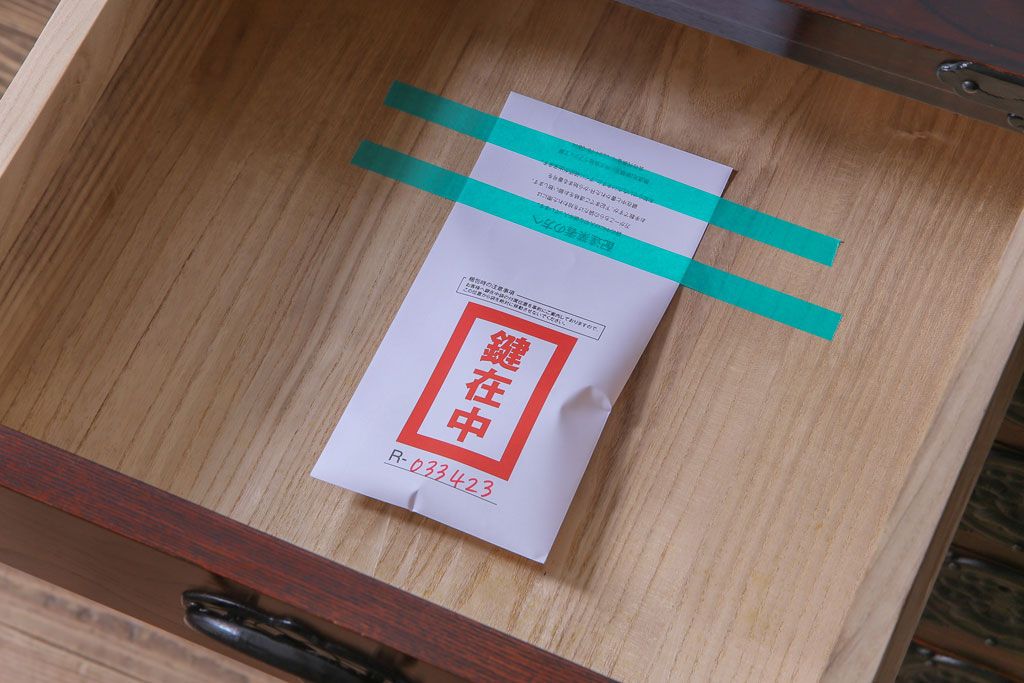 鍵は付属します。画像にありますように、袋に入れお付けします。スムーズに動くように調整していますが、あくまでも古いものや中古品ですので、長期の使用保証は出来かねます。ご購入後不具合が発生した場合は、当店でサポートさせていただきますので、お気軽にご相談くださいませ。