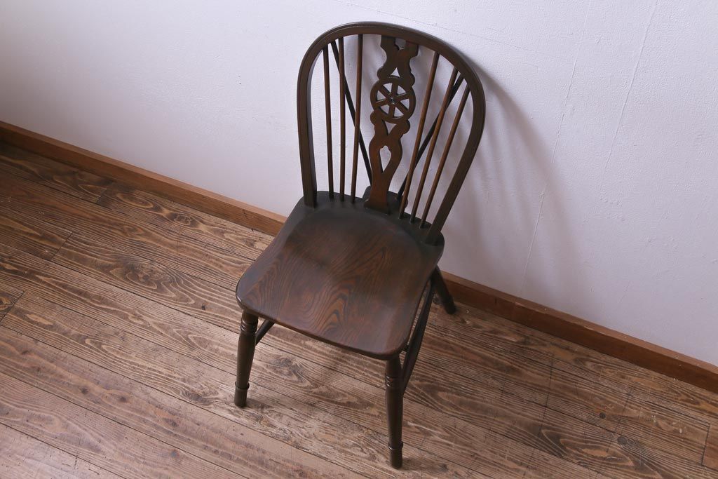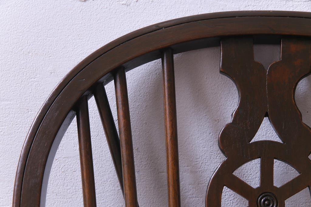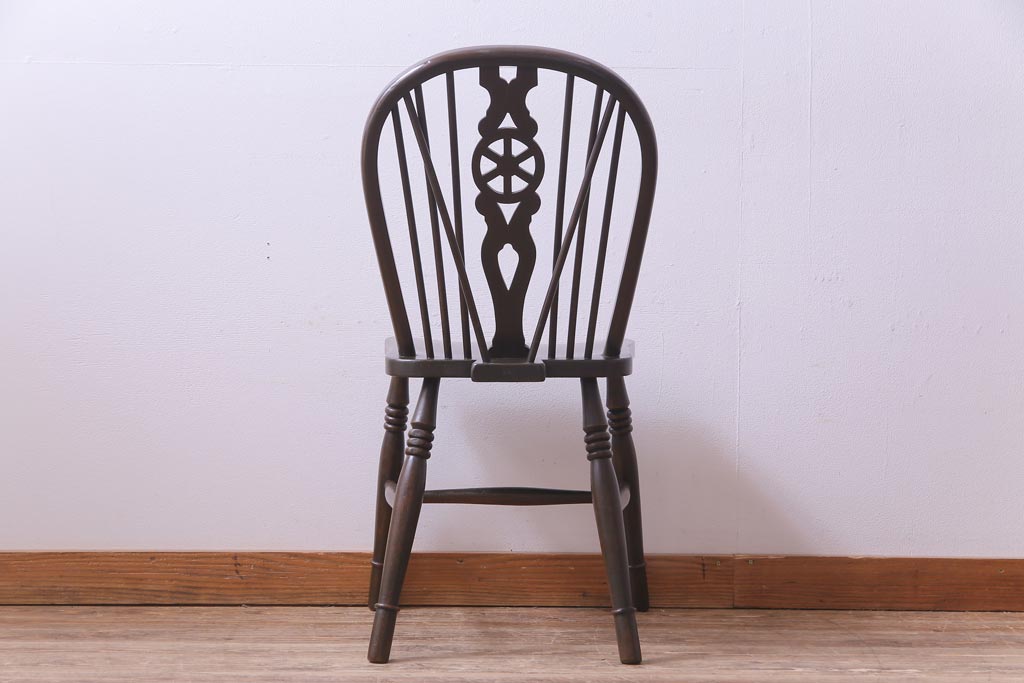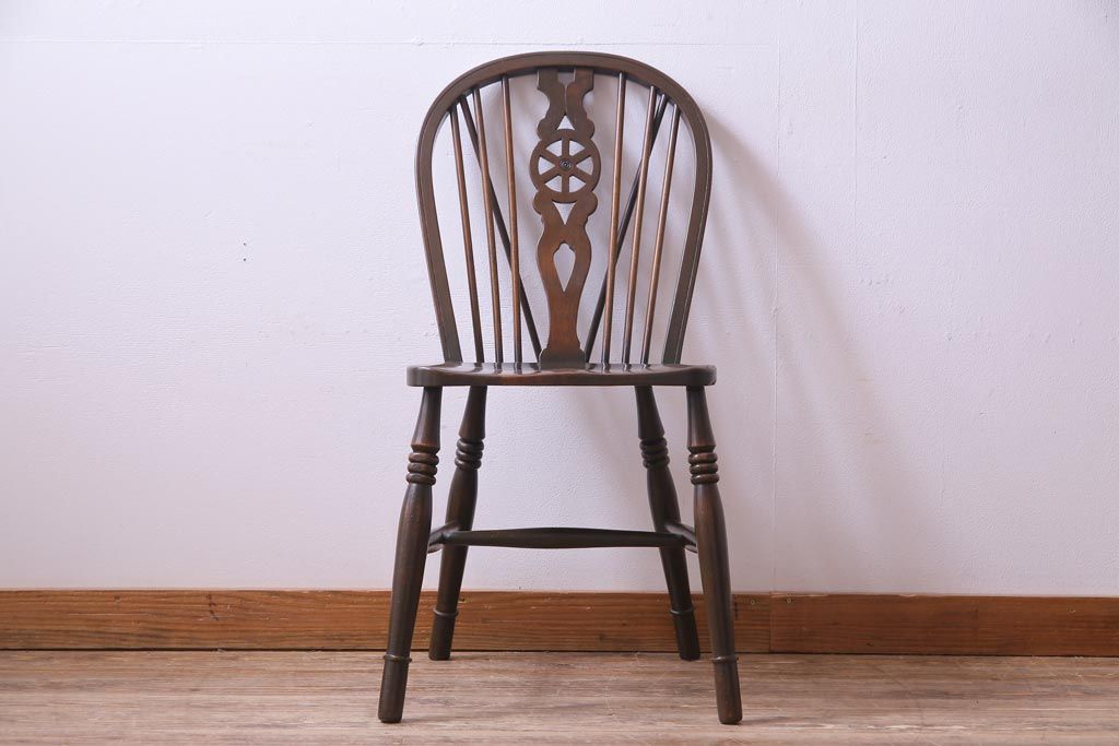 ヴィンテージ家具 イギリスビンテージ 美しい背もたれが魅力的なホイールバックチェア(ウィンザーチェア、ダイニングチェア、ウインザーチェア)