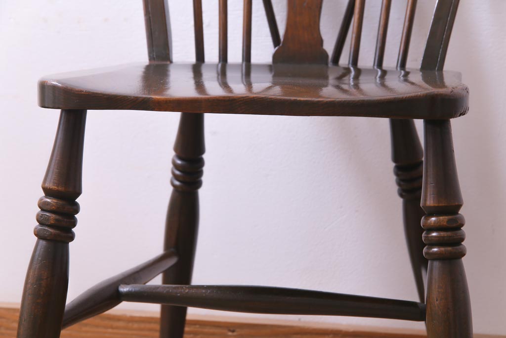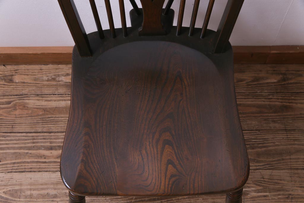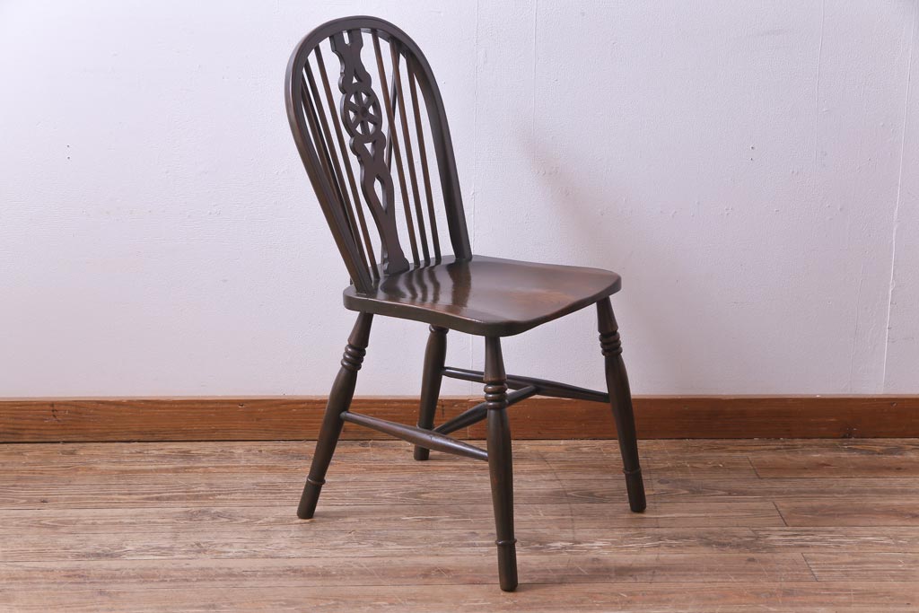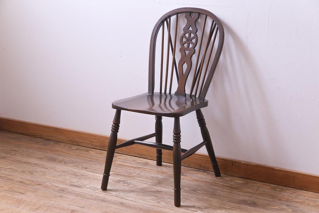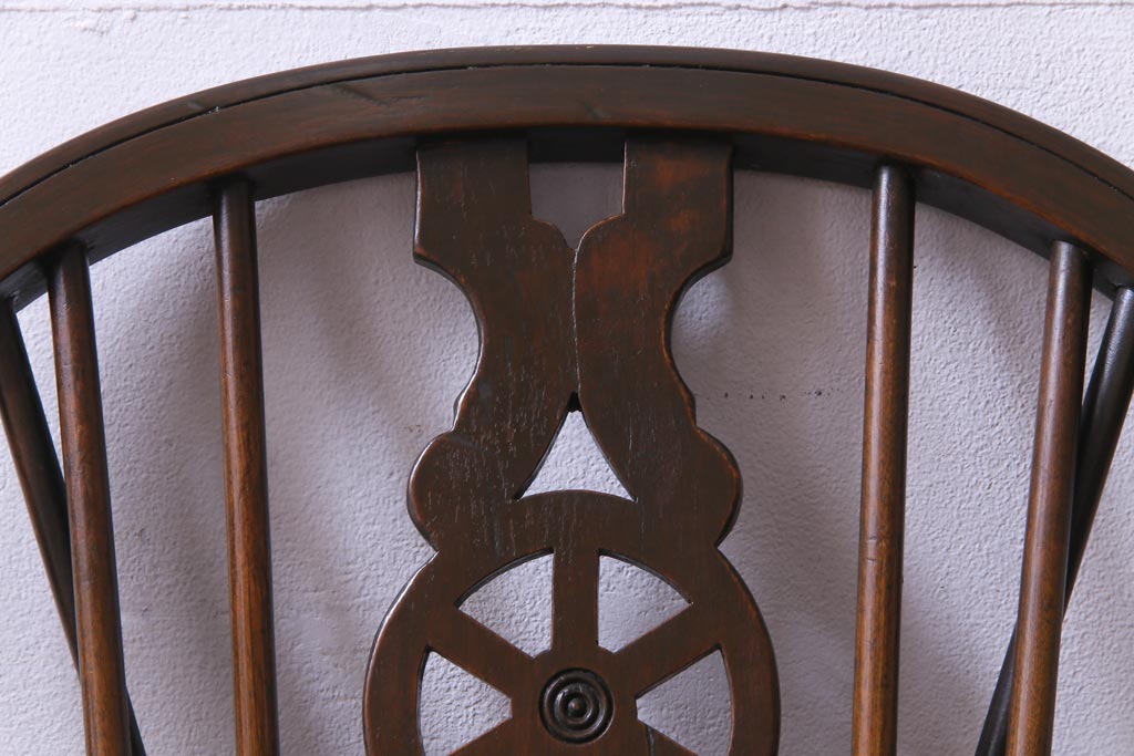 ヴィンテージ家具 イギリスビンテージ 美しい背もたれが魅力的なホイールバックチェア(ウィンザーチェア、ダイニングチェア、ウインザーチェア)