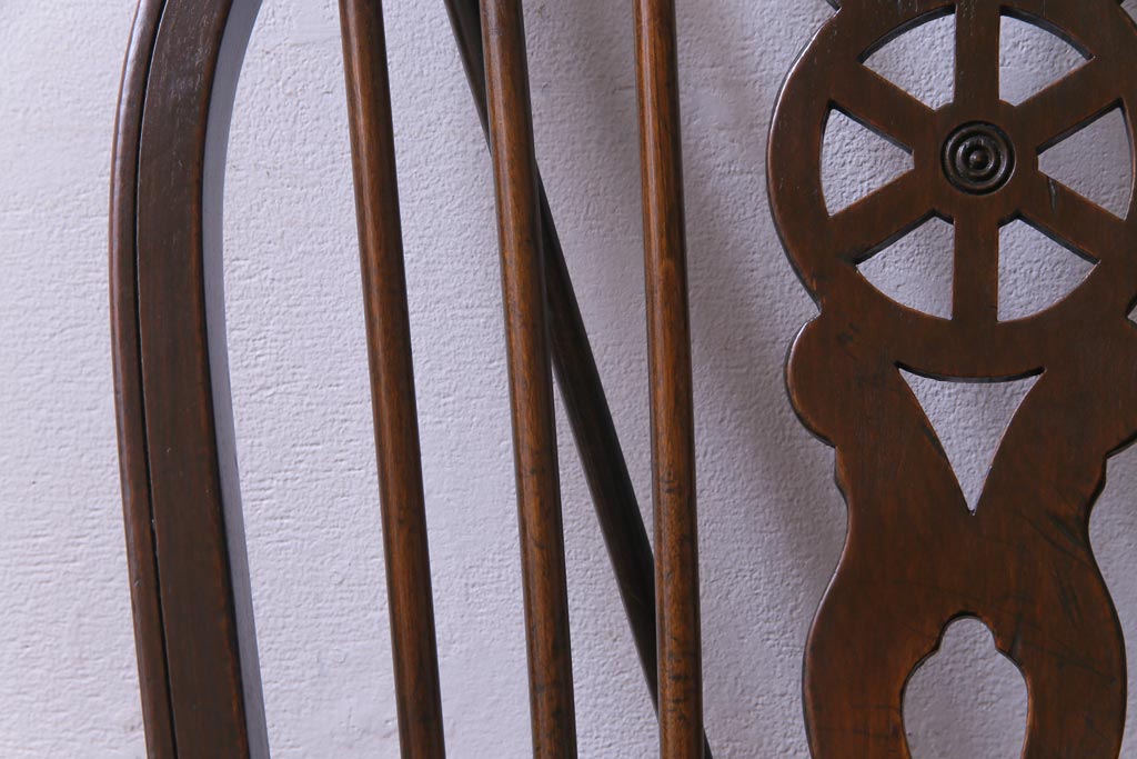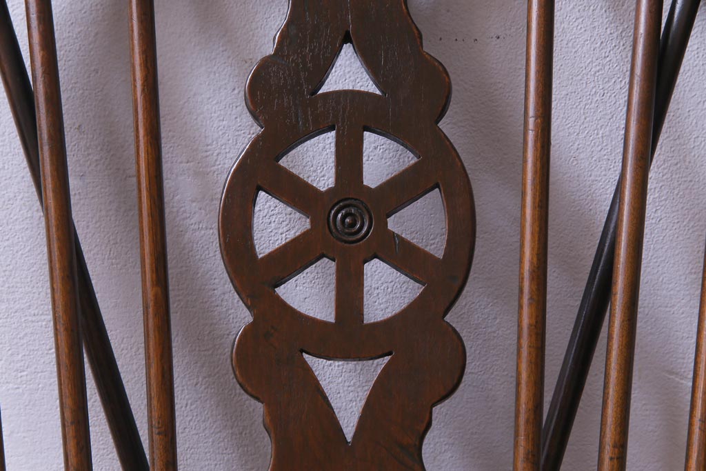 ラフジュ工房> 椅子・ベンチ> ダイニングチェア > ヴィンテージ家具 イギリスビンテージ 美しい背もたれが魅力的なホイールバックチェア(ウィンザーチェア、ダイニングチェア、ウインザーチェア)