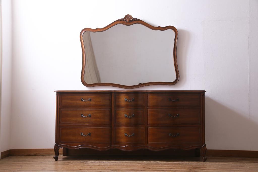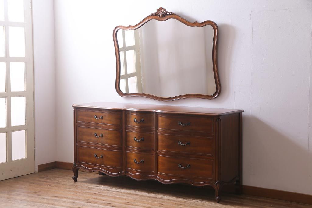 アンティーク雑貨 中古 DREXEL HERITAGE(ドレクセルヘリテイジ) Touraine(ツーレイン) 優美なデザインが品格漂う壁掛けミラー(鏡)(定価約13万円)