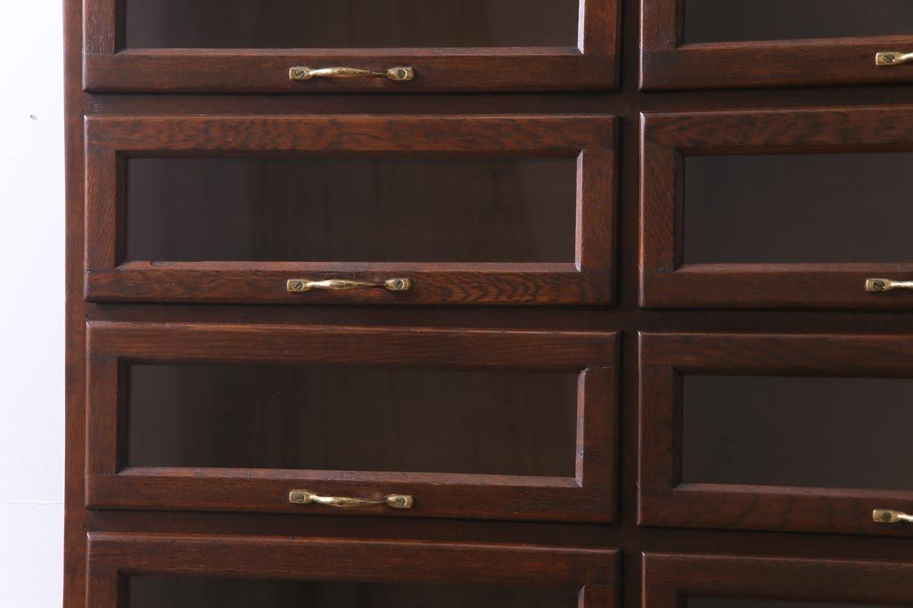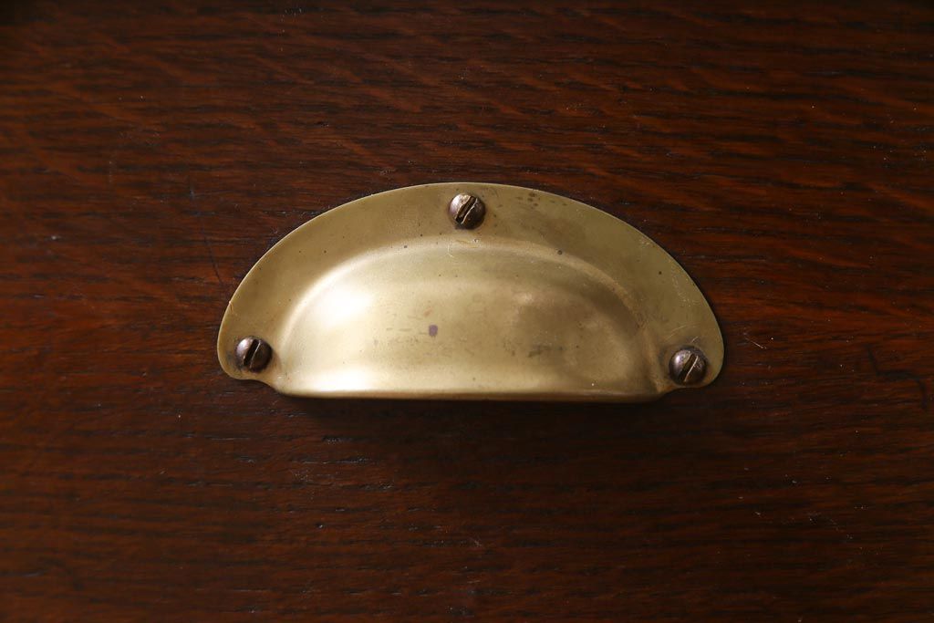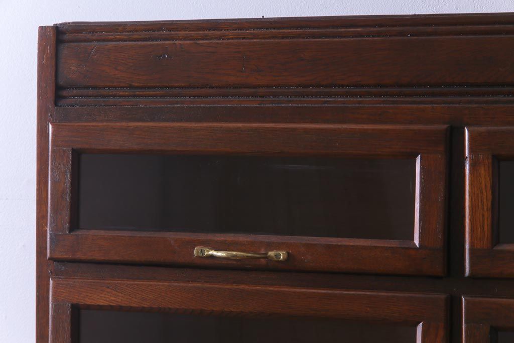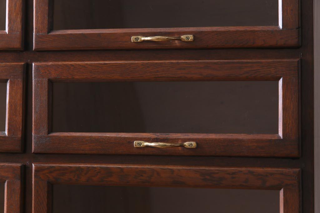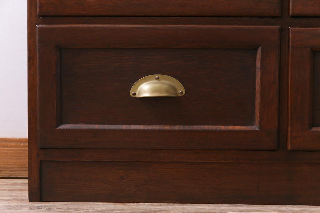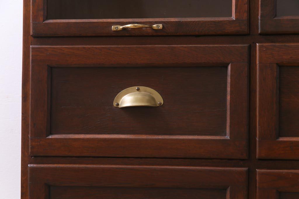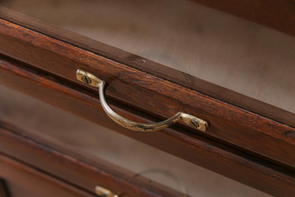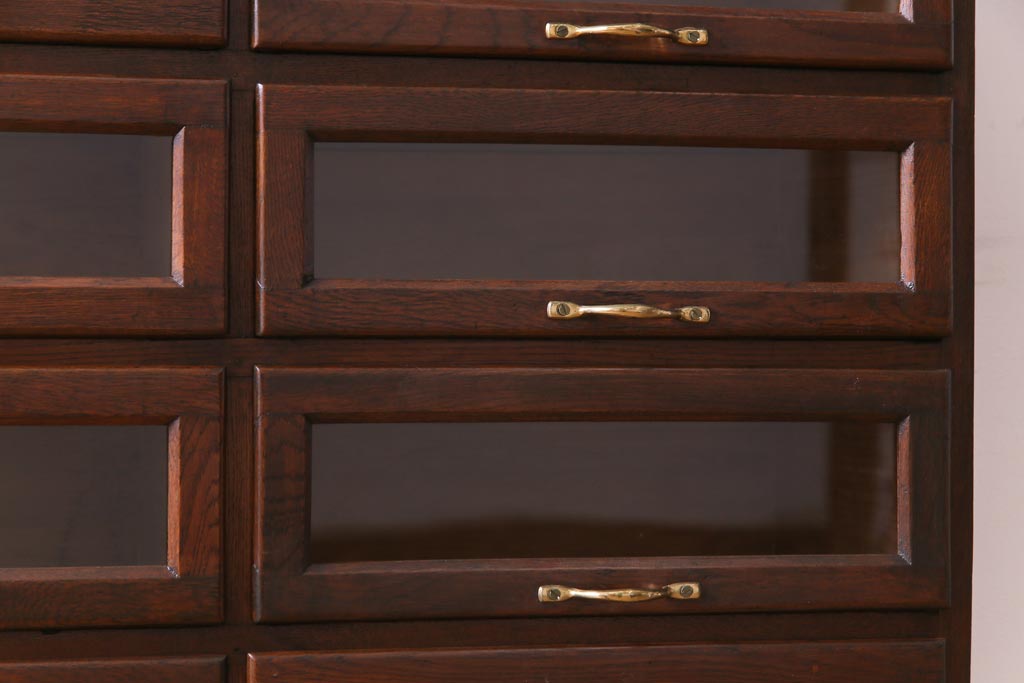 ビンテージ家具 イギリスヴィンテージ オーク材 エレガントな佇まいが魅力の薄型シャツケース(ガラスケース、ショーケース、チェスト)(1)
