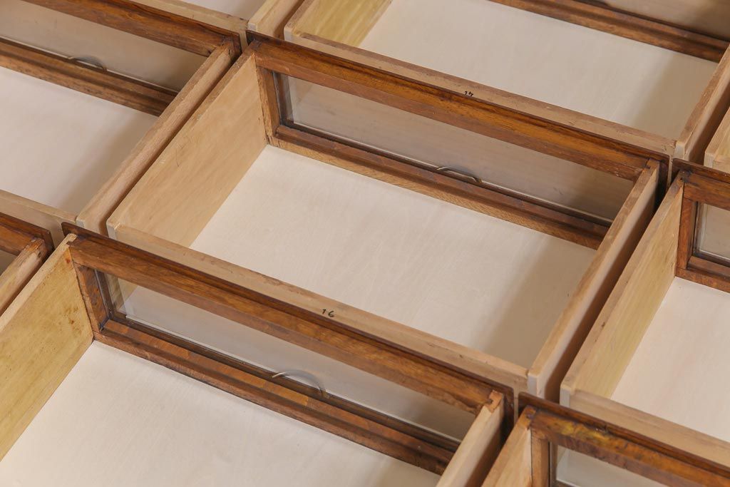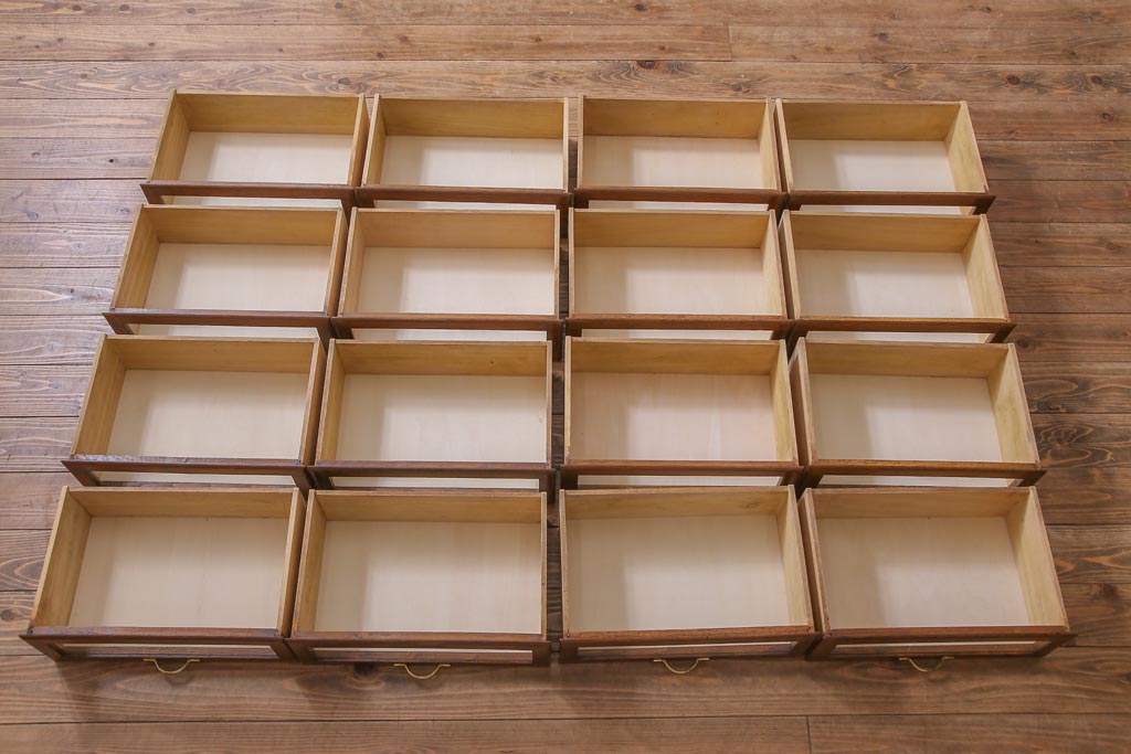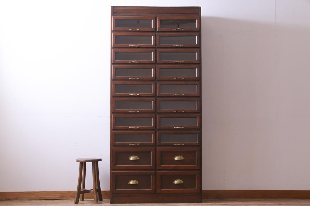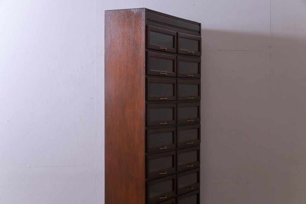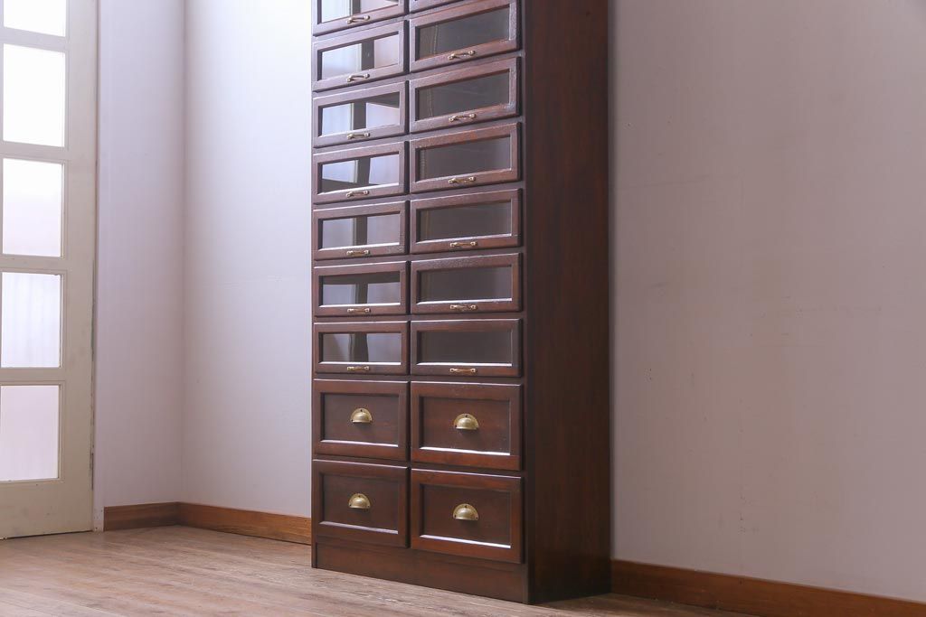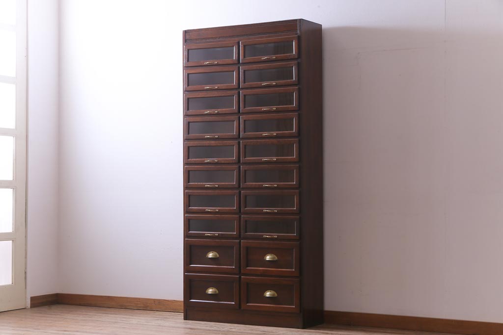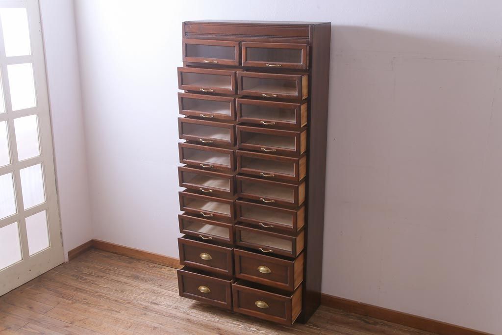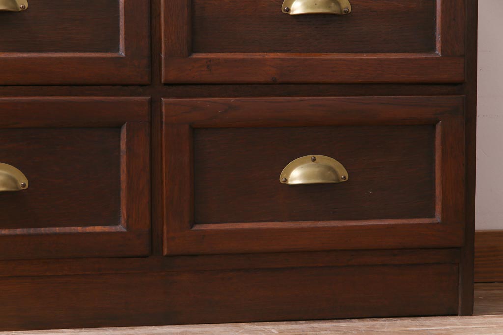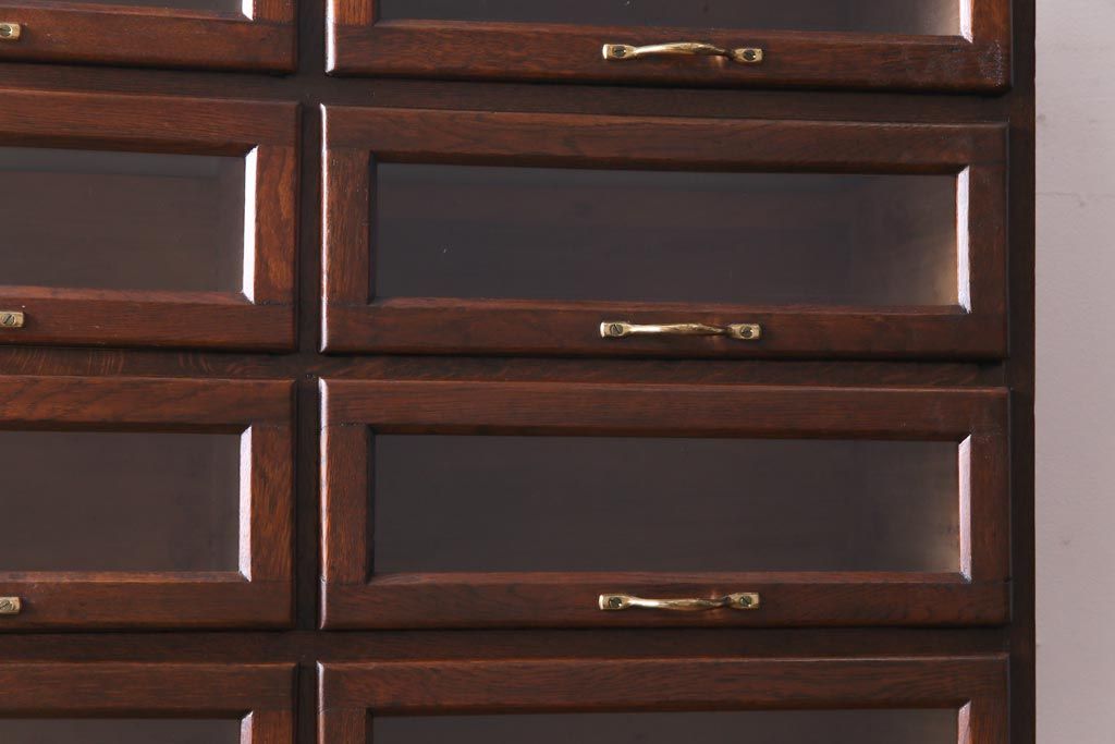 ビンテージ家具 イギリスヴィンテージ オーク材 エレガントな佇まいが魅力の薄型シャツケース(ガラスケース、ショーケース、チェスト)(1)