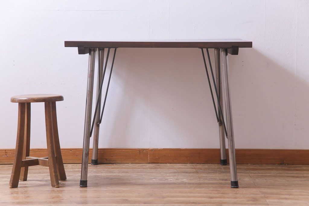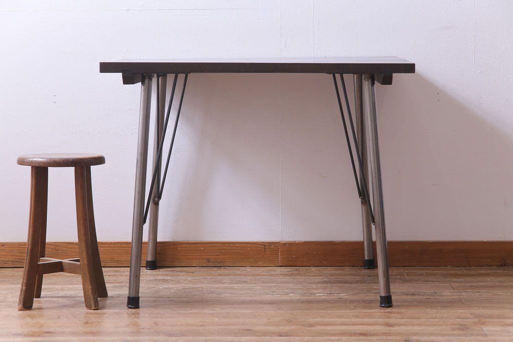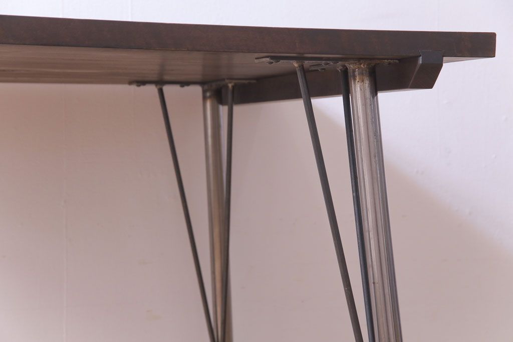 リメイク家具 味わい深い古材を組合せたアイアンテーブル(作業台、サイドテーブル)