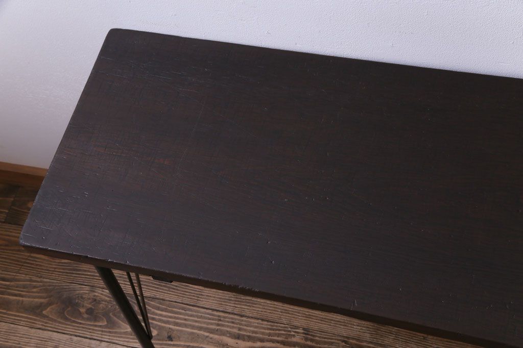 和製アンティーク 朴の木一枚板 明治大正期の古い裁ち板をリメイクしたアイアンテーブル(作業台、鉄脚)です。