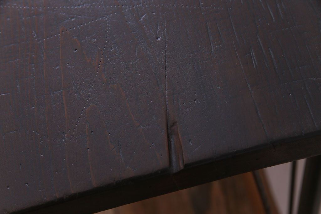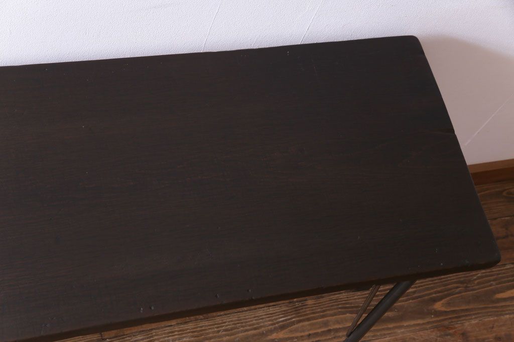 和製アンティーク 朴の木一枚板 明治大正期の古い裁ち板をリメイクしたアイアンテーブル(作業台、鉄脚)