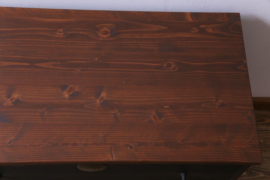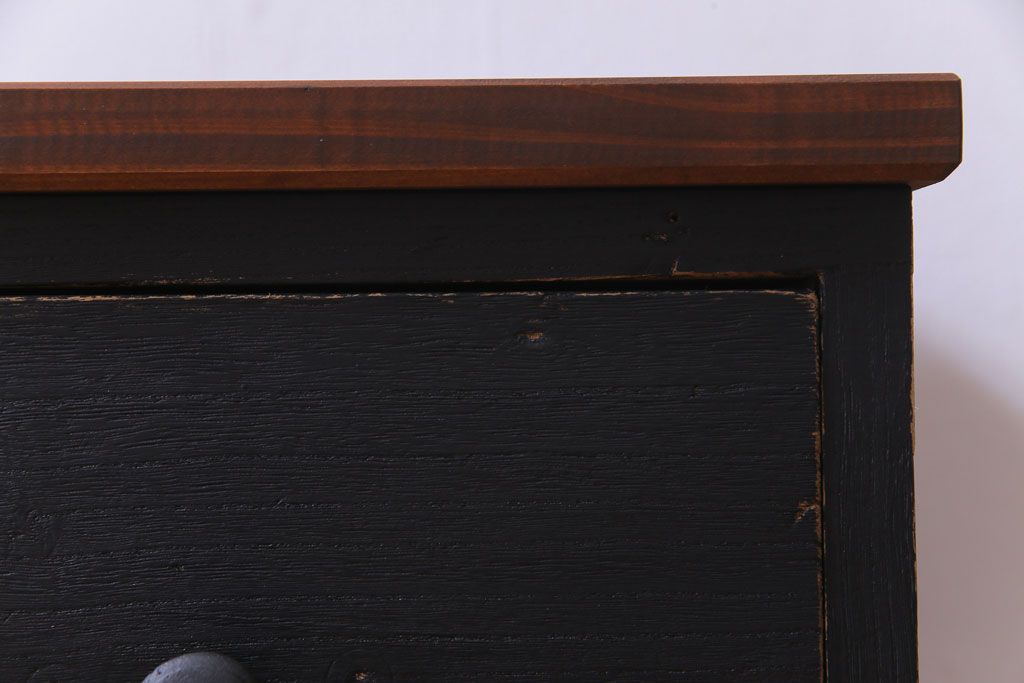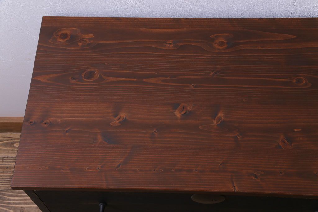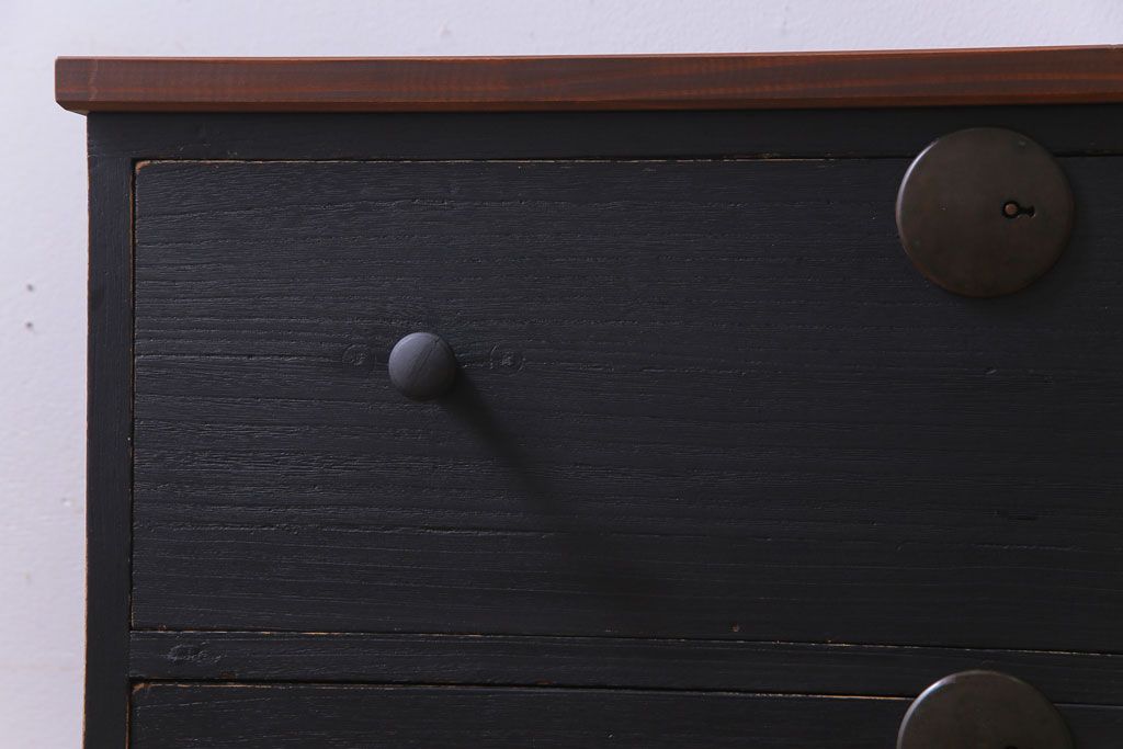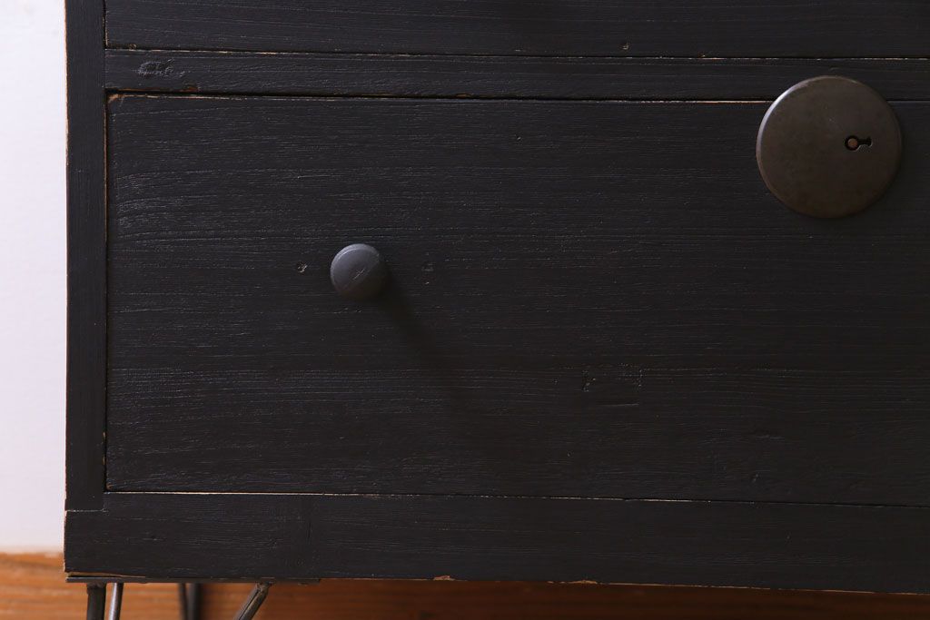 和箪笥 > リメイク家具 大正期 ペイント 趣あふれる佇まいが魅力の鉄脚付き時代箪笥ローボード(チェスト、衣装箪笥、テレビボード)