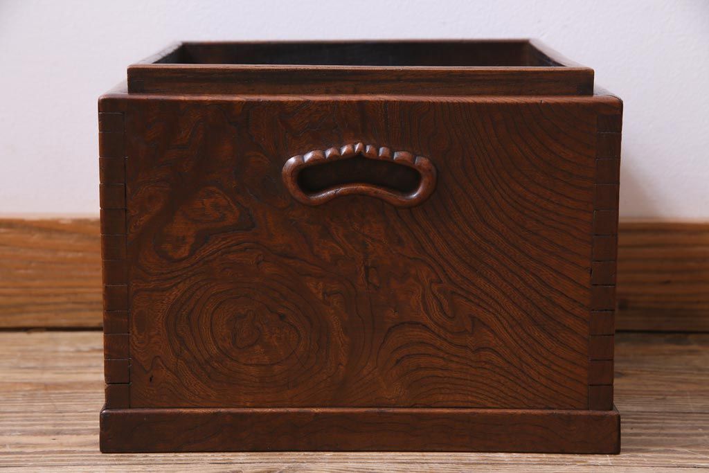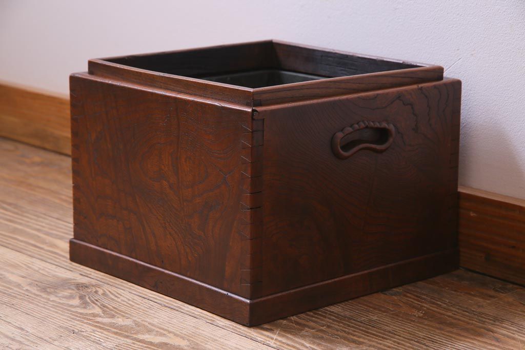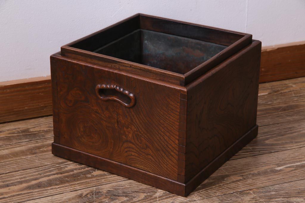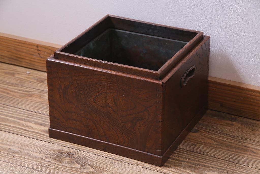 アンティーク雑貨 和製アンティーク ケヤキ玉杢材 和の風情を堪能する角火鉢(手あぶり、箱火鉢)