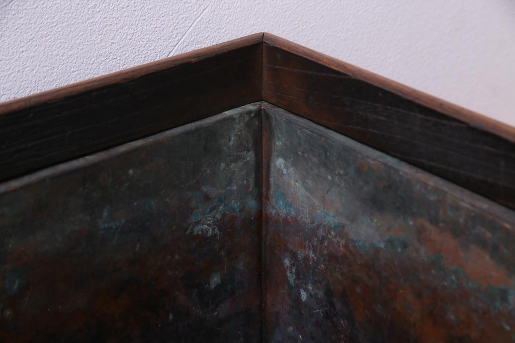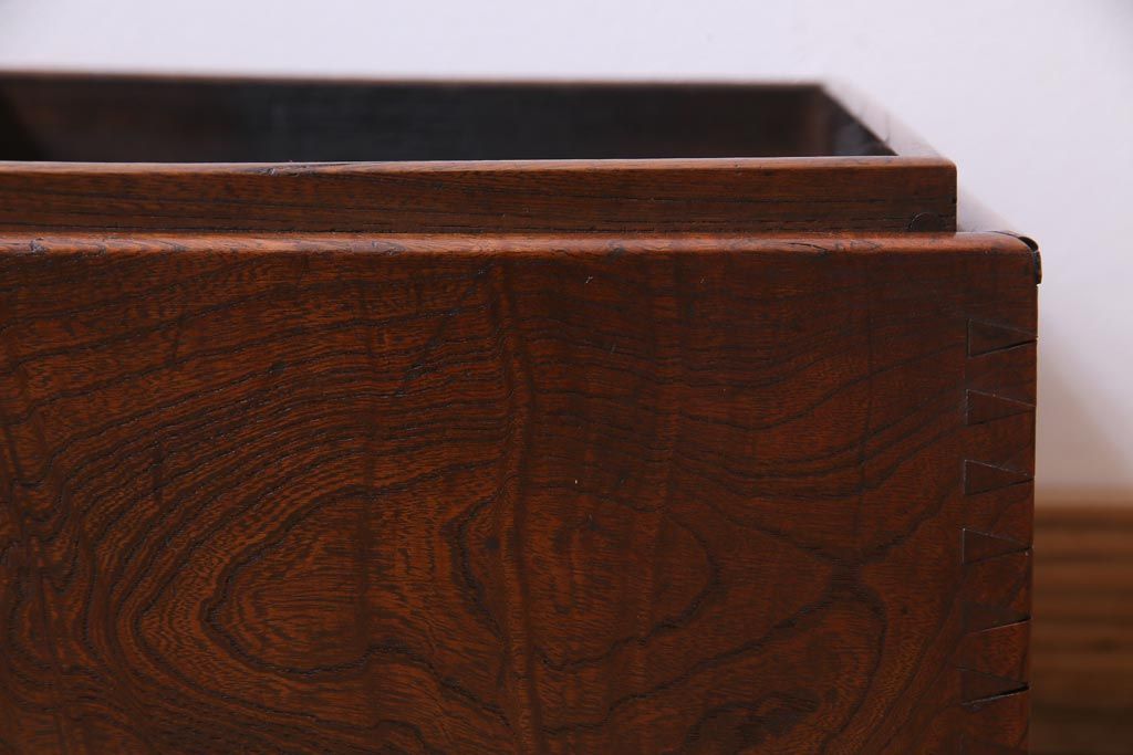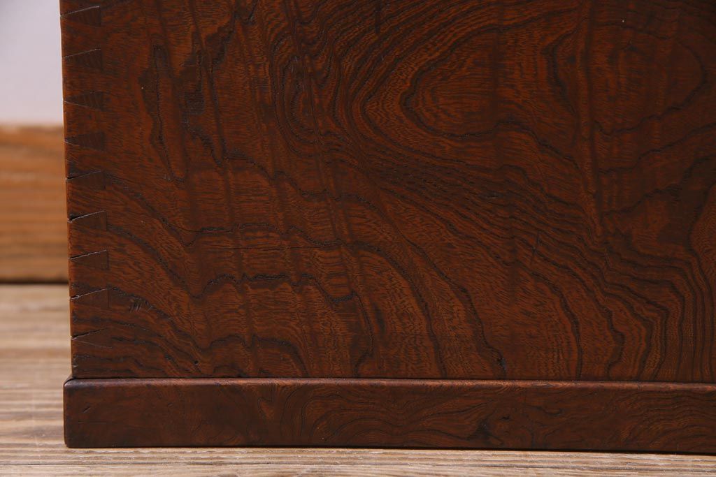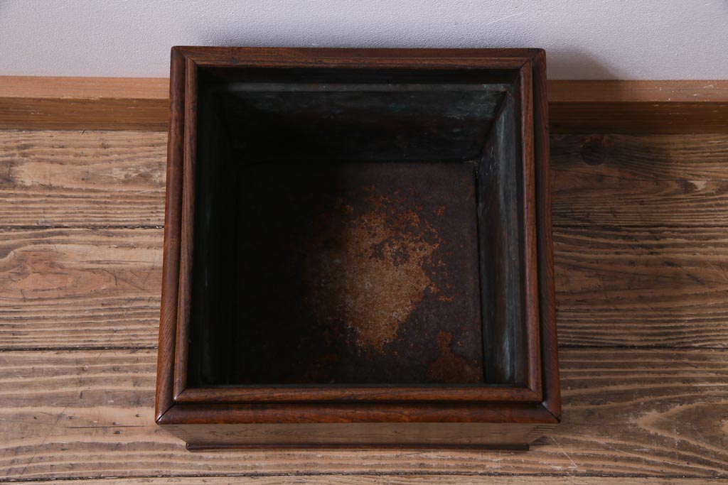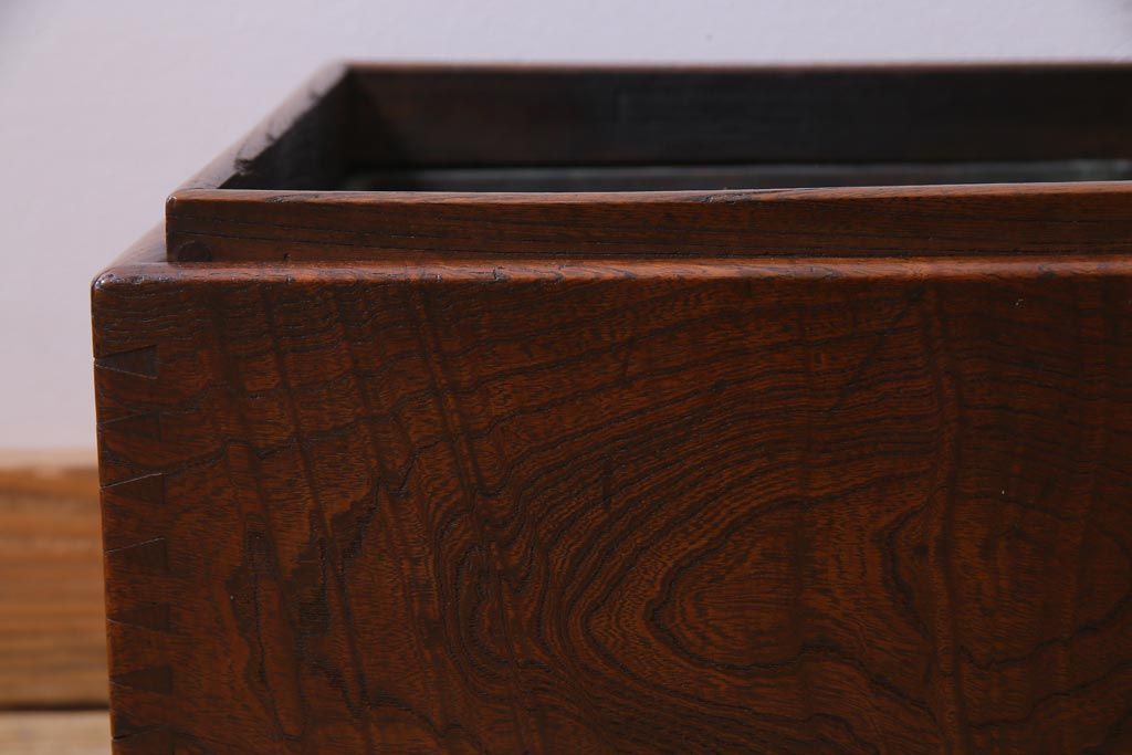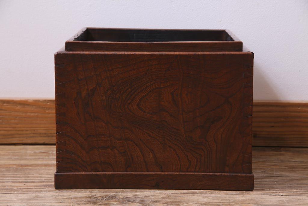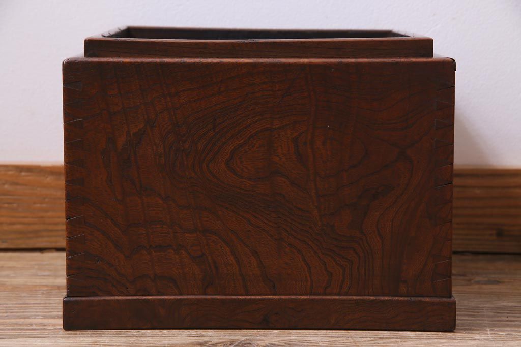火鉢> 木製火鉢 > アンティーク雑貨 和製アンティーク ケヤキ玉杢材 和の風情を堪能する角火鉢(手あぶり、箱火鉢)