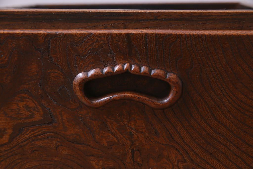 和製アンティーク ケヤキ玉杢材 和の風情を堪能する角火鉢(手あぶり、箱火鉢)です。