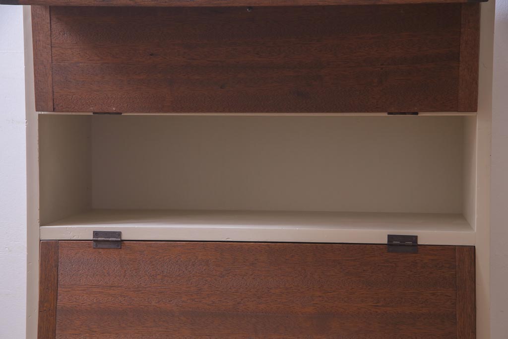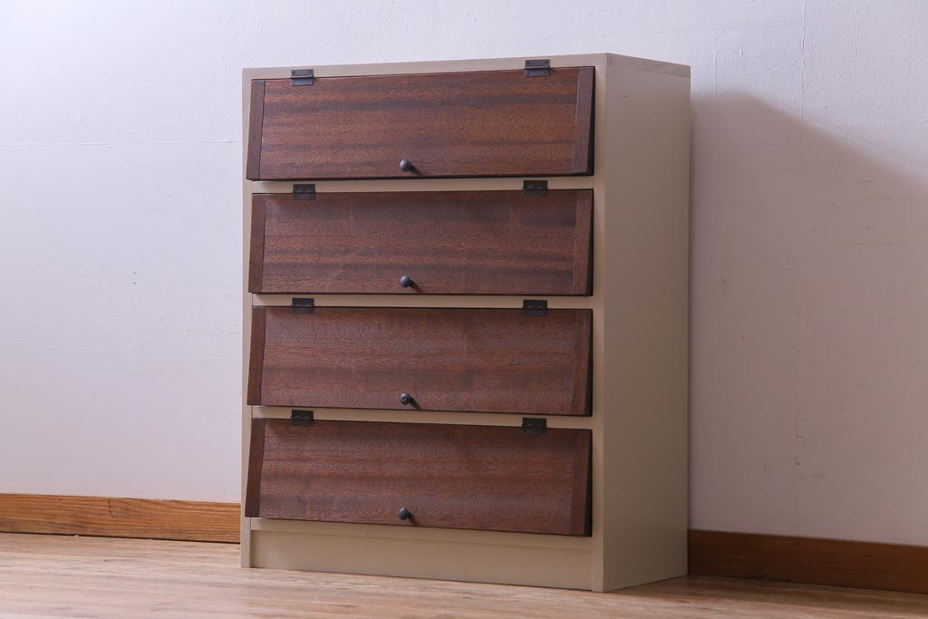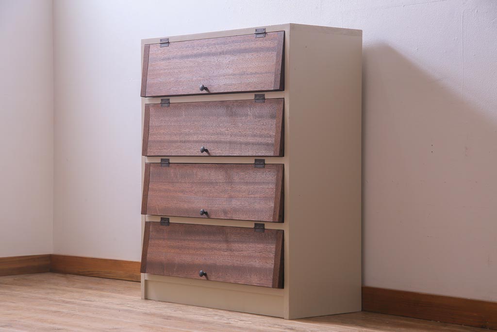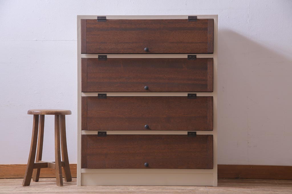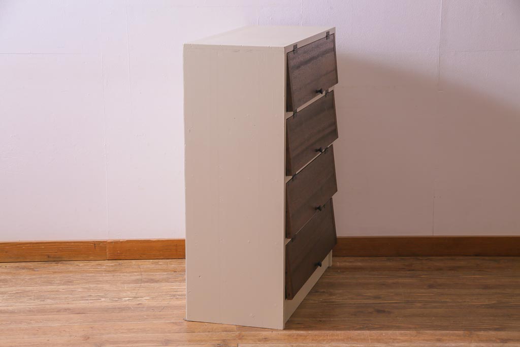 リメイク家具 ペイント 落ち着いた色味が温かみ感じるパタパタ扉の収納棚(4段タイプ)(戸棚、下駄箱)