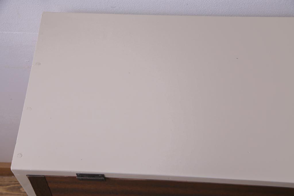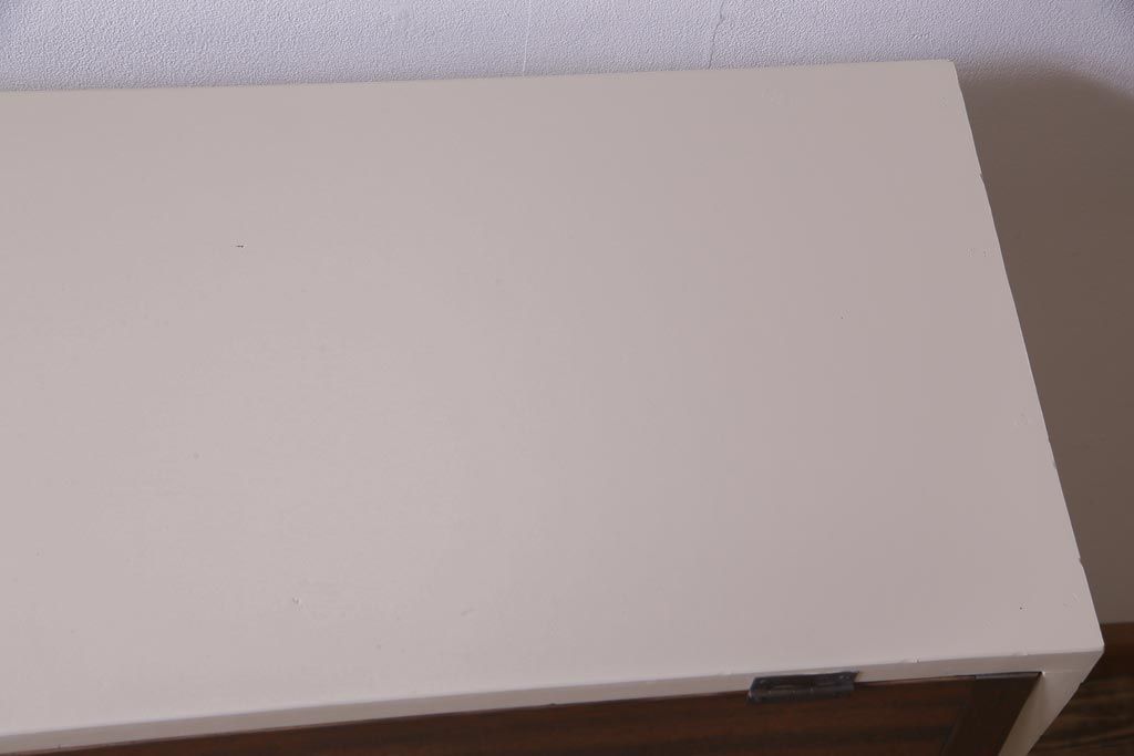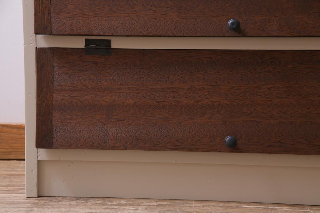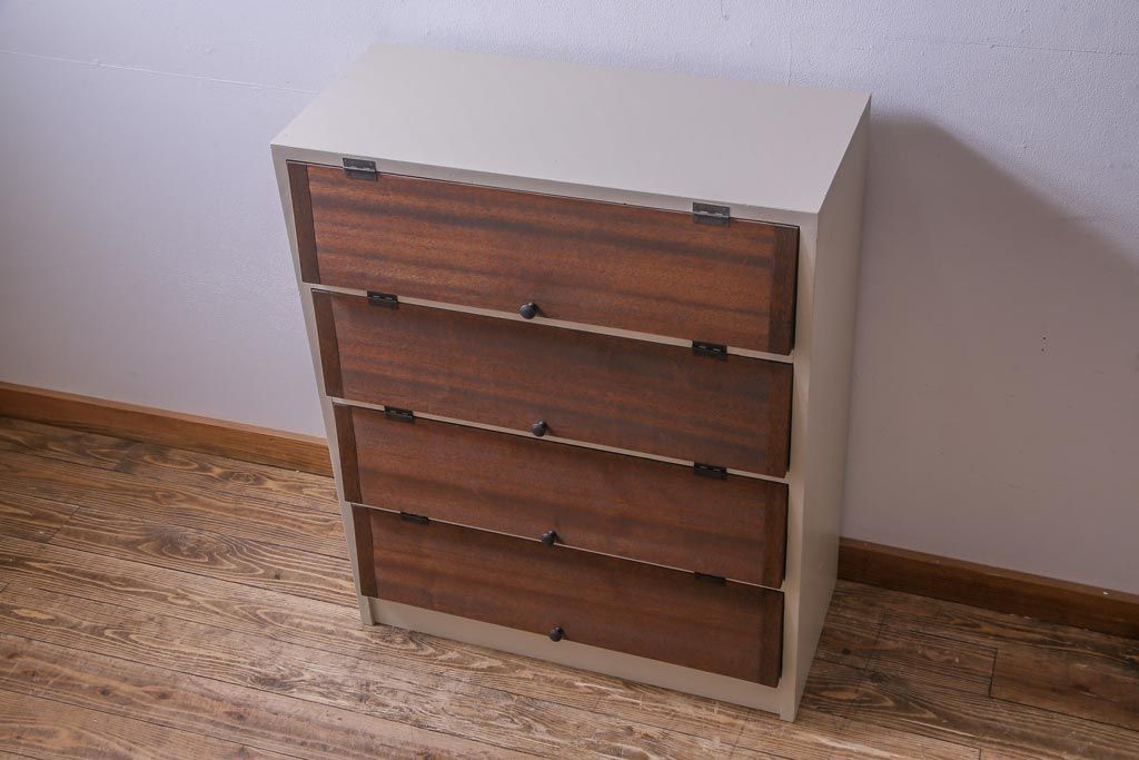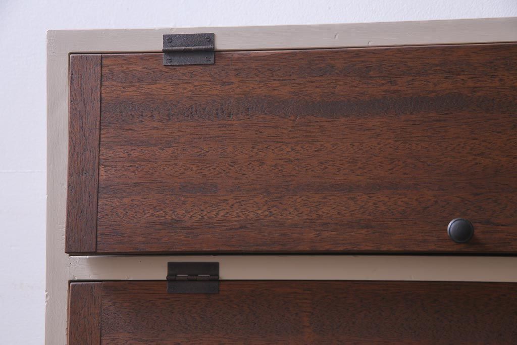 リメイク家具 ペイント 落ち着いた色味が温かみ感じるパタパタ扉の収納棚(4段タイプ)(戸棚、下駄箱)
