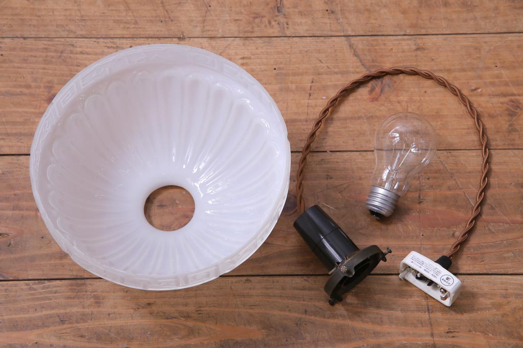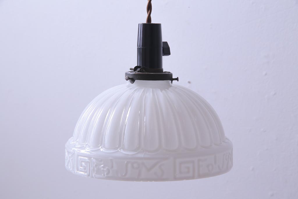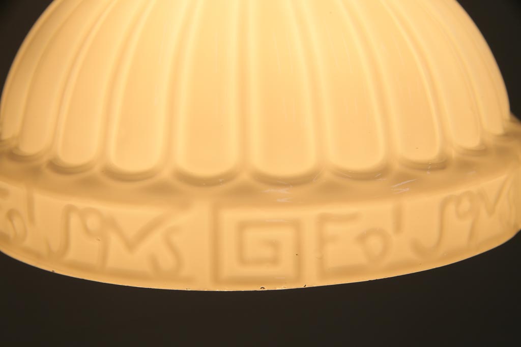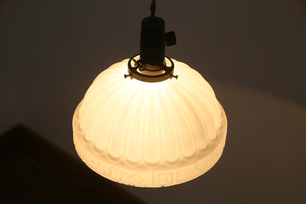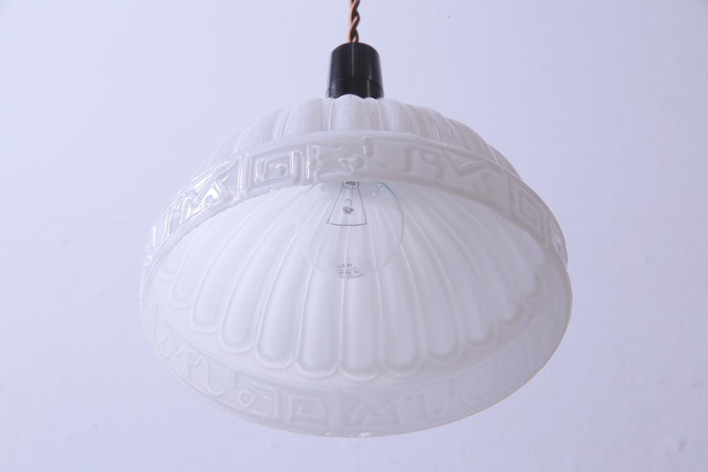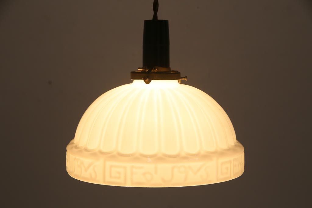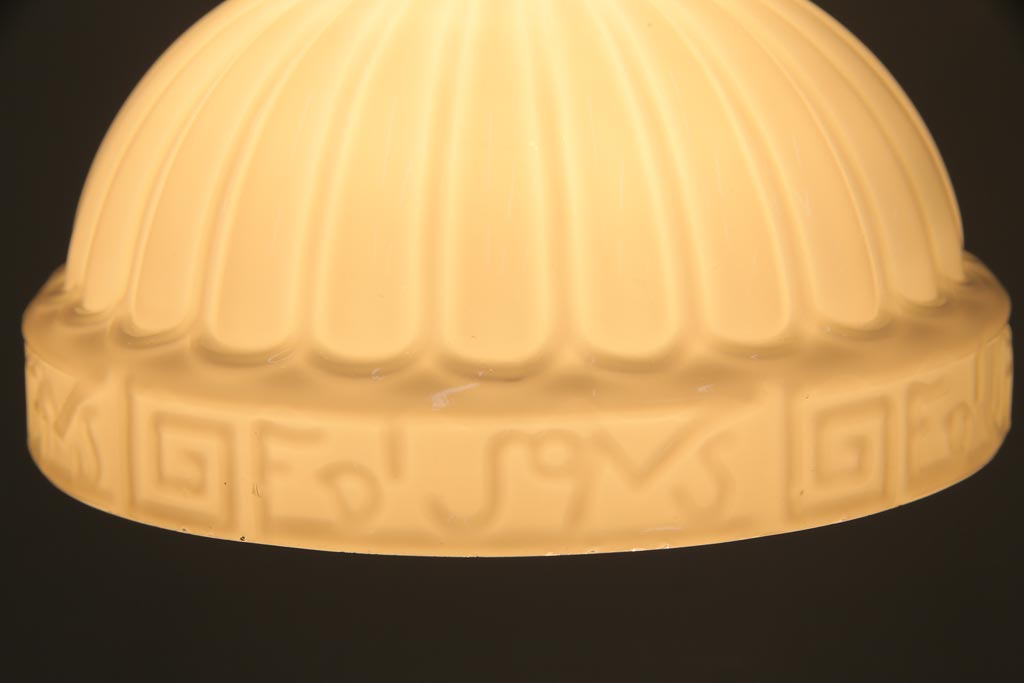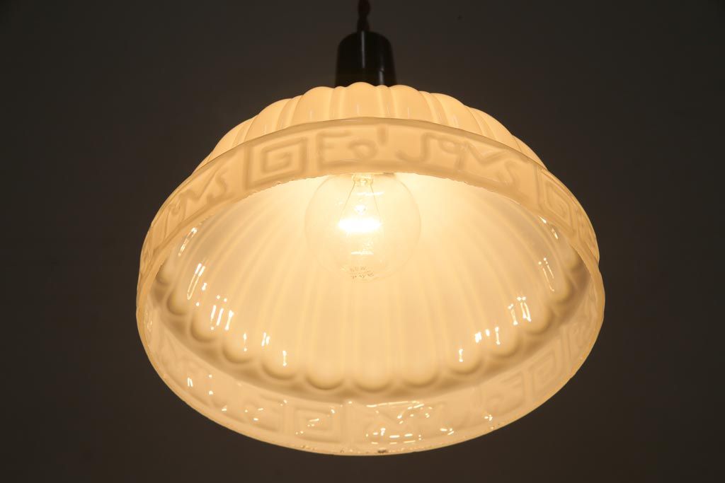 和製アンティーク 陽刻ガラス 幾何学的なデザインのペンダントライト(電笠、天井照明、吊り下げ照明)