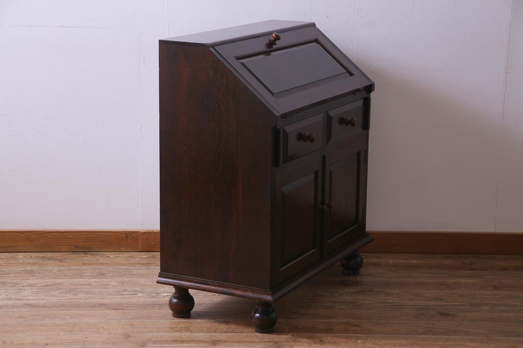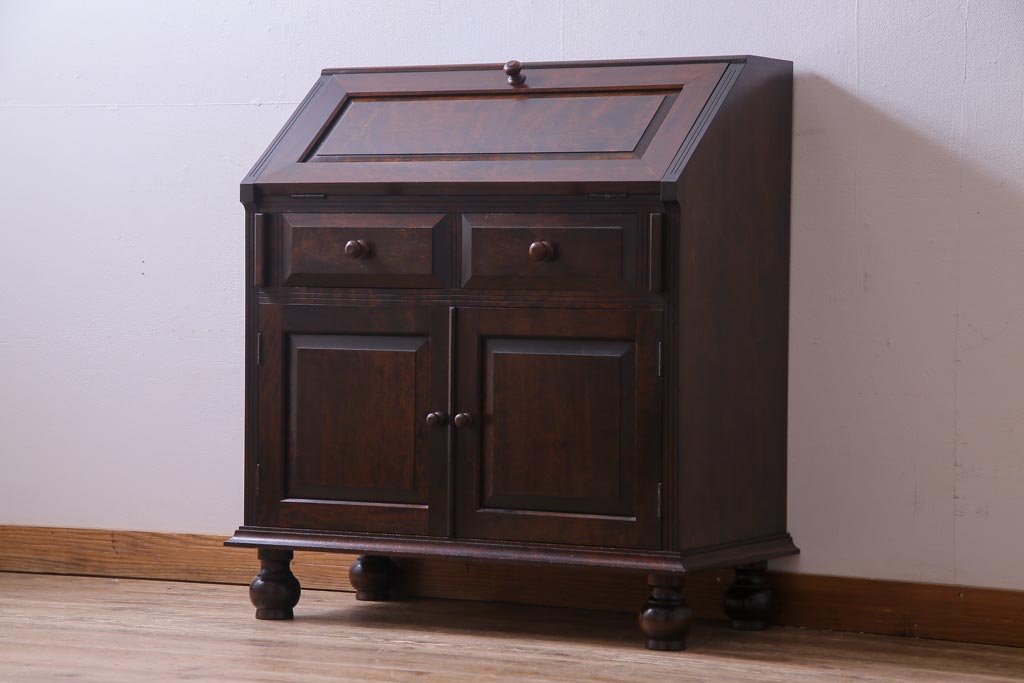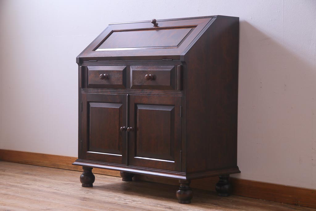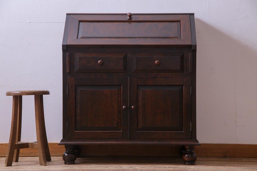 ビンテージ 松本民芸家具 ころんとしたボールフットが目を惹くライティングビューロー(簿記机、デスク)です。