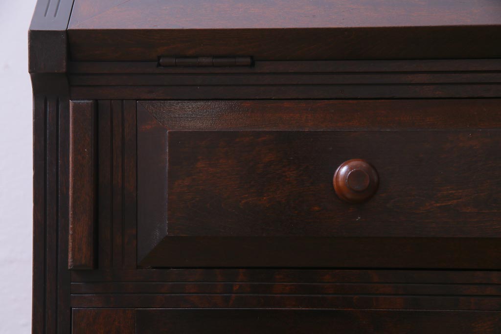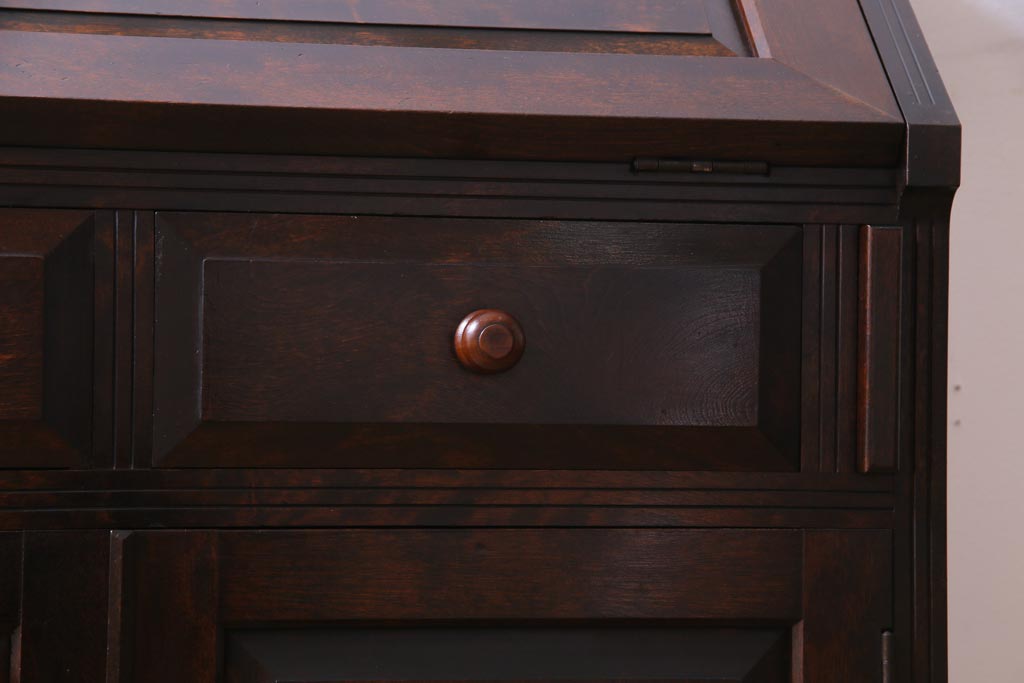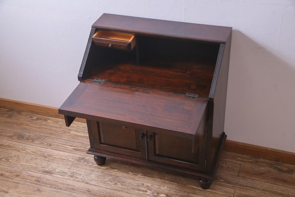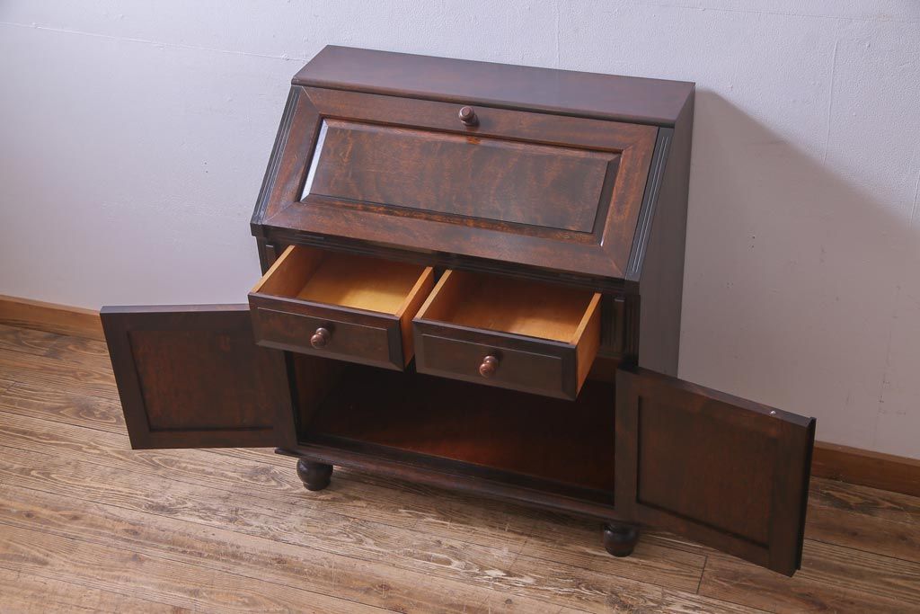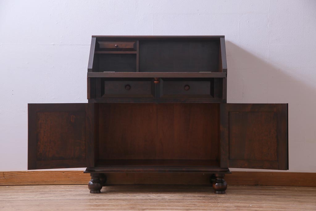 ビンテージ 松本民芸家具 ころんとしたボールフットが目を惹くライティングビューロー(簿記机、デスク)です。