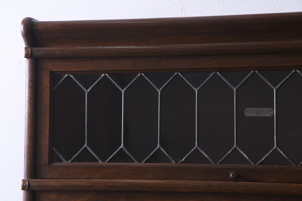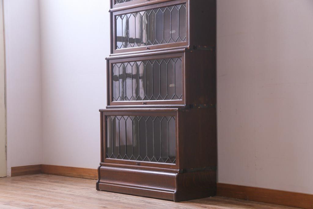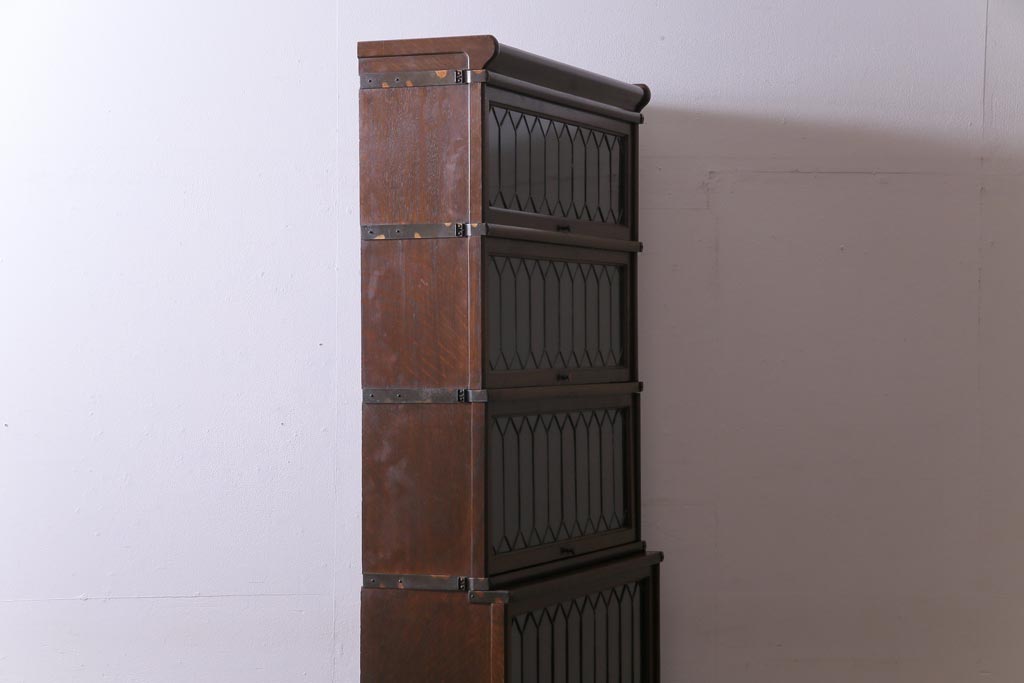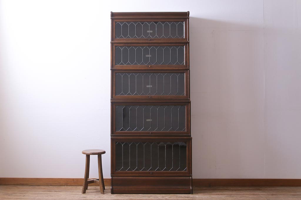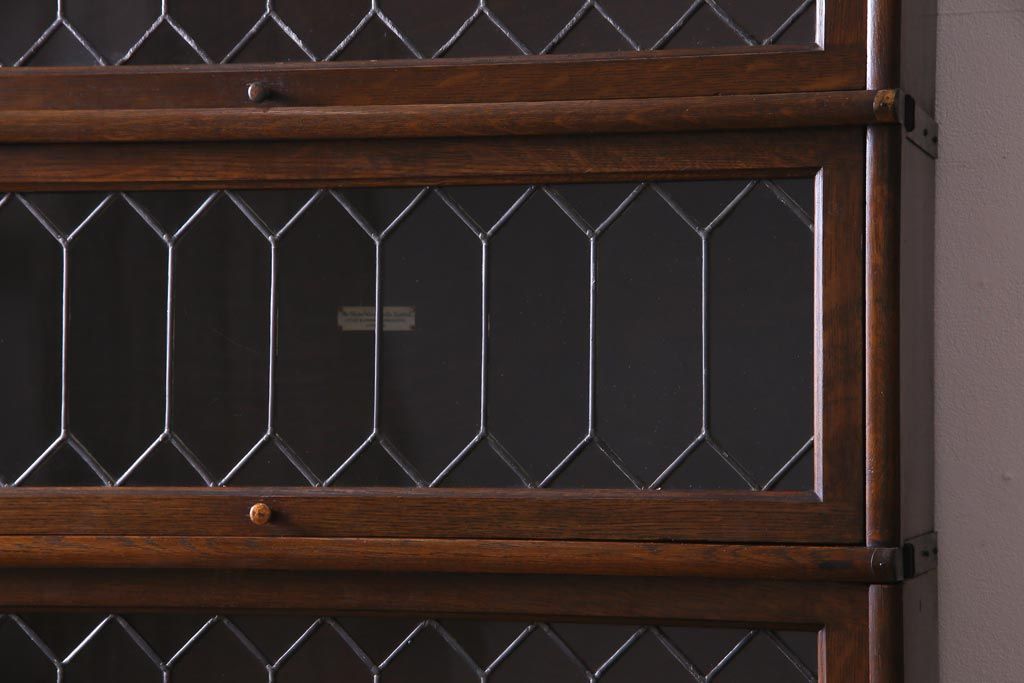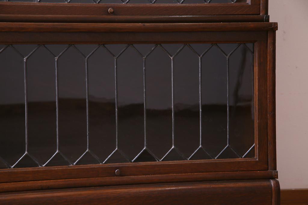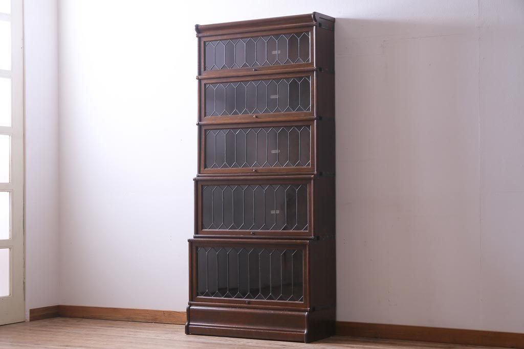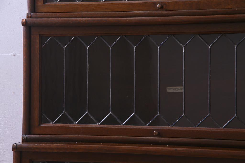 アンティーク家具 イギリスアンティーク オーク材 ステンドグラス入り 5段の最高級品スタッキングブックケース(本箱)